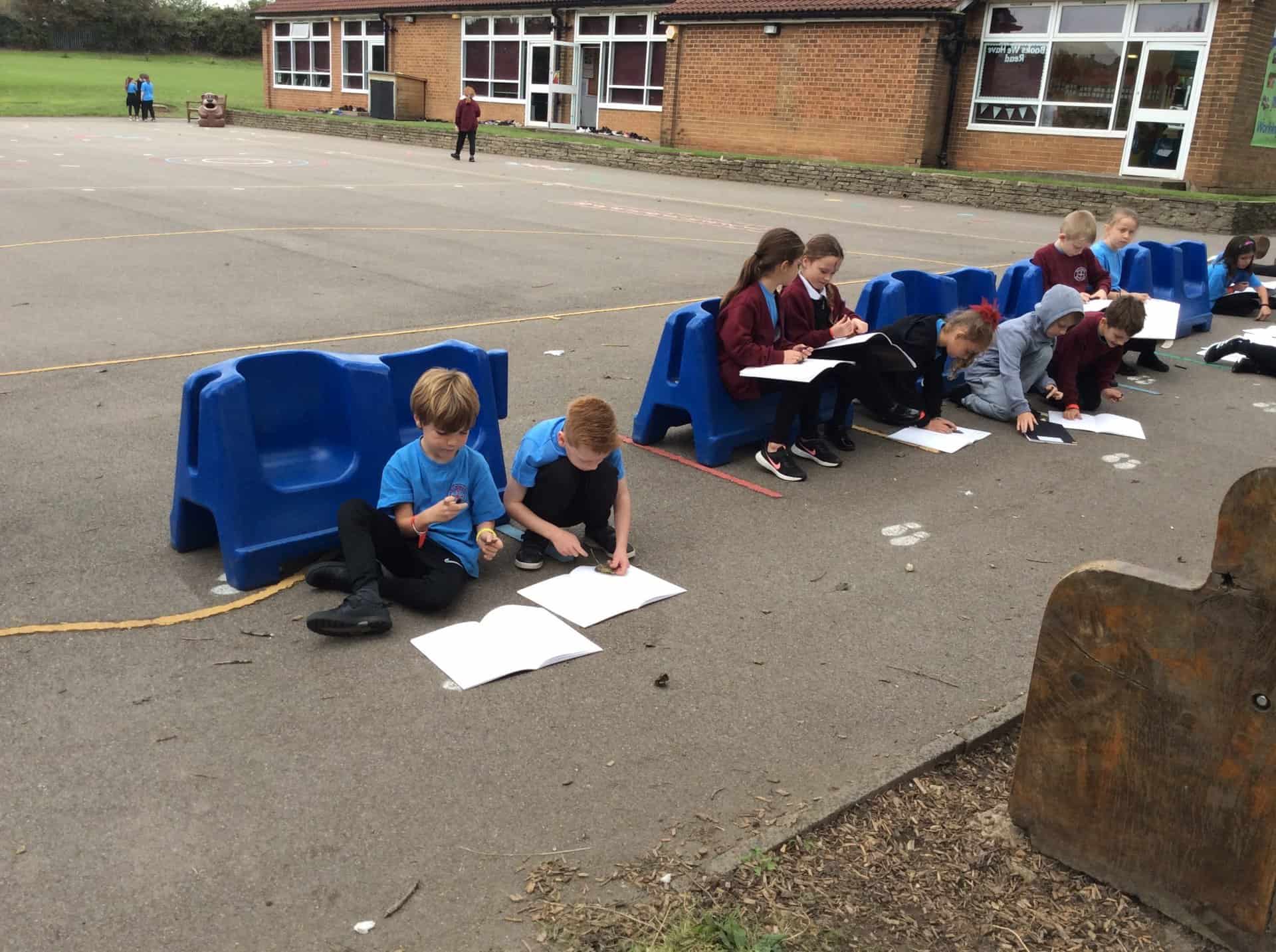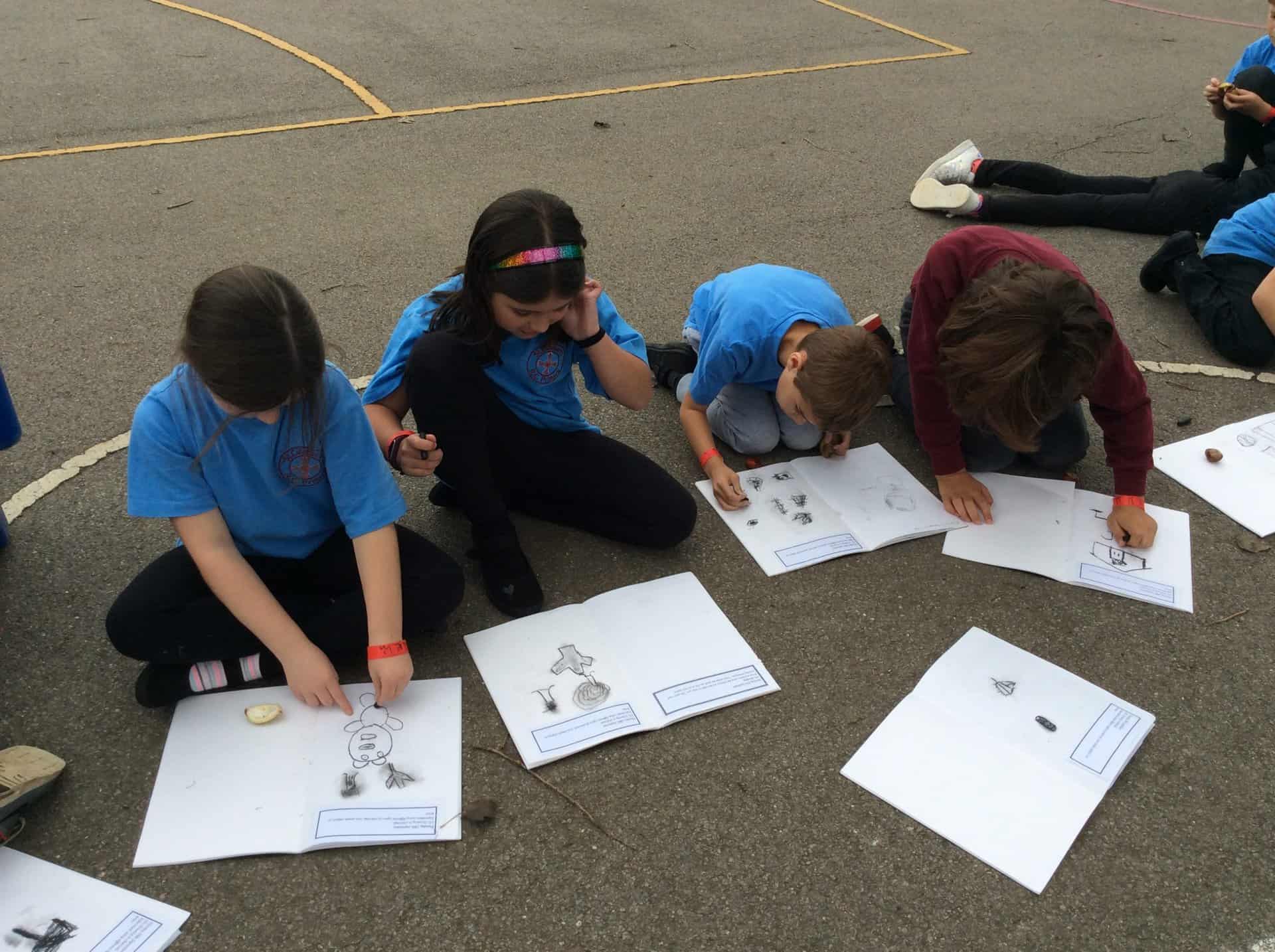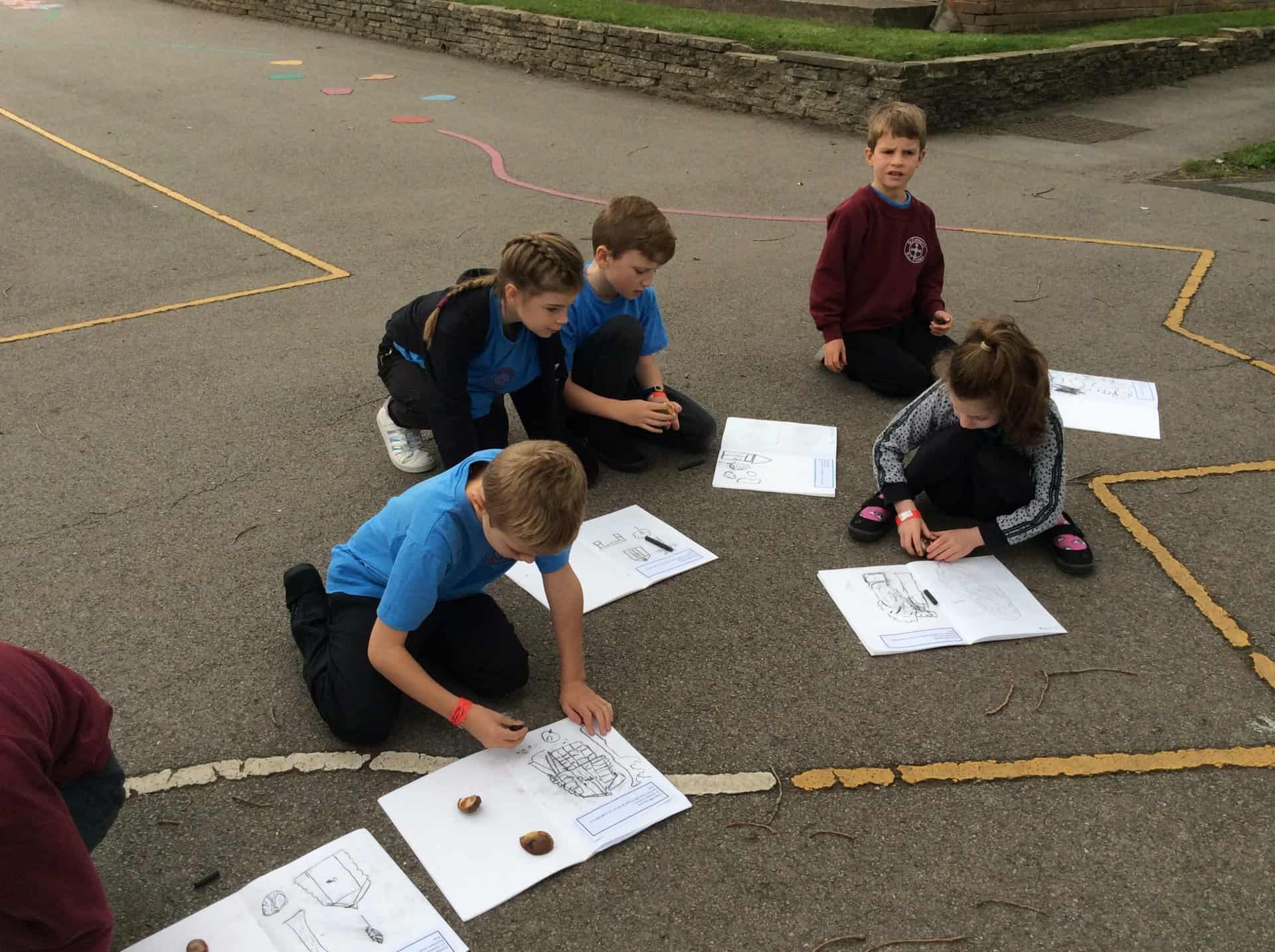 For our art lesson today, we went outside to do some sketches using charcoal. We observed things we find in nature then used our charcoal sticks to draw. In our next lesson we are going to look at nature more closely, focusing on owls to link with our Owl Who Was Afraid of the Dark topic.