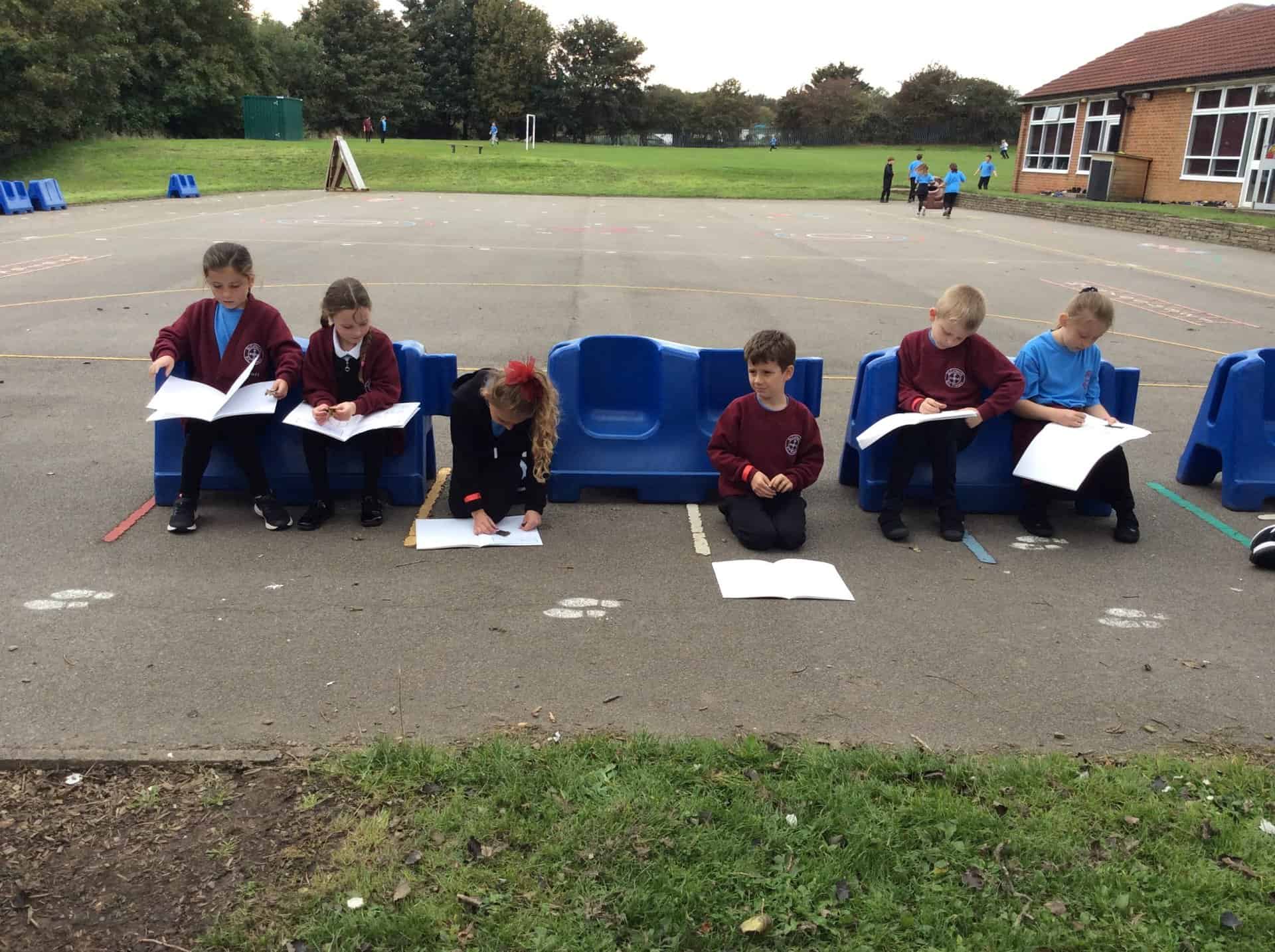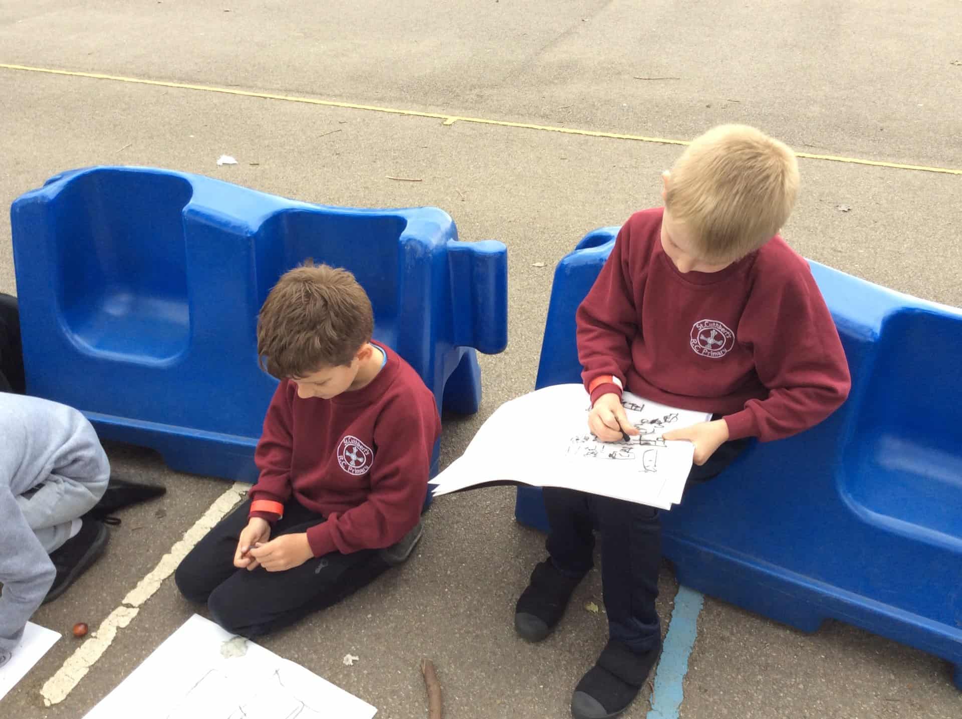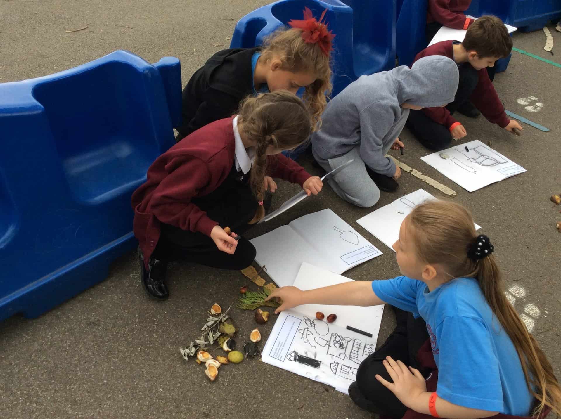 For our art lesson today, we went outside to do some sketches using charcoal. We observed things we find in nature then used our charcoal sticks to draw. In our next lesson we are going to look at nature more closely, focusing on owls to link with our Owl Who Was Afraid of the Dark topic.