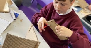 We thought about the things we would find in an Anglo Saxon village and worked in teams to make strong structures using triangle supports and slots to secure the card. A lovely (if slightly messy) afternoon! Great to see our home learners who are isolating also joining in.