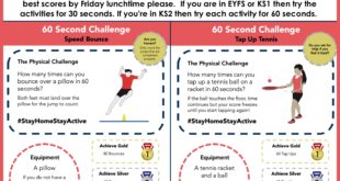 Next week we would like you to take part in SPORTS WEEK CHALLENGE! Firstly, if possible, can you wear something in your house group colour: purple for Aidan, blue for Andrew, white for Bede, yellow for David, red for George, orange for Oswald and green for Patrick. There are two challenges each day. If you send your teacher a picture …