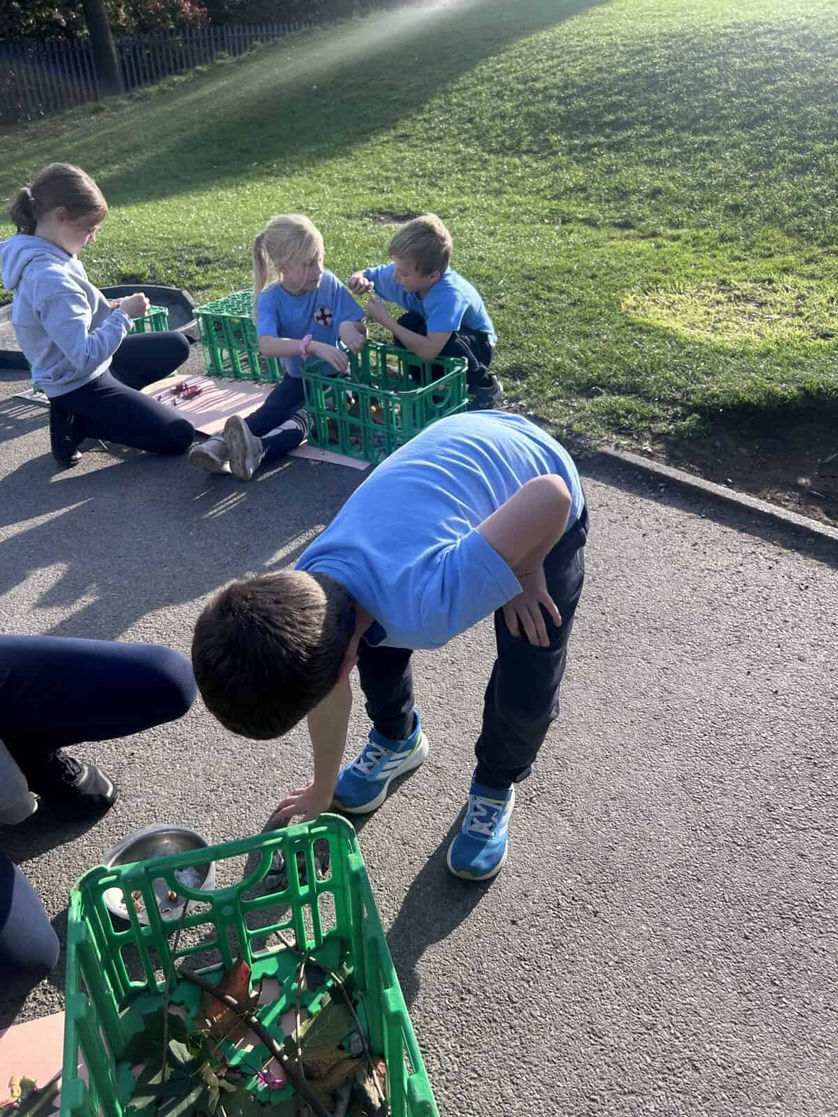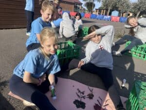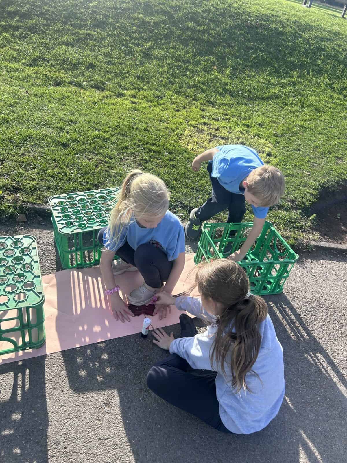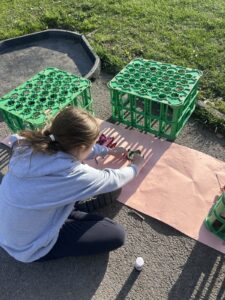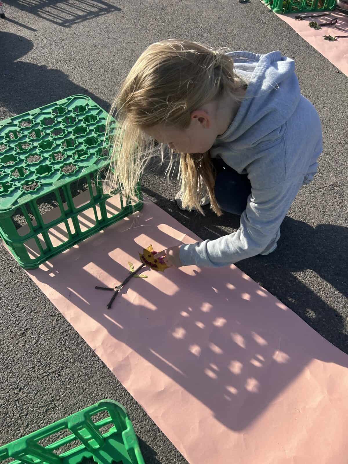 Tonight, although the sun was shining, OPAL club battled against the wind to great their own leaf family portrait. The children worked really well in teams, deciding what natural resources would make the best body parts. We had eyes made from berries, hair made from grass and some even experimented with the juice from the berries and mud as paint to add some colour.