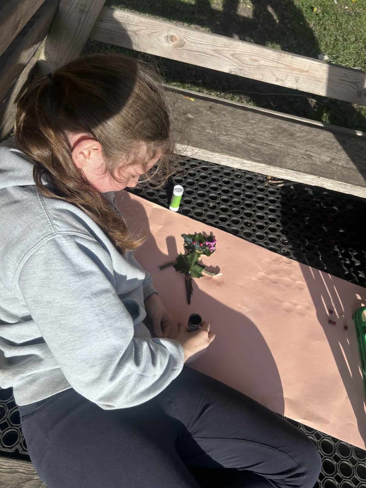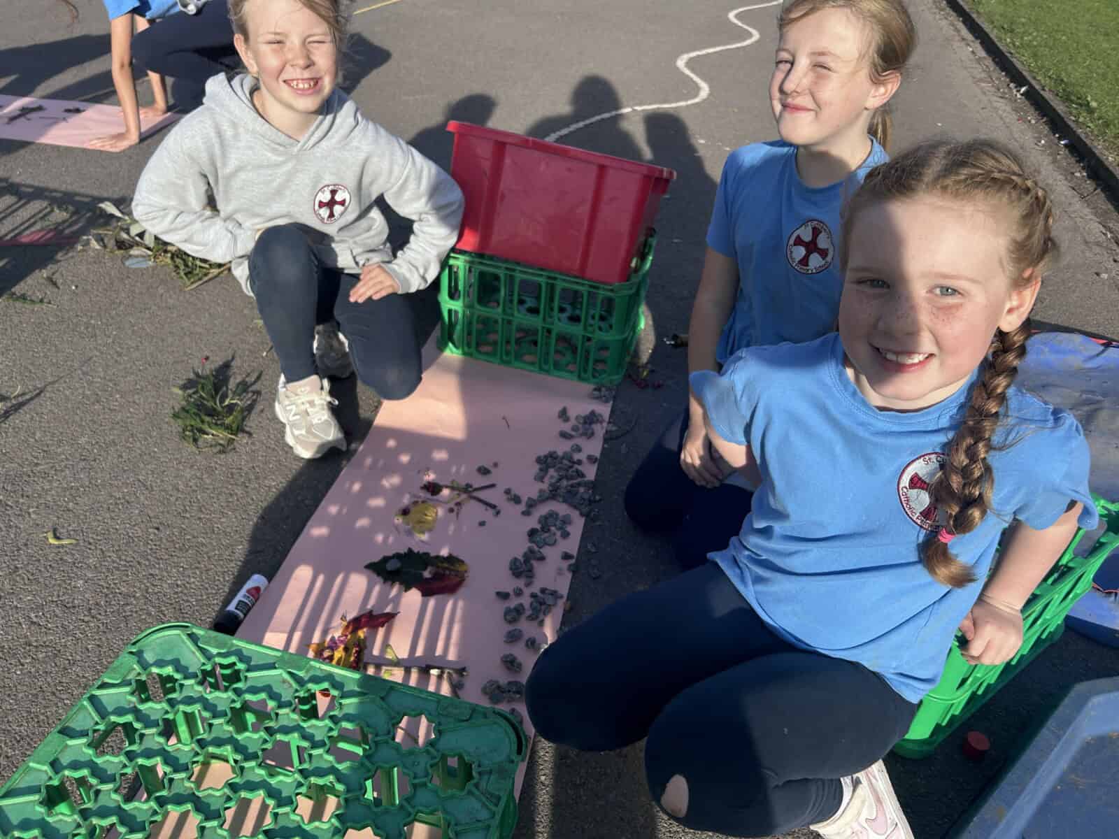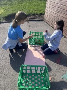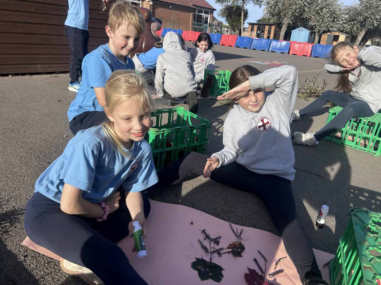 Tonight, although the sun was shining, OPAL club battled against the wind to great their own leaf family portrait. The children worked really well in teams, deciding what natural resources would make the best body parts. We had eyes made from berries, hair made from grass and some even experimented with the juice from the berries and mud as paint to add some colour.