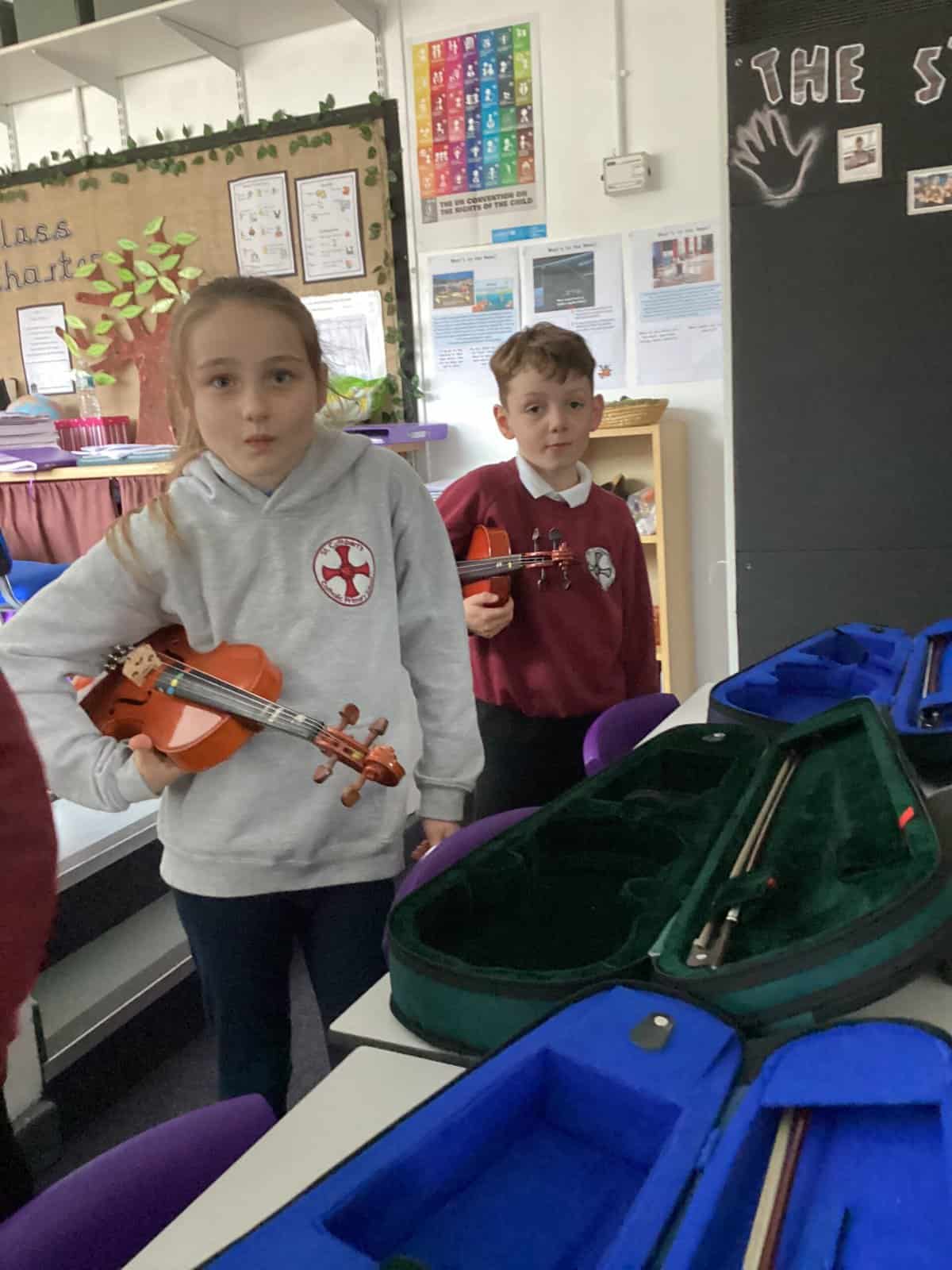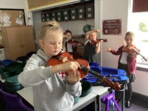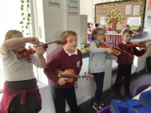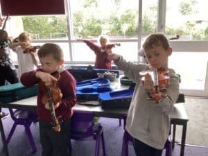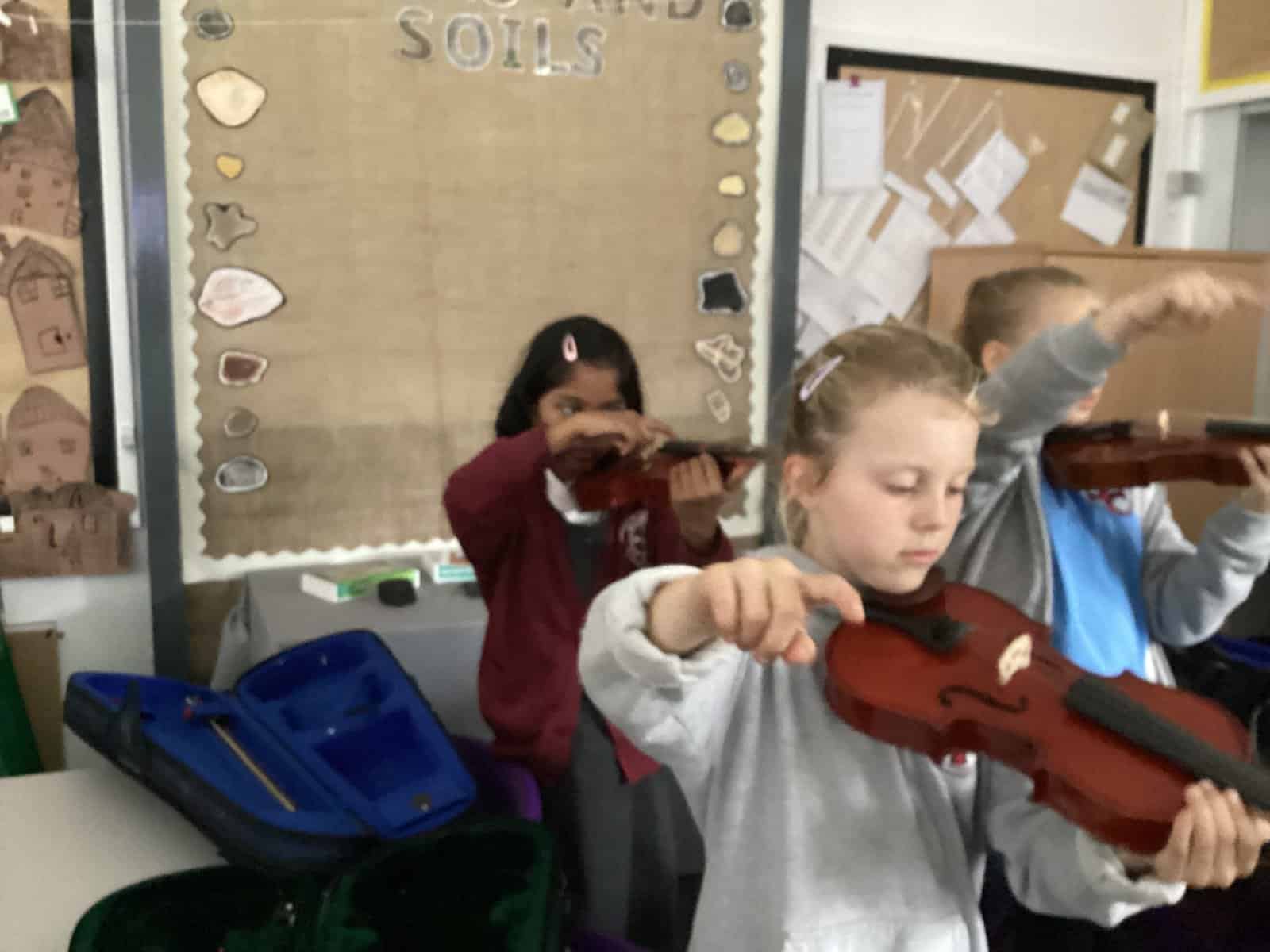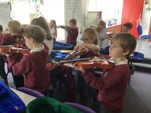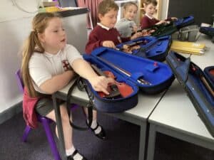 Today we got our violins out for the first time we were really excited to finally get the chance to handle our instruments. Mrs Sellars explained to us how to hold the violin and stand correctly. We also learnt how to pluck the strings in different ways. It was lots of fun and we cant wait until next week.