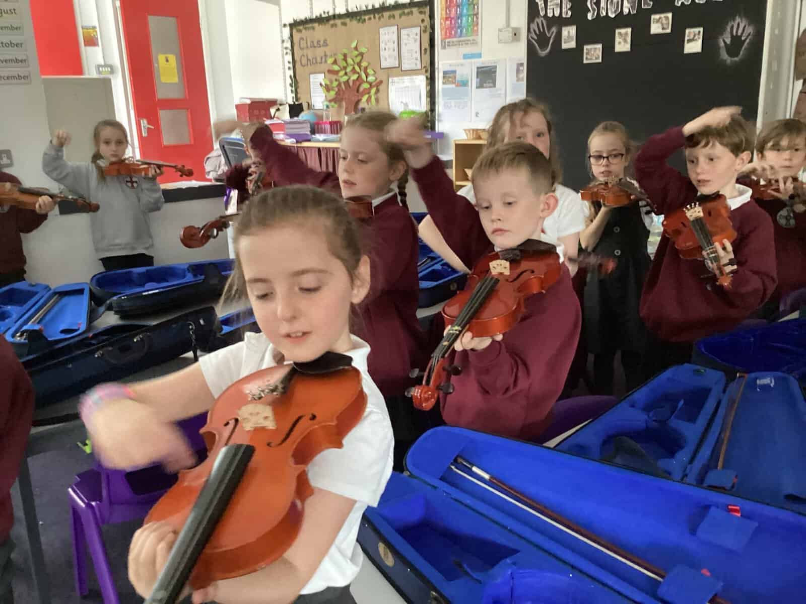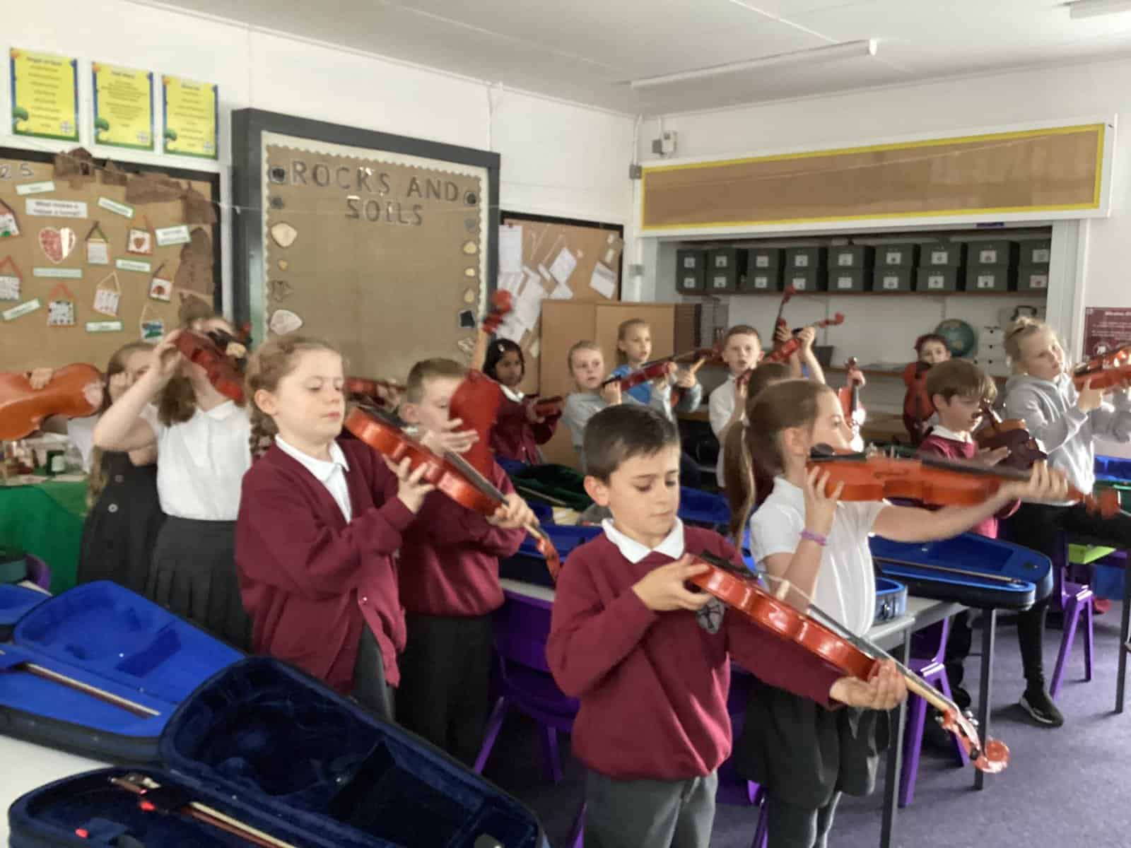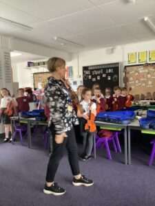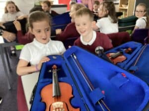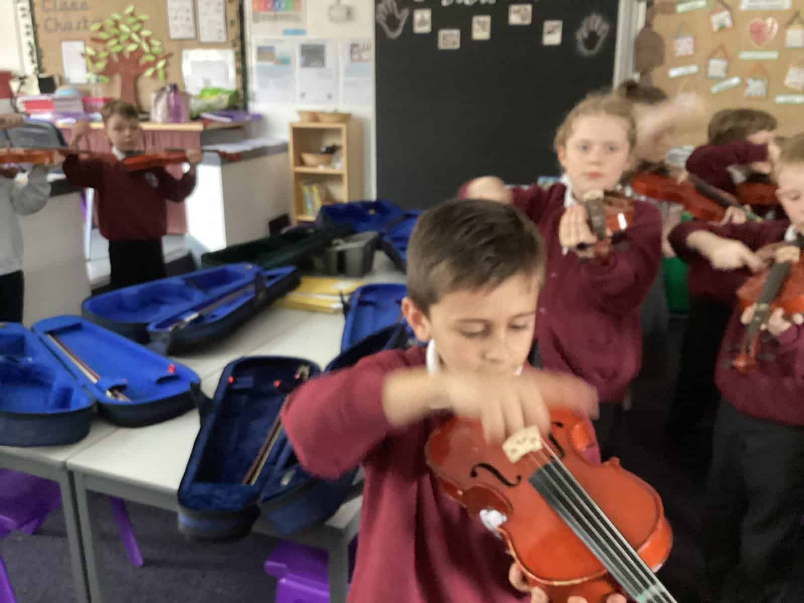 Today we got our violins out for the first time we were really excited to finally get the chance to handle our instruments. Mrs Sellars explained to us how to hold the violin and stand correctly. We also learnt how to pluck the strings in different ways. It was lots of fun and we cant wait until next week.
