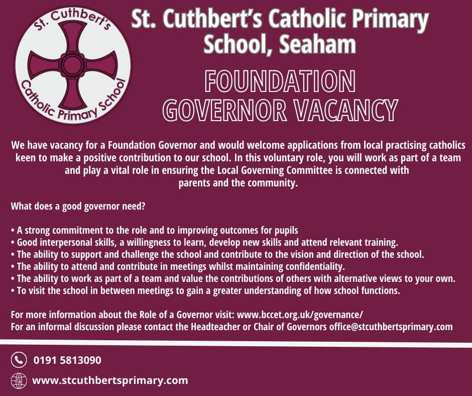 On 1st July 2021,  St. Cuthbert’s Catholic Primary School joined Bishop Chadwick Catholic Education Trust (Companies House : 09940352). Details regarding the Members and Directors of Bishop Chadwick Catholic Education Trust can be obtained from www.get-information-schools.service.gov.uk  or bccet.org.uk