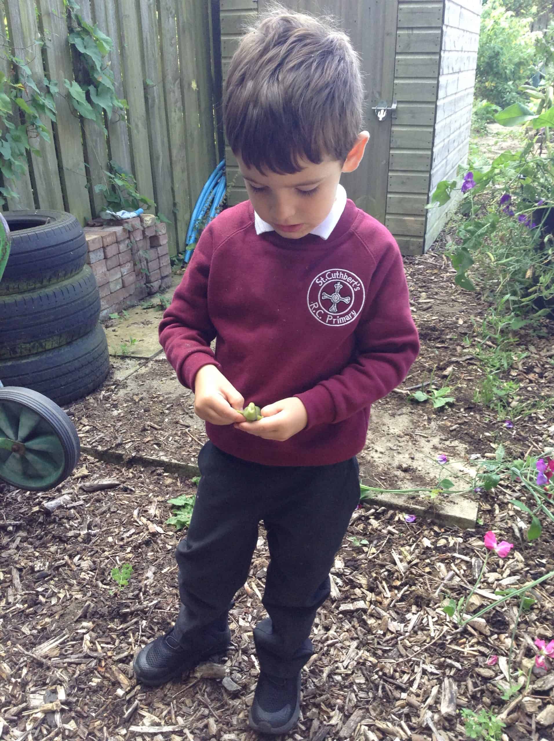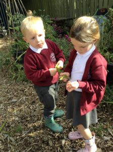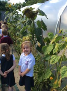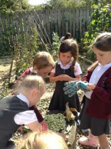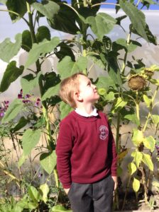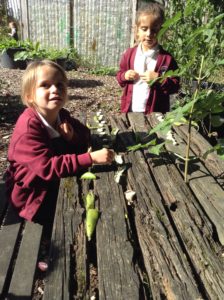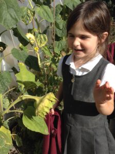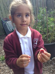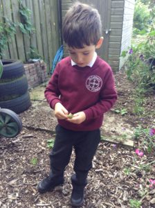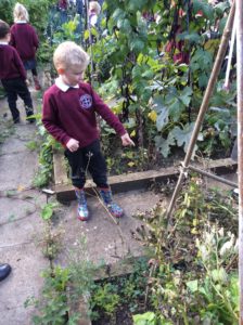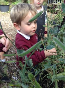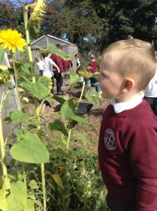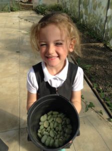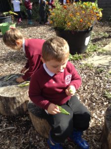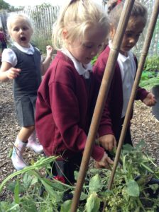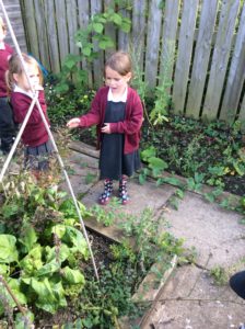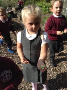 Reception Class were very excited this week. It was letter, “i” day and we were looking for insects. We decided to go over to the allotment for the first time to see what we could find. Instead of finding lots of insects the children were amazed to find lots of fruit, flowers and vegetables especially beans which they enjoyed collecting and counting.