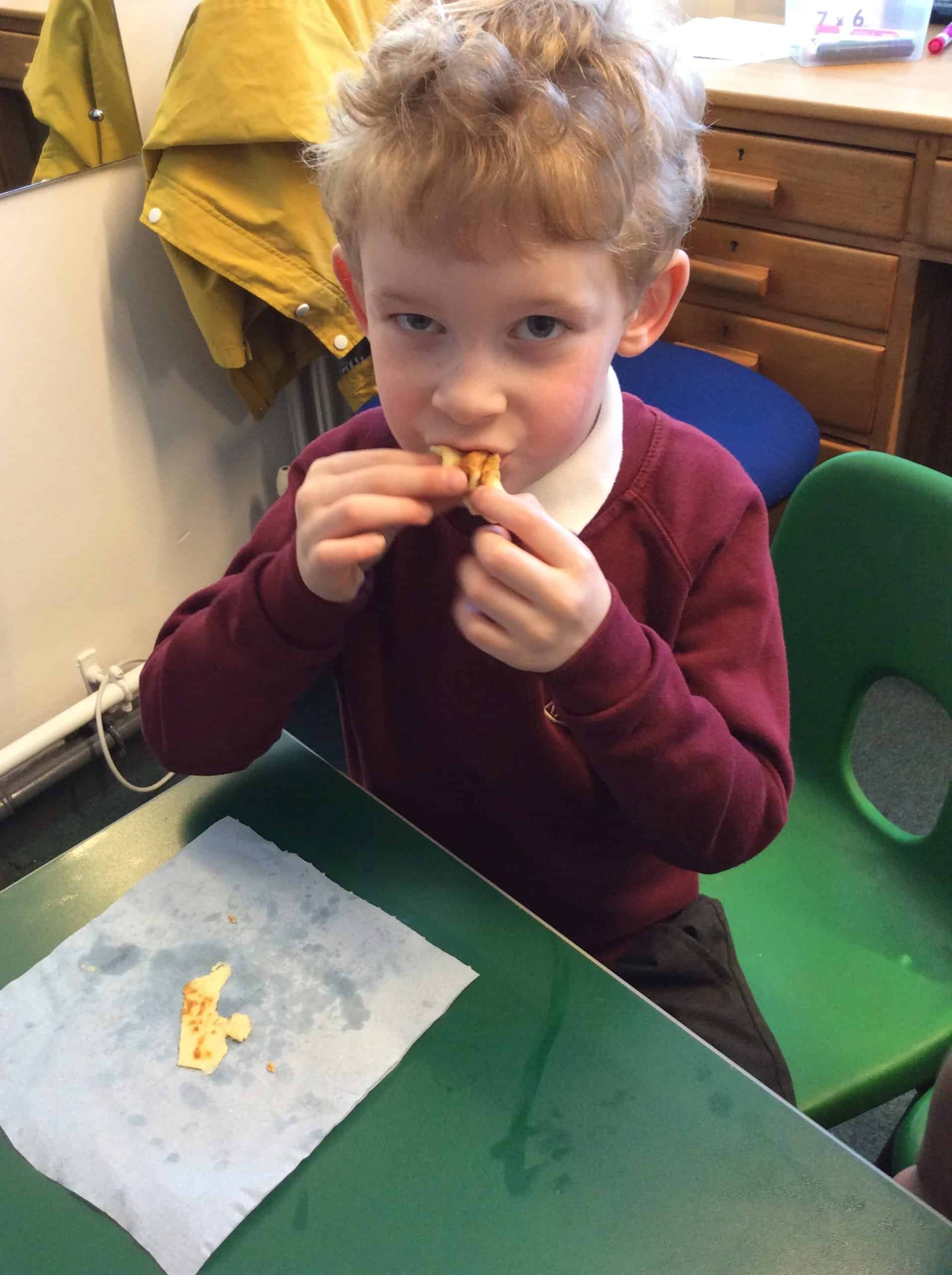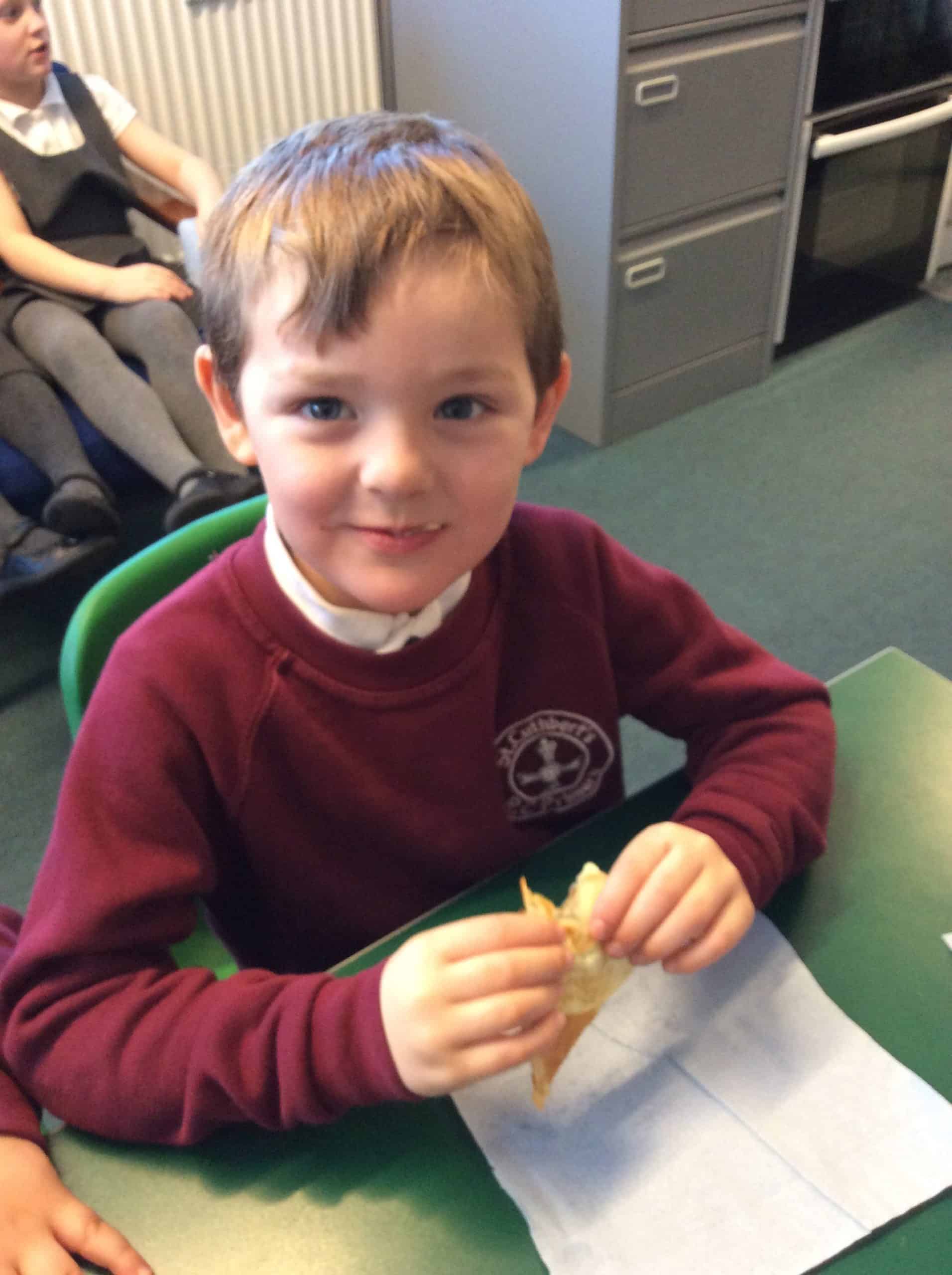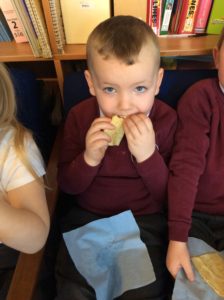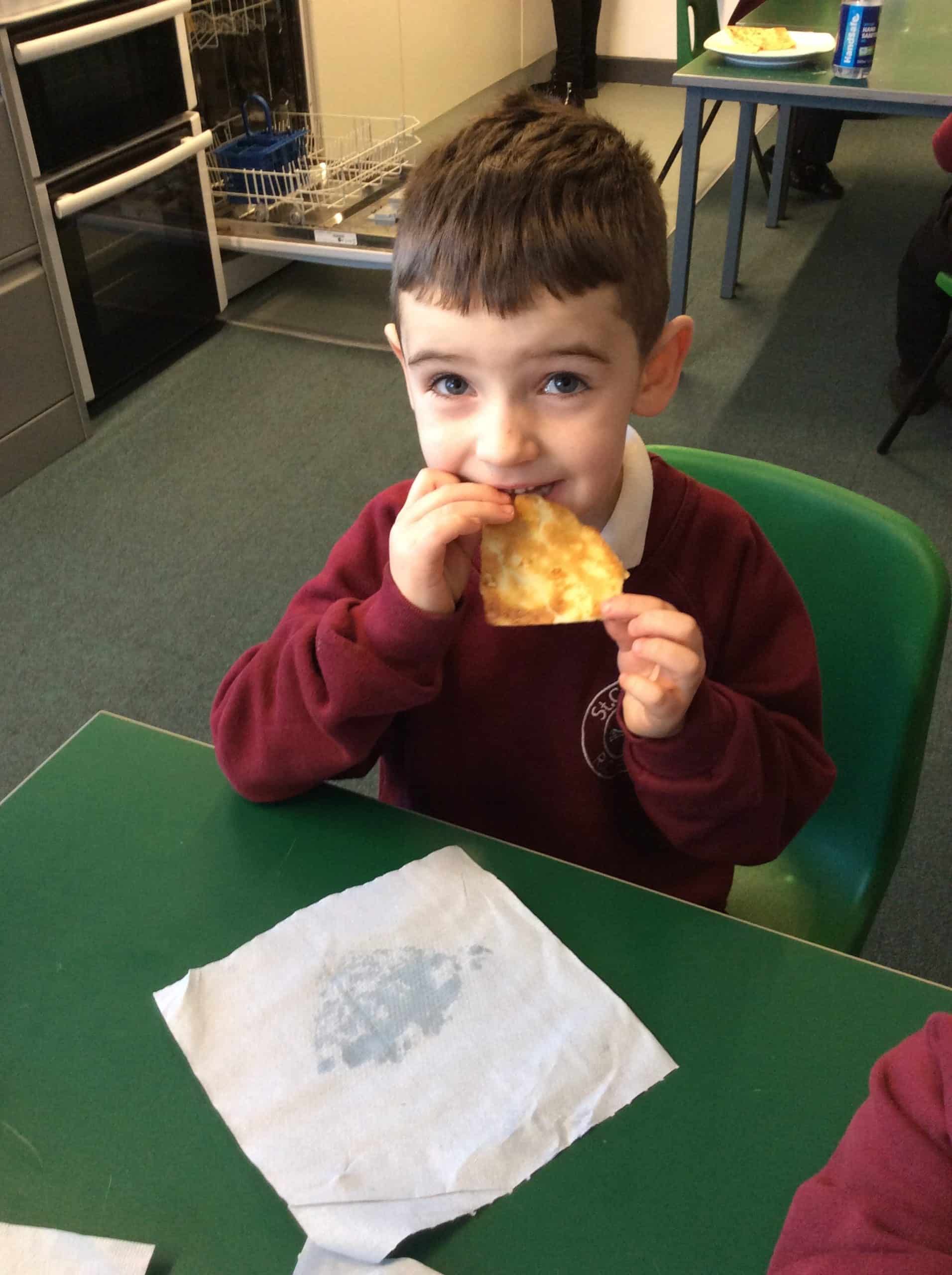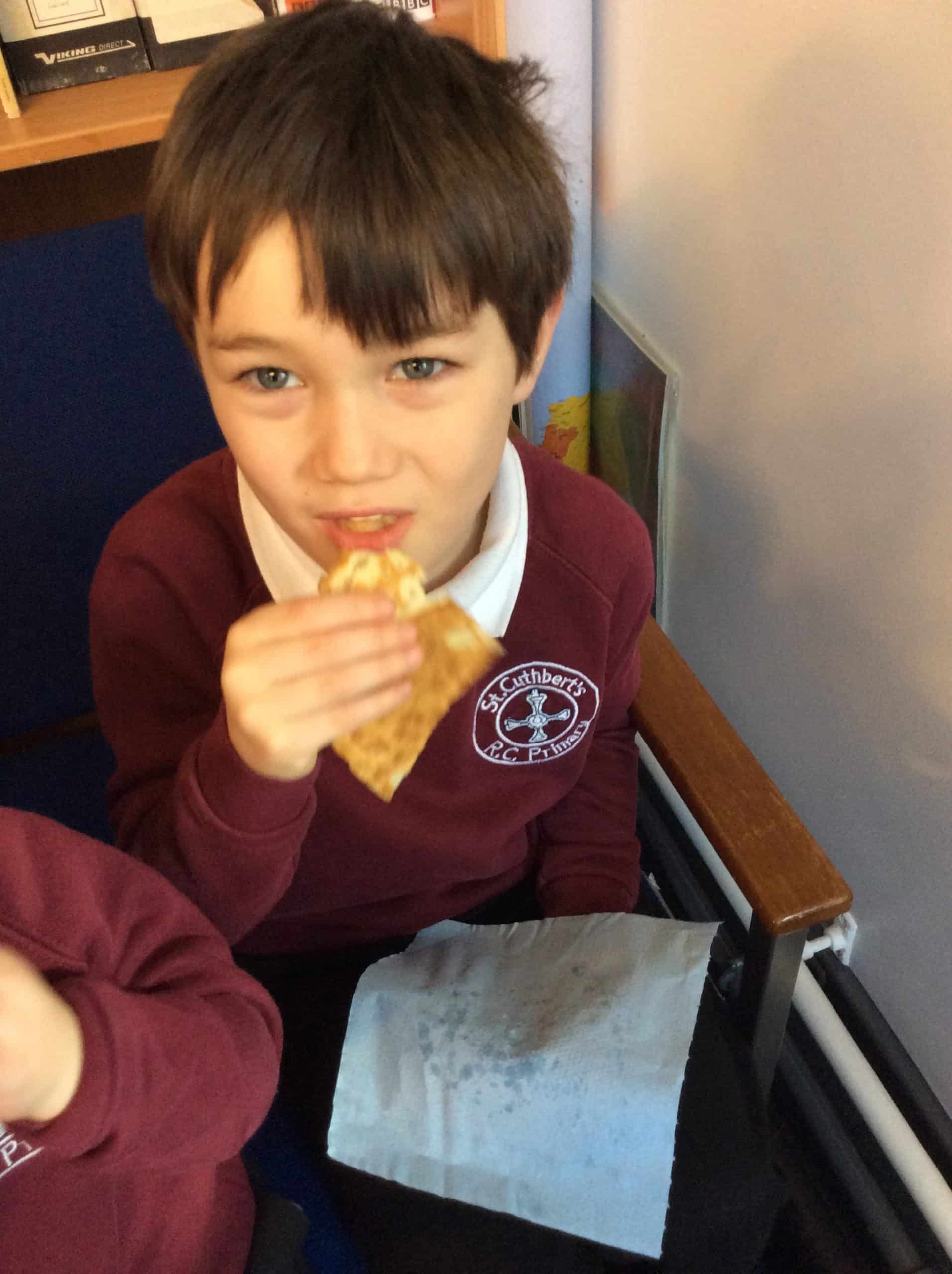 It was Pancake Day today and we decided to make our own pancakes in school. We listened to a song to help us remember the ingredients we needed and what we had to do. We each helped to add the ingredients and mix them together. The best part was when we were given some pancakes to eat.