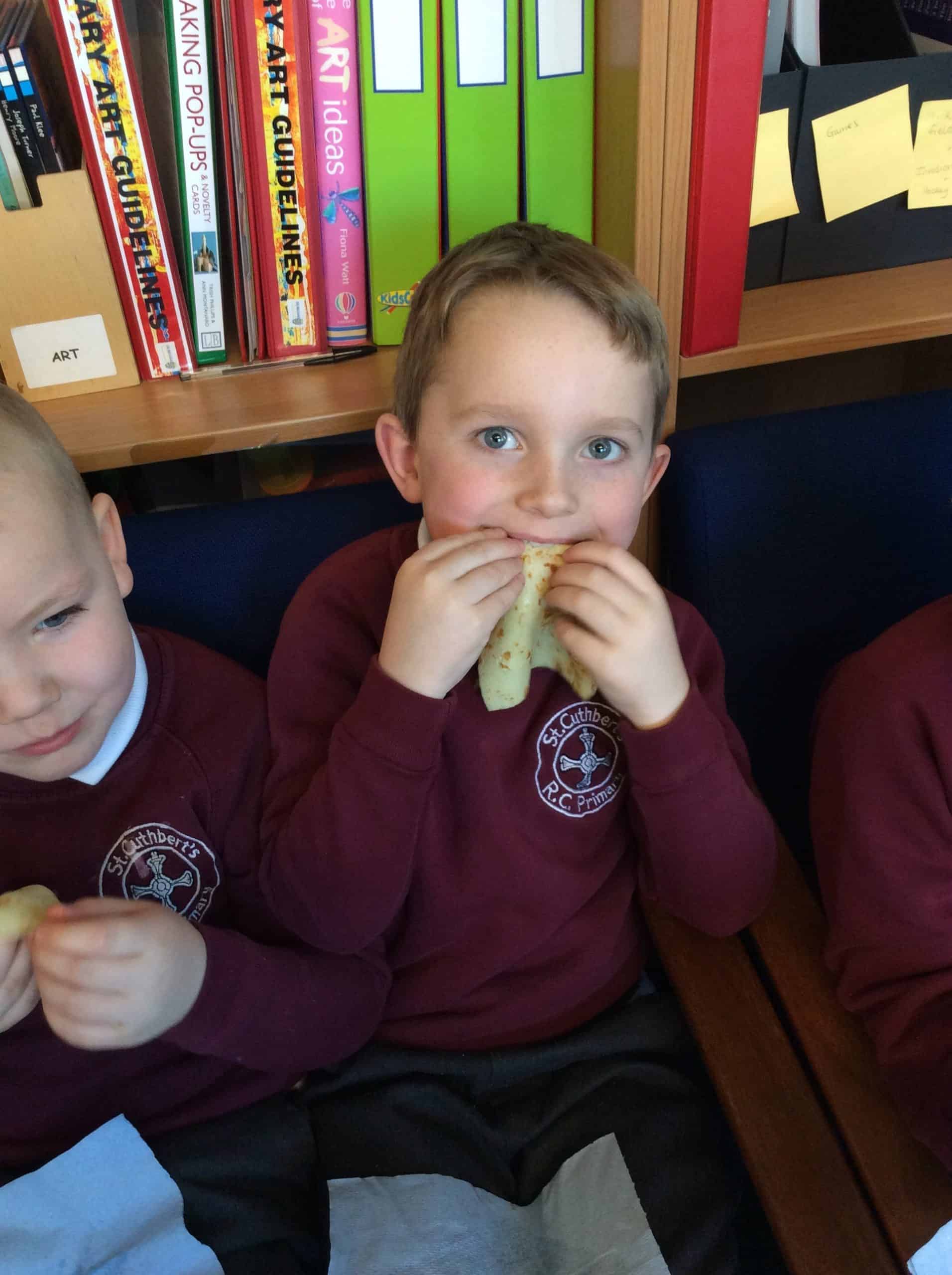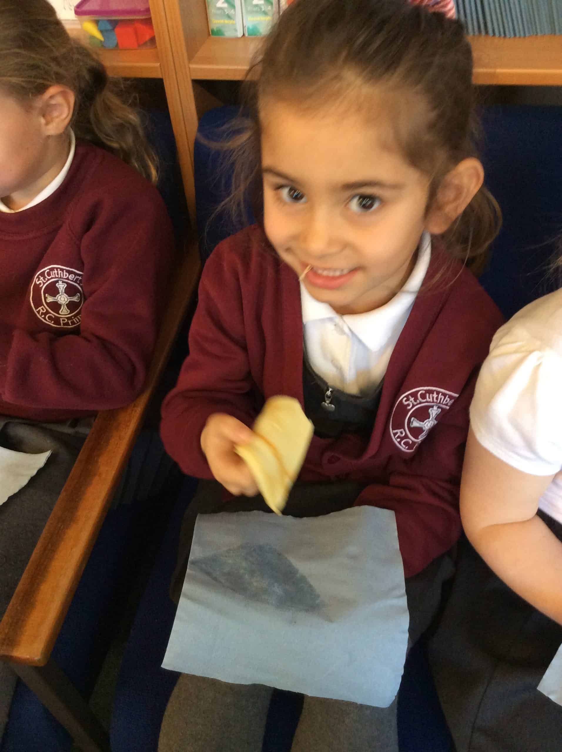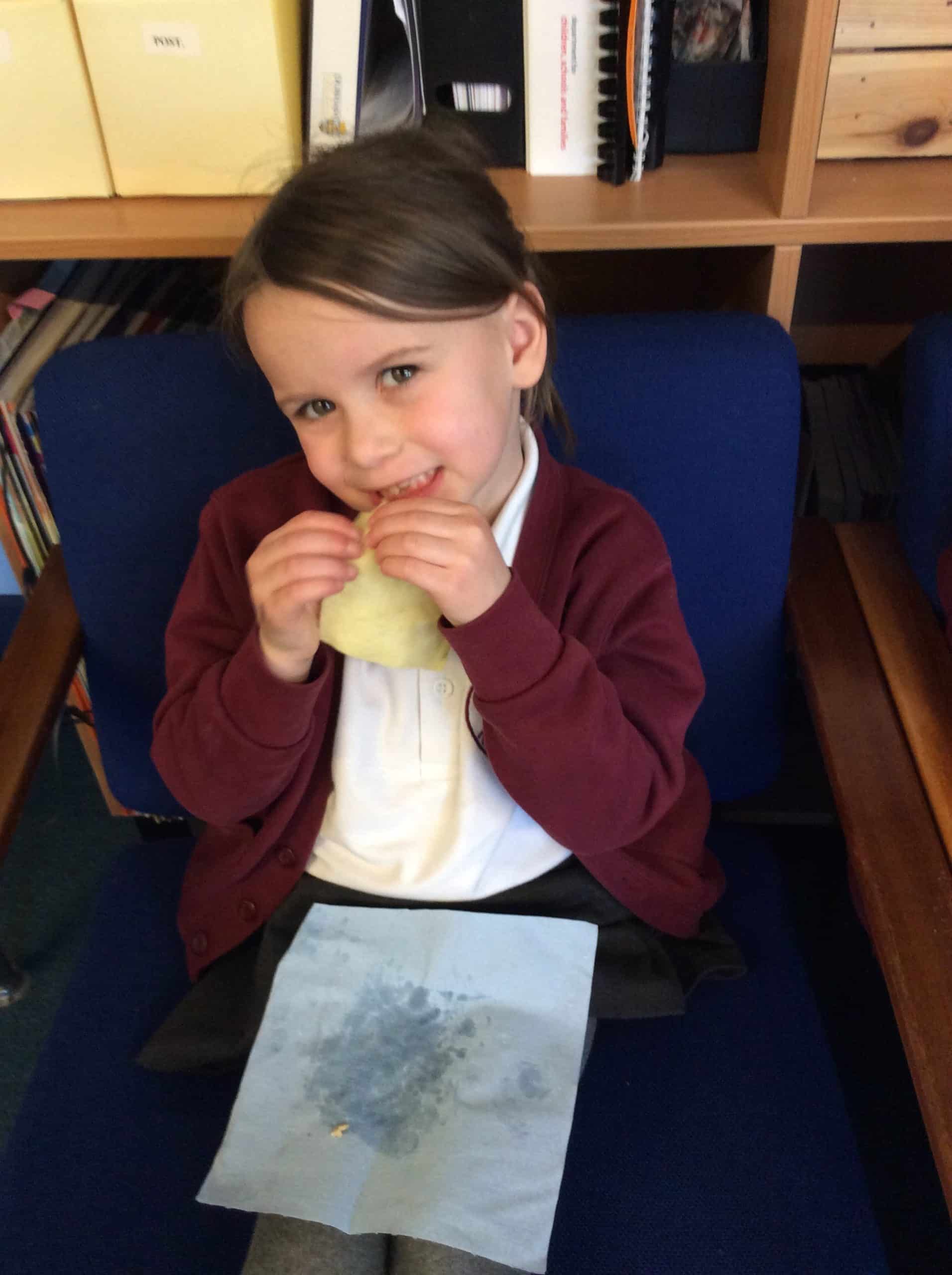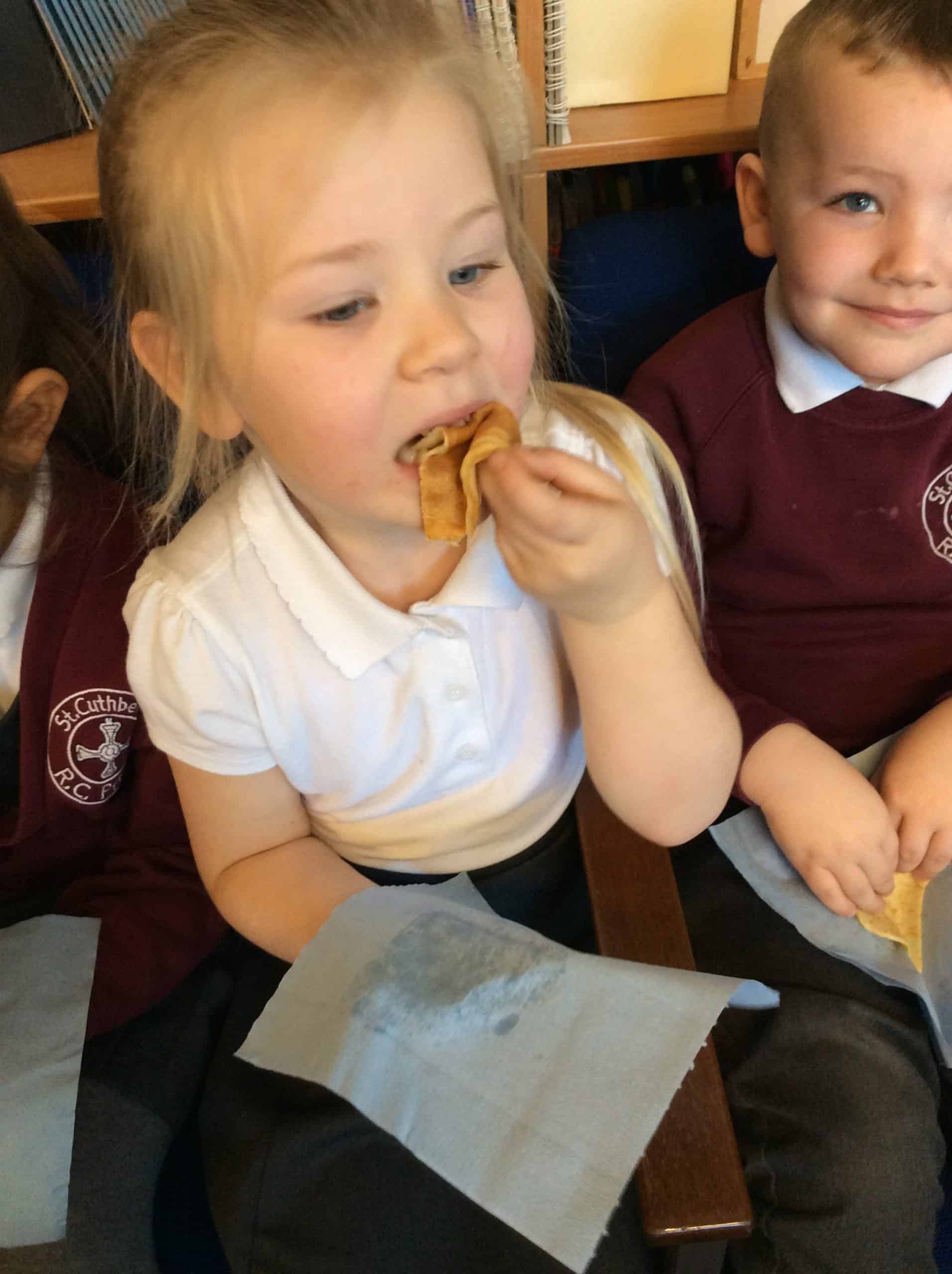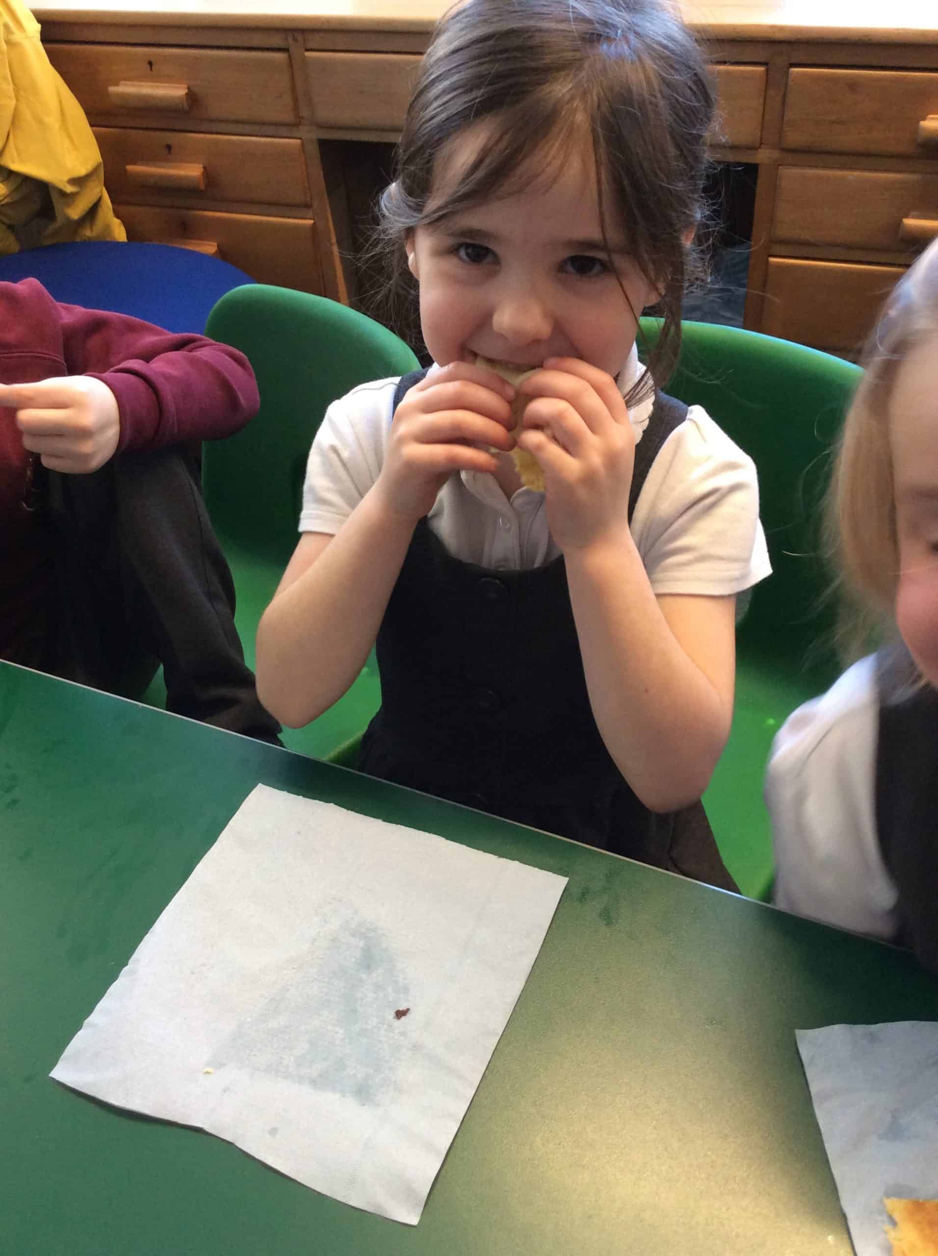 It was Pancake Day today and we decided to make our own pancakes in school. We listened to a song to help us remember the ingredients we needed and what we had to do. We each helped to add the ingredients and mix them together. The best part was when we were given some pancakes to eat.