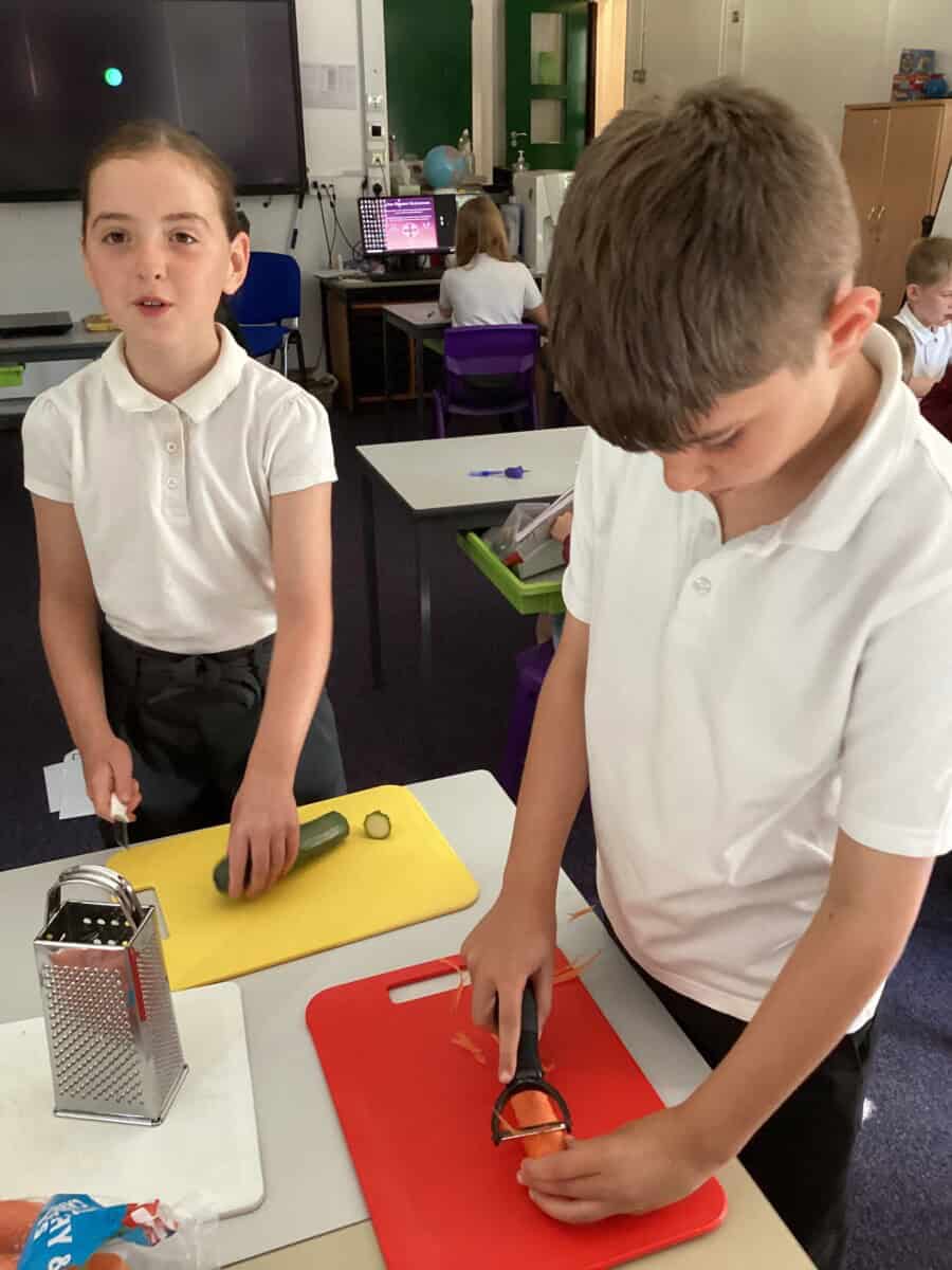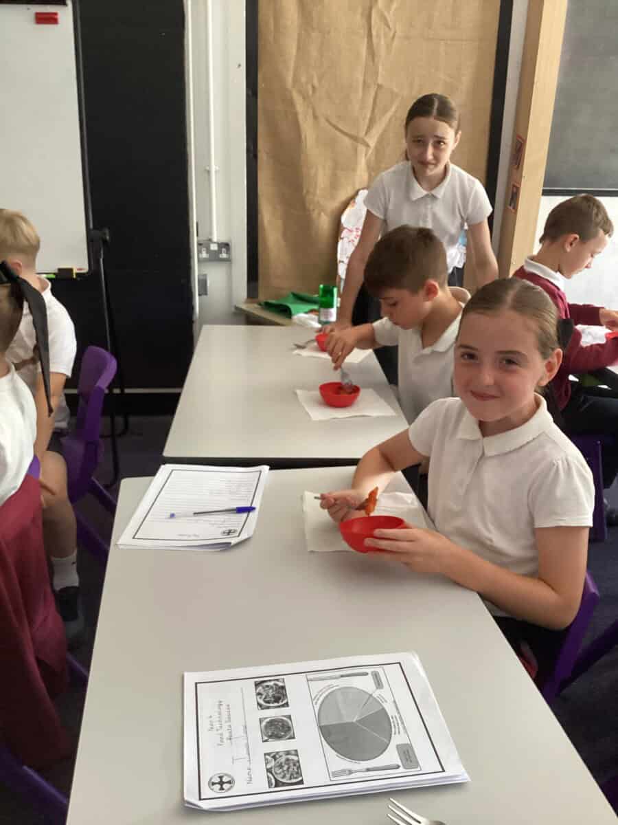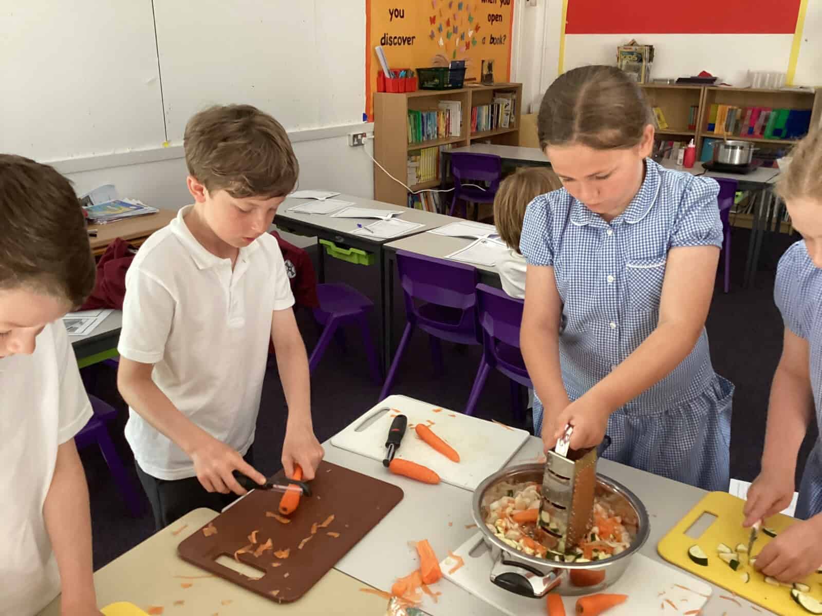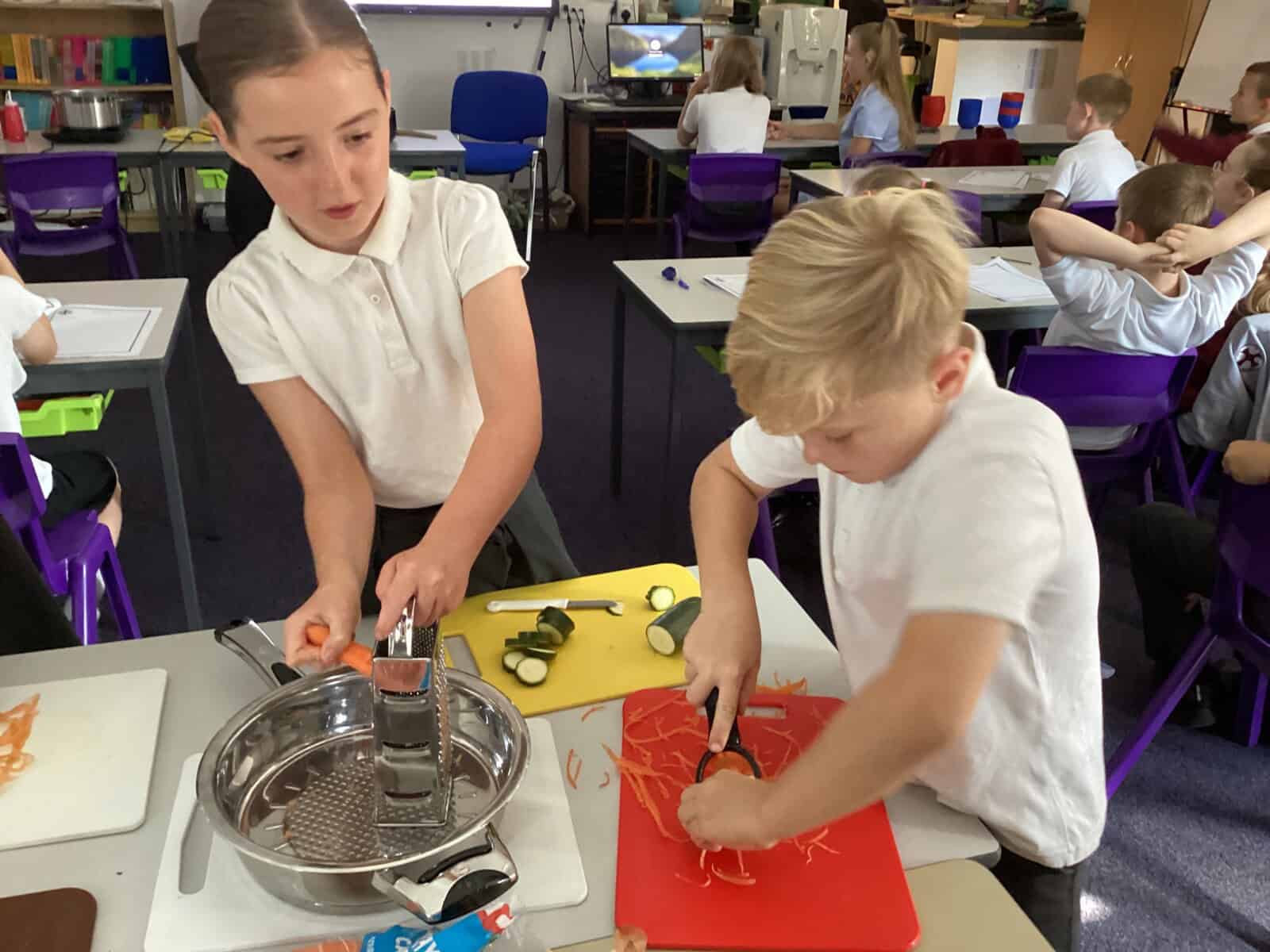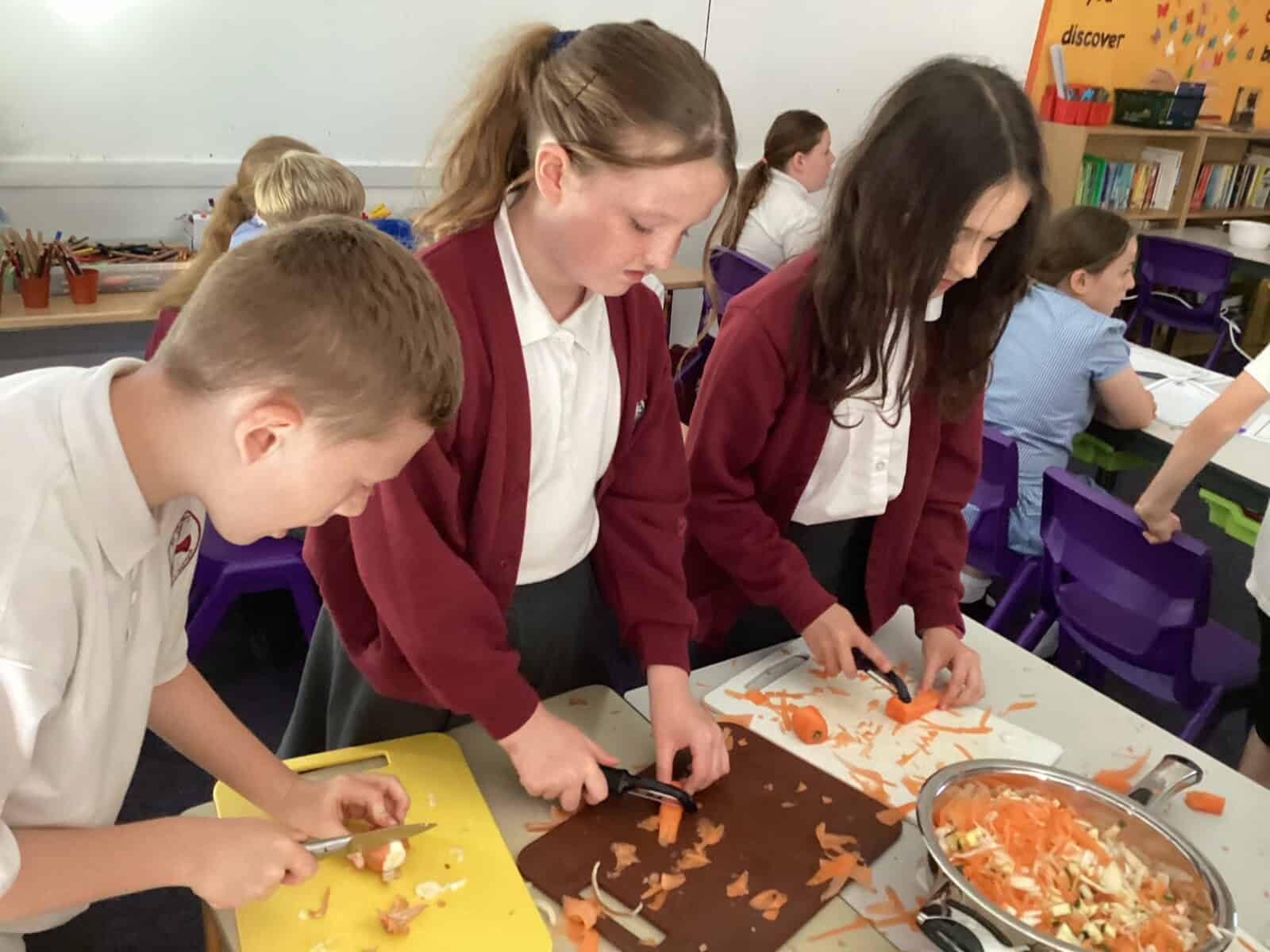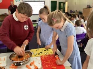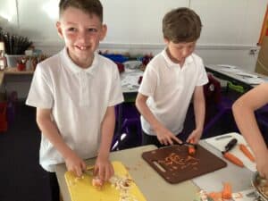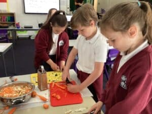 As part of our DT work this term we were set the challenge of creating our own pasta sauce and comparing it to a shop bought sauce. Firstly, we tried the shop sauce which lots of us enjoyed. We then created our own. We decided to include carrots,onions,courgettes and garlic. We used the skills we learnt last year to prepare the vegetables. We had to peel, grate and chop our ingredients into very small pieces. Then we added tomatoes and created our own sauce. It was agreed that our freshly made sauce was just as good as the shop one if not better. We also discovered we had lots of future chefs in our class. Well done Year 4.