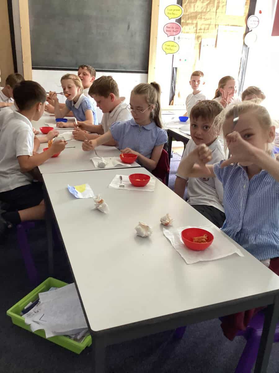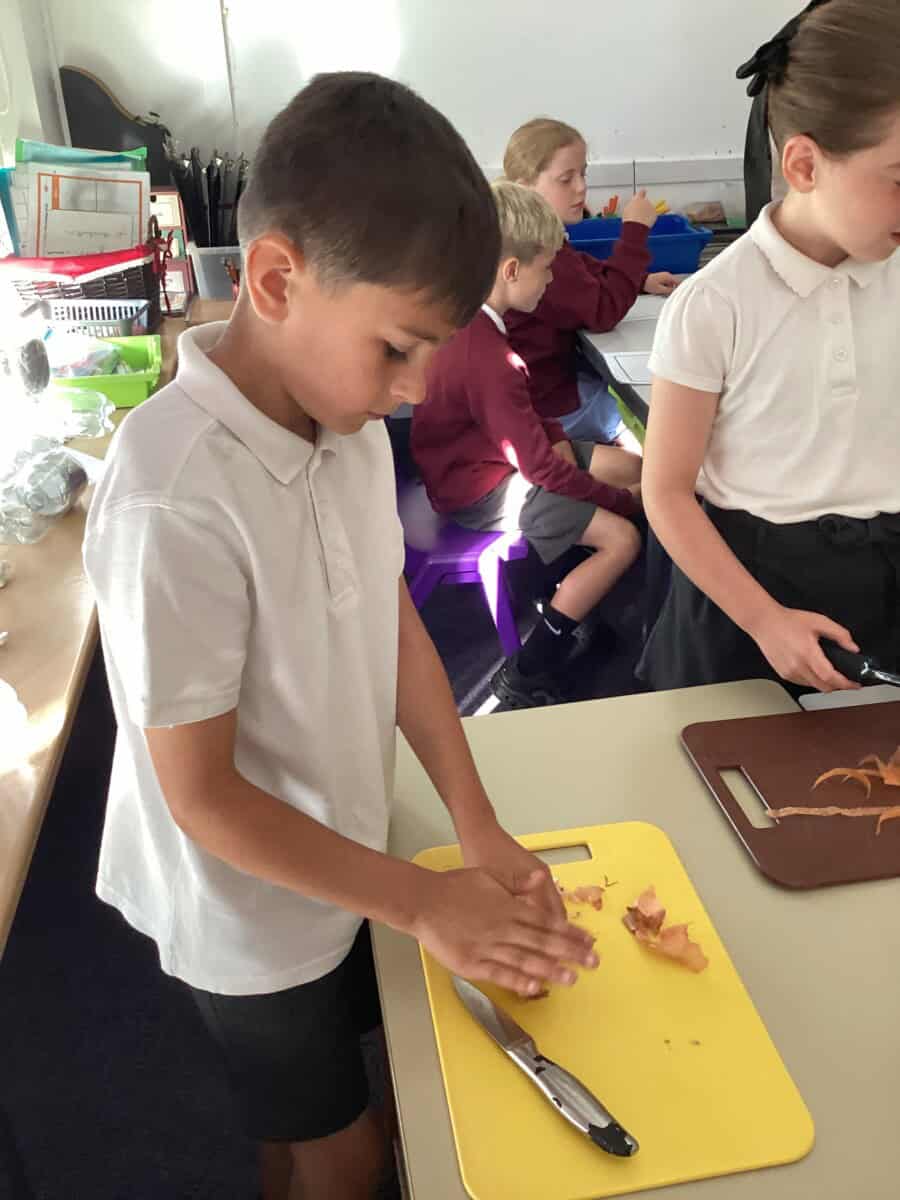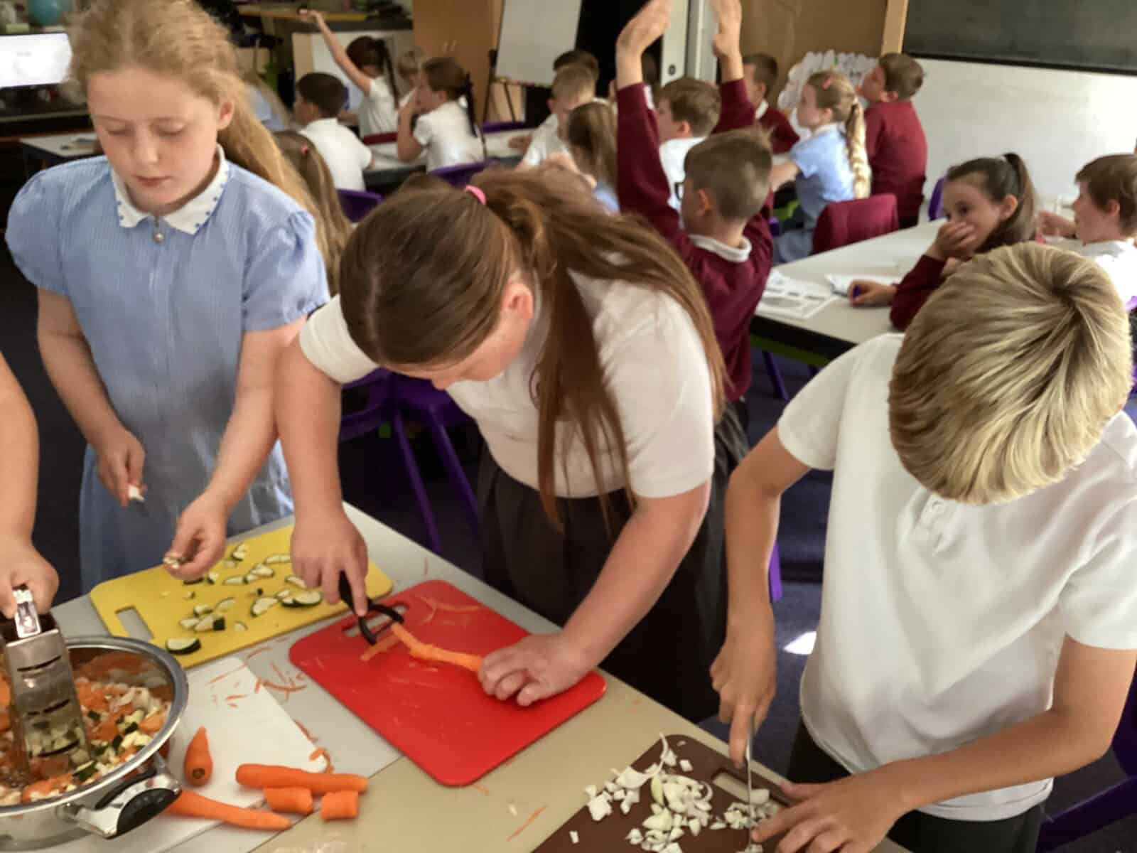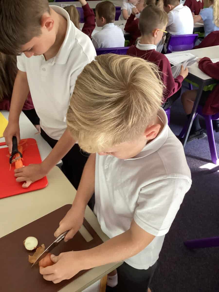 As part of our DT work this term we were set the challenge of creating our own pasta sauce and comparing it to a shop bought sauce. Firstly, we tried the shop sauce which lots of us enjoyed. We then created our own. We decided to include carrots,onions,courgettes and garlic. We used the skills we learnt last year to prepare the vegetables. We had to peel, grate and chop our ingredients into very small pieces. Then we added tomatoes and created our own sauce. It was agreed that our freshly made sauce was just as good as the shop one if not better. We also discovered we had lots of future chefs in our class. Well done Year 4.