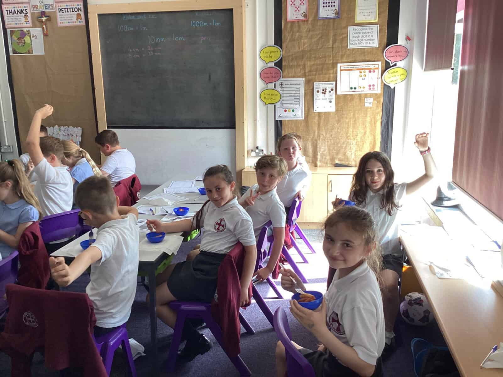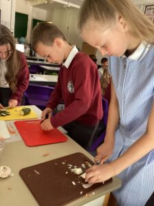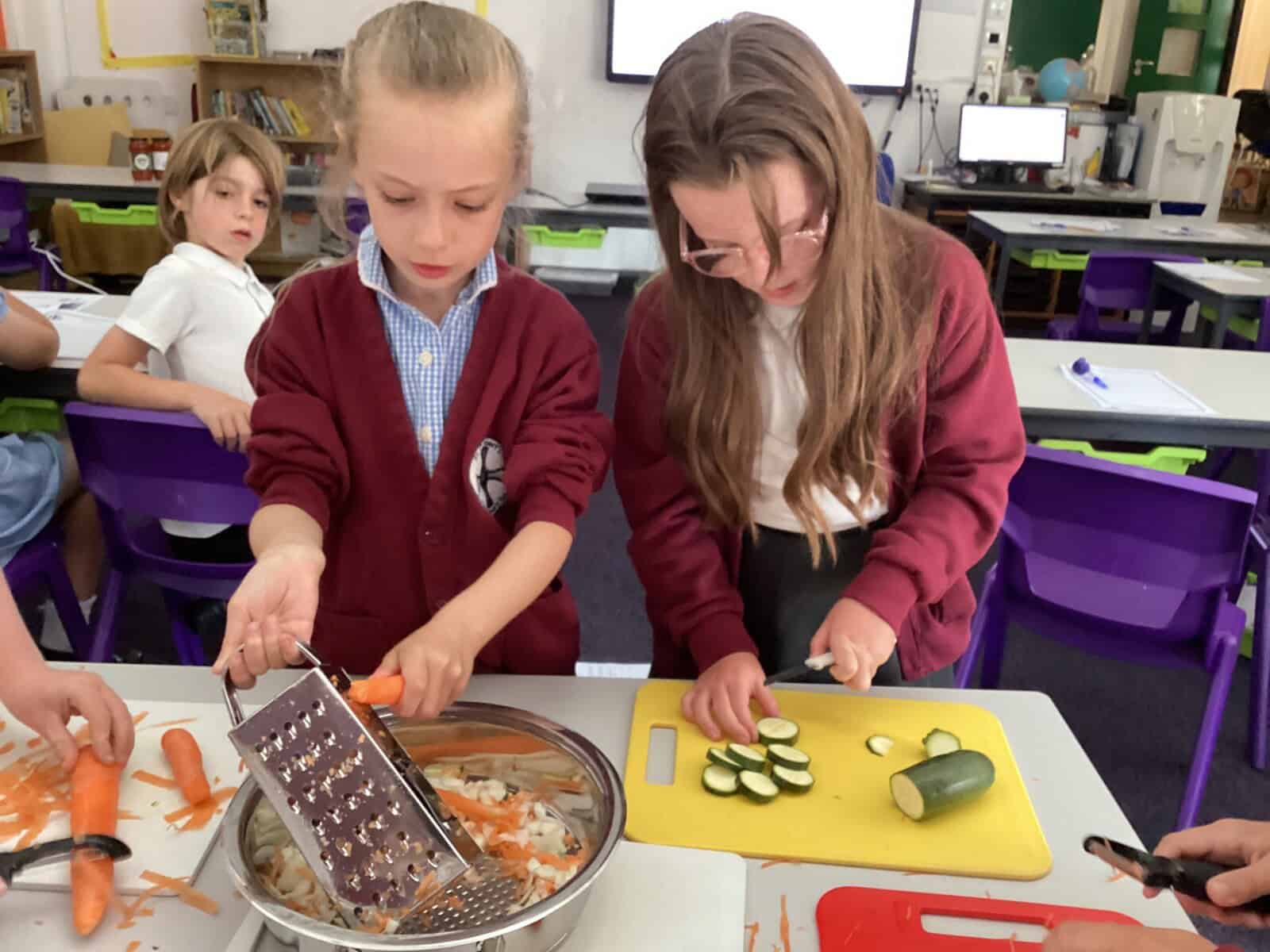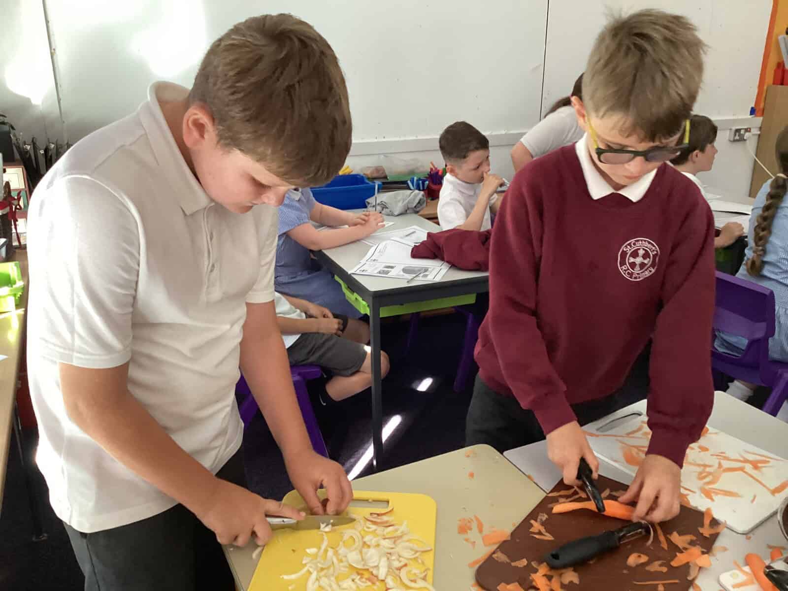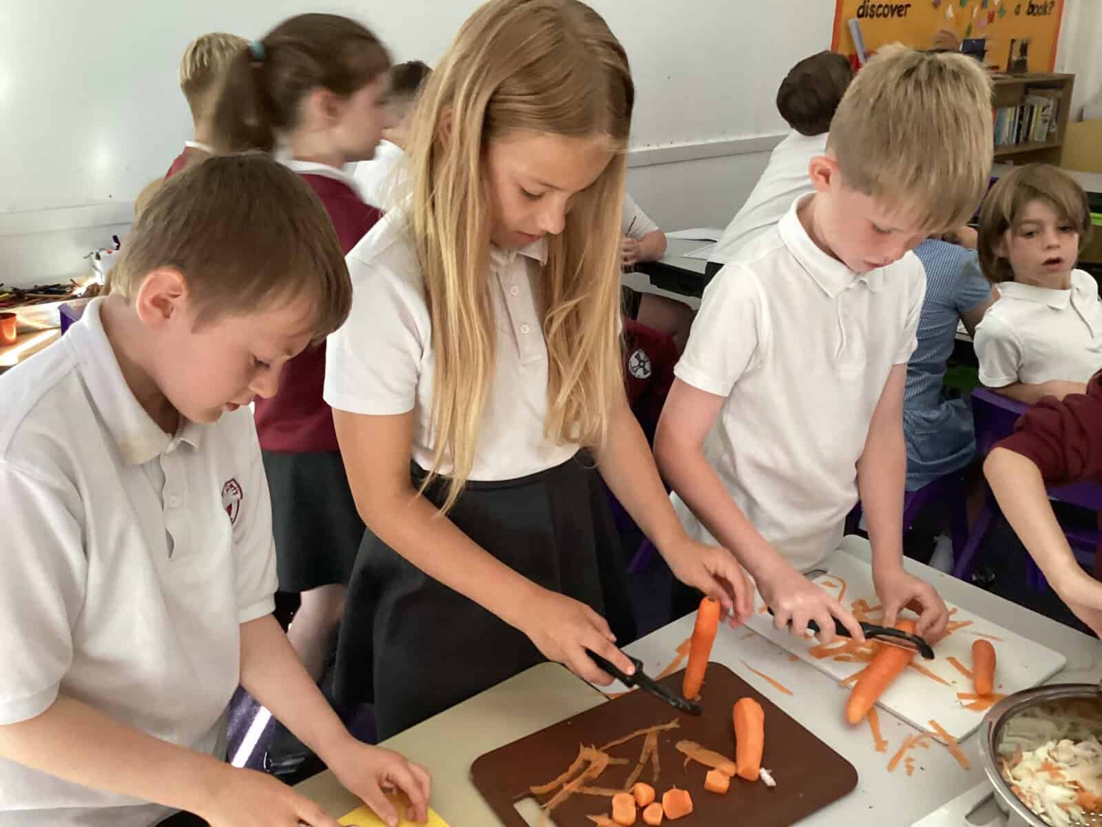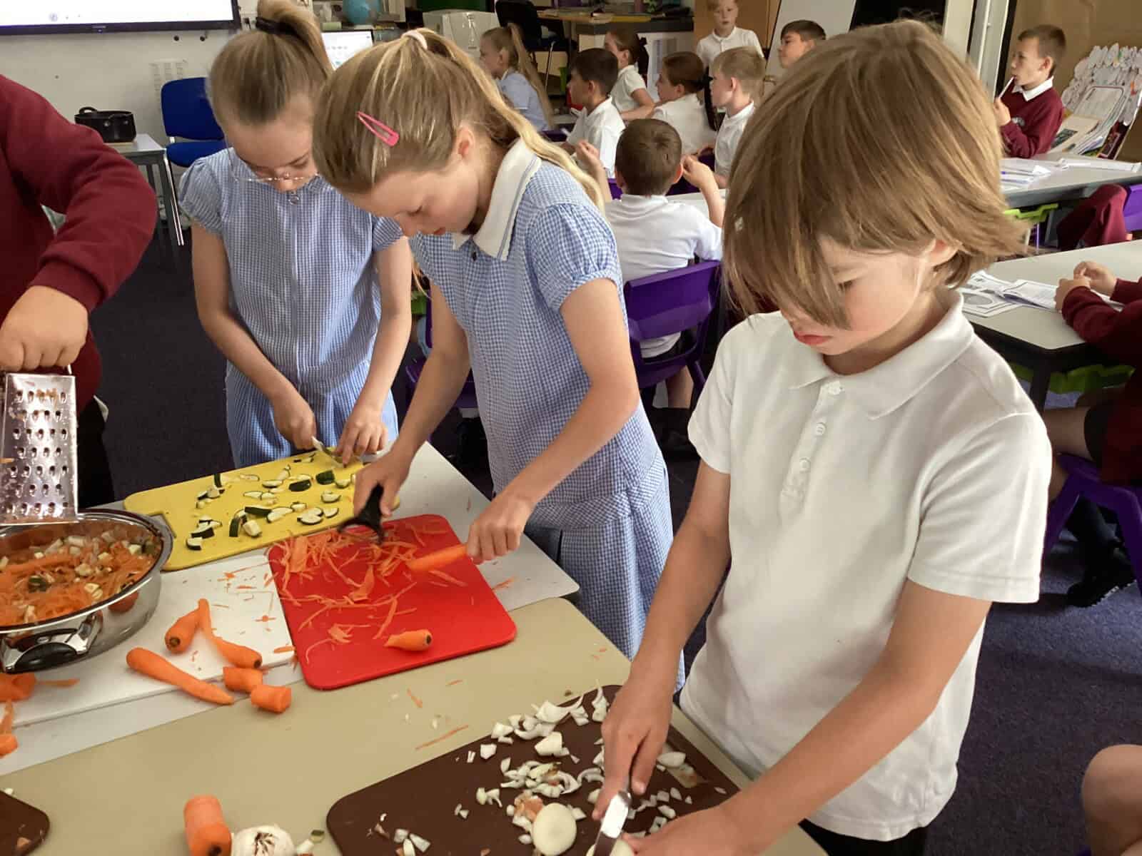 As part of our DT work this term we were set the challenge of creating our own pasta sauce and comparing it to a shop bought sauce. Firstly, we tried the shop sauce which lots of us enjoyed. We then created our own. We decided to include carrots,onions,courgettes and garlic. We used the skills we learnt last year to prepare the vegetables. We had to peel, grate and chop our ingredients into very small pieces. Then we added tomatoes and created our own sauce. It was agreed that our freshly made sauce was just as good as the shop one if not better. We also discovered we had lots of future chefs in our class. Well done Year 4.