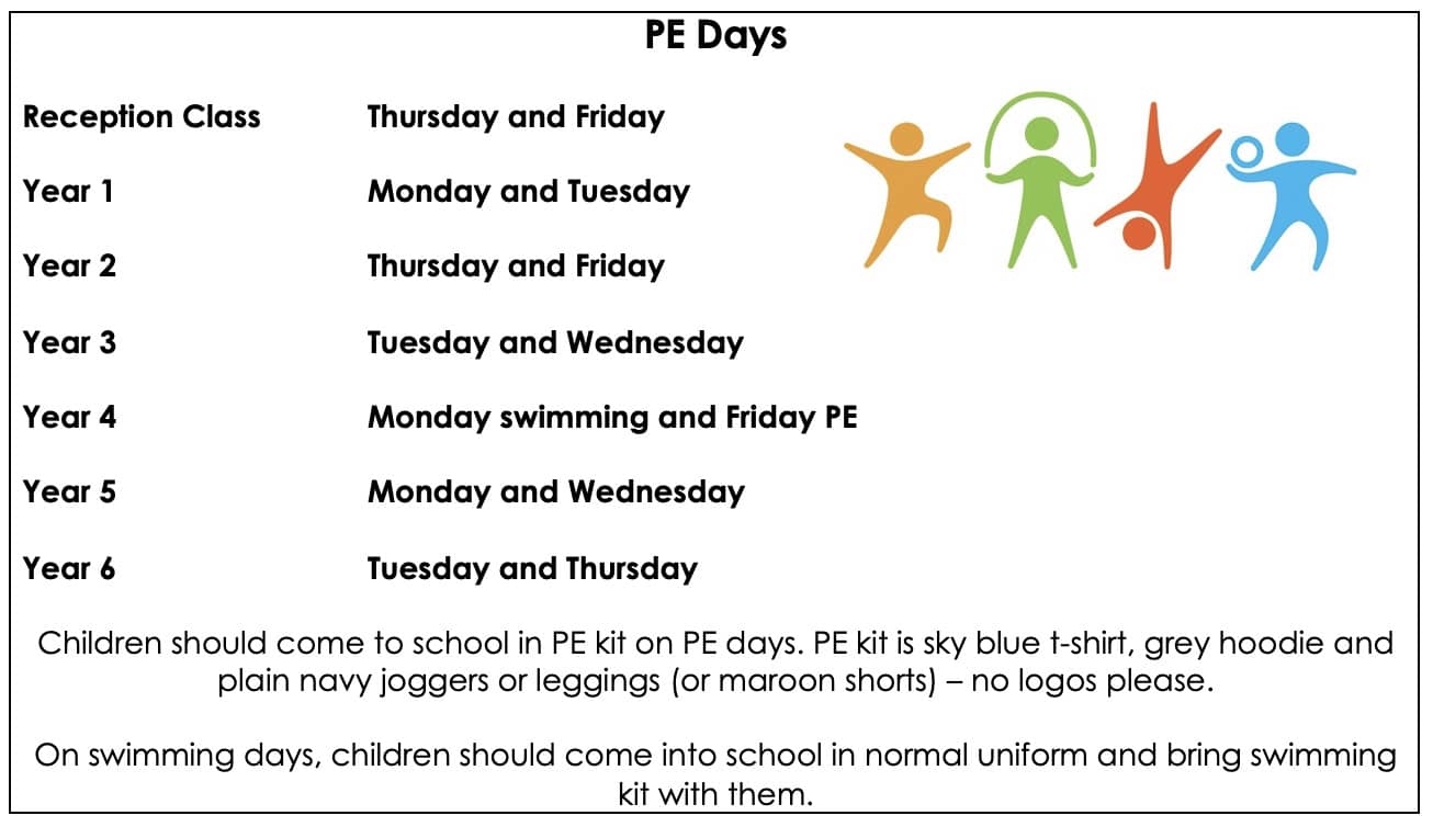 PE days beginning from Monday 11th September.