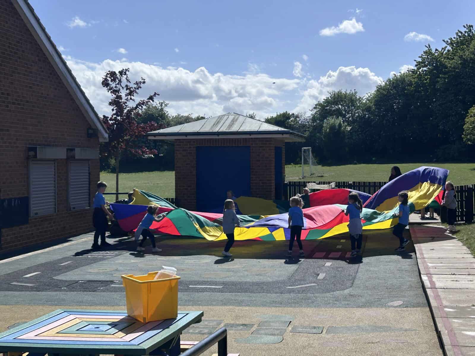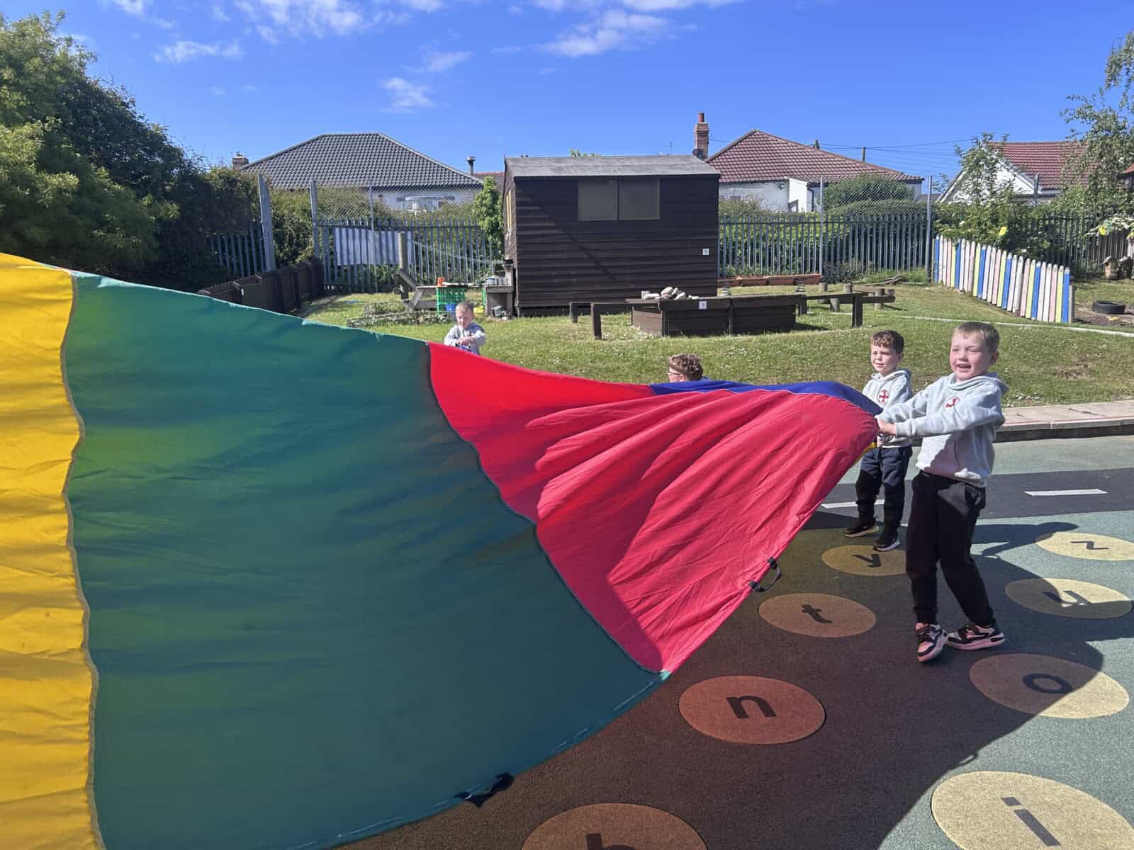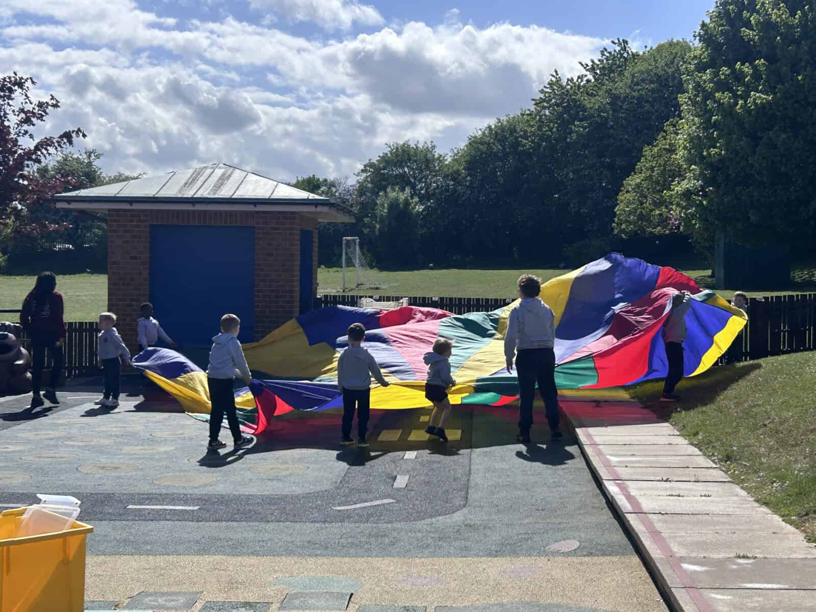 Our final playground games session was simply wonderful! The children had a great time with Scarlett, Sam, Unique and Jacob learning different games to play with the parachute. After, they had a fantastic time using the silent disco headphone to dance and sing to their favourite songs.
