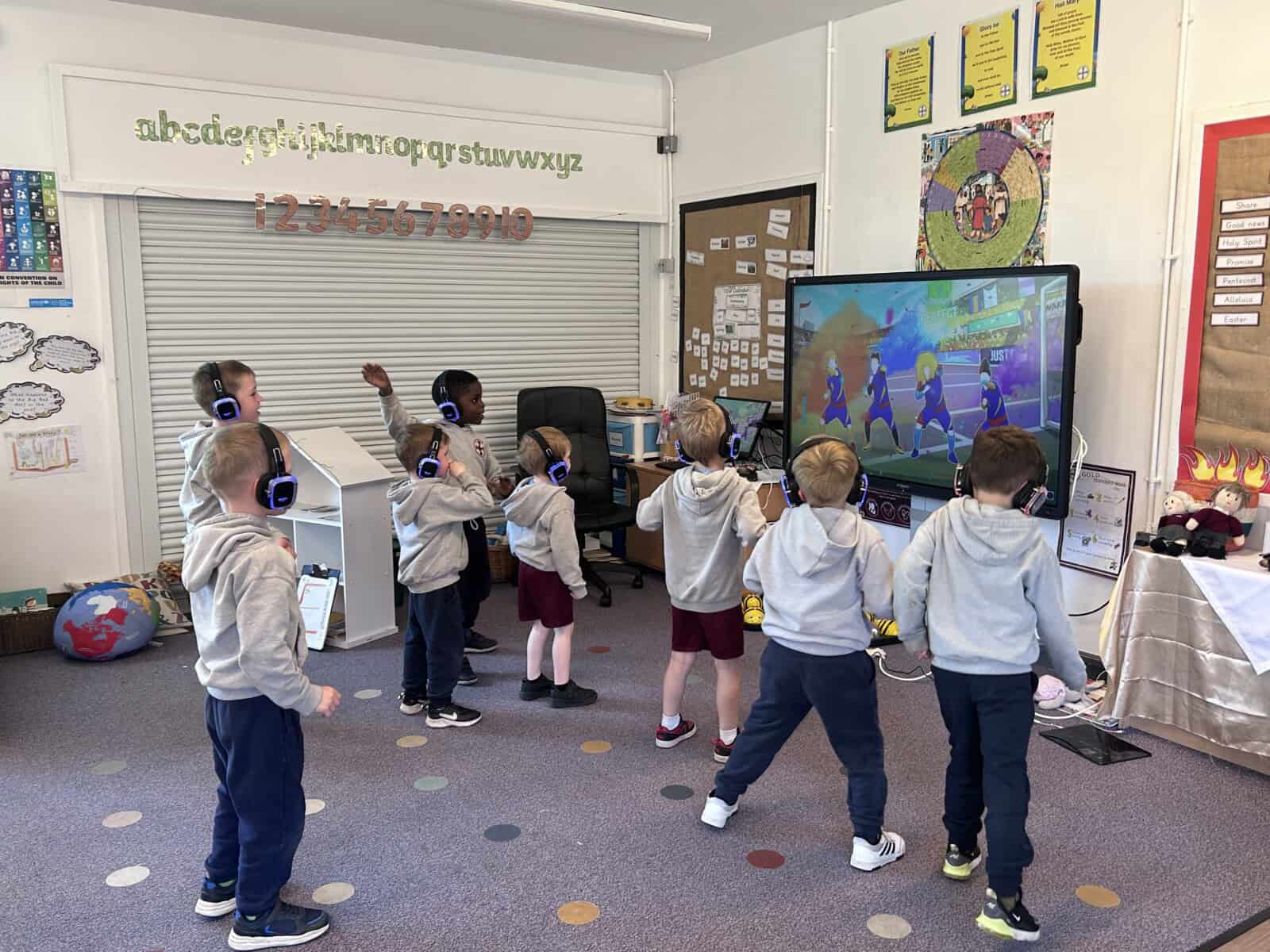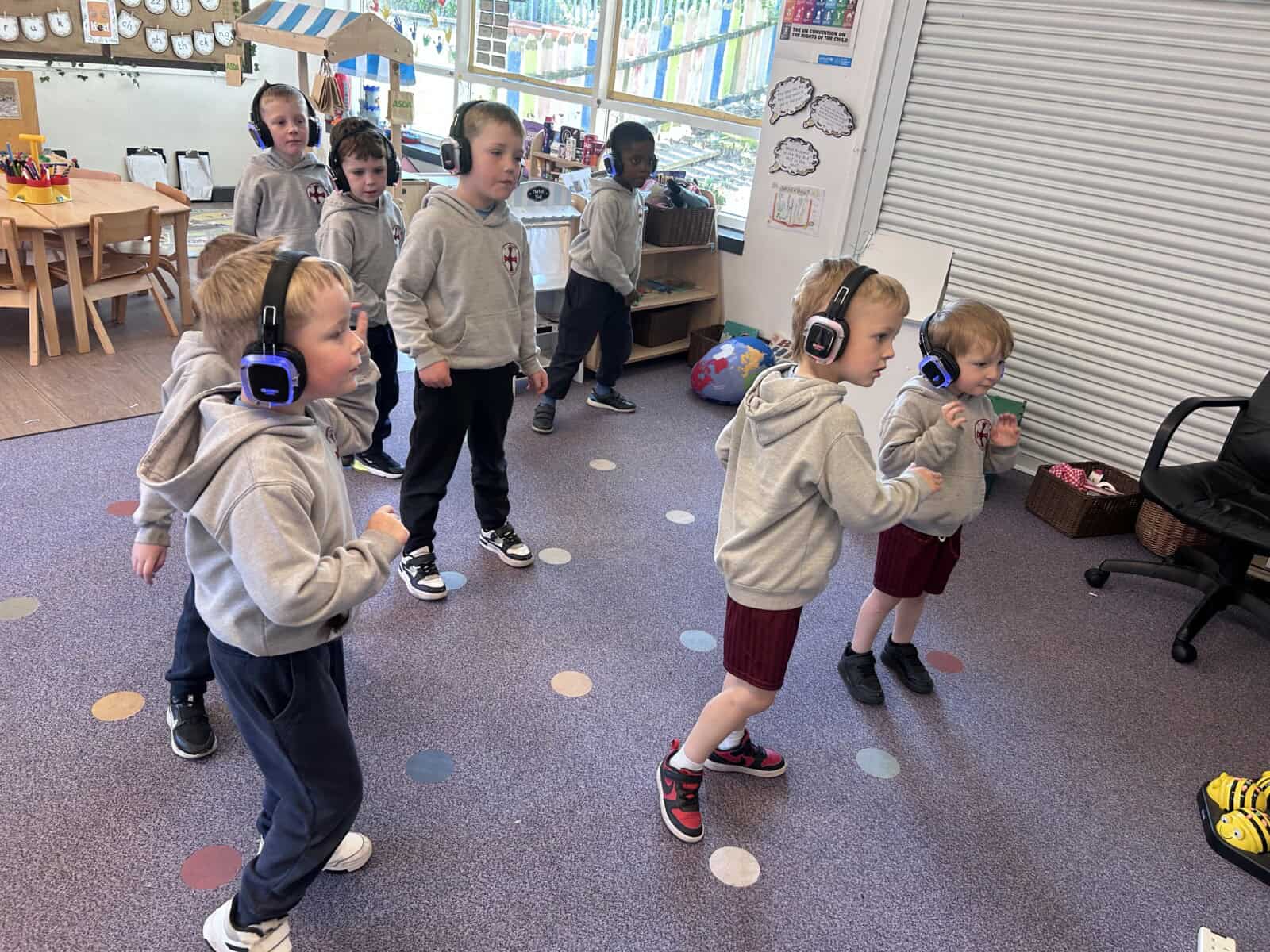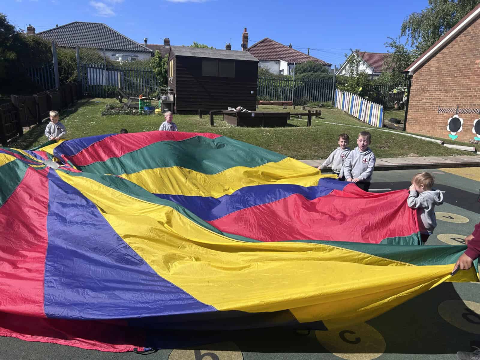 Our final playground games session was simply wonderful! The children had a great time with Scarlett, Sam, Unique and Jacob learning different games to play with the parachute. After, they had a fantastic time using the silent disco headphone to dance and sing to their favourite songs.