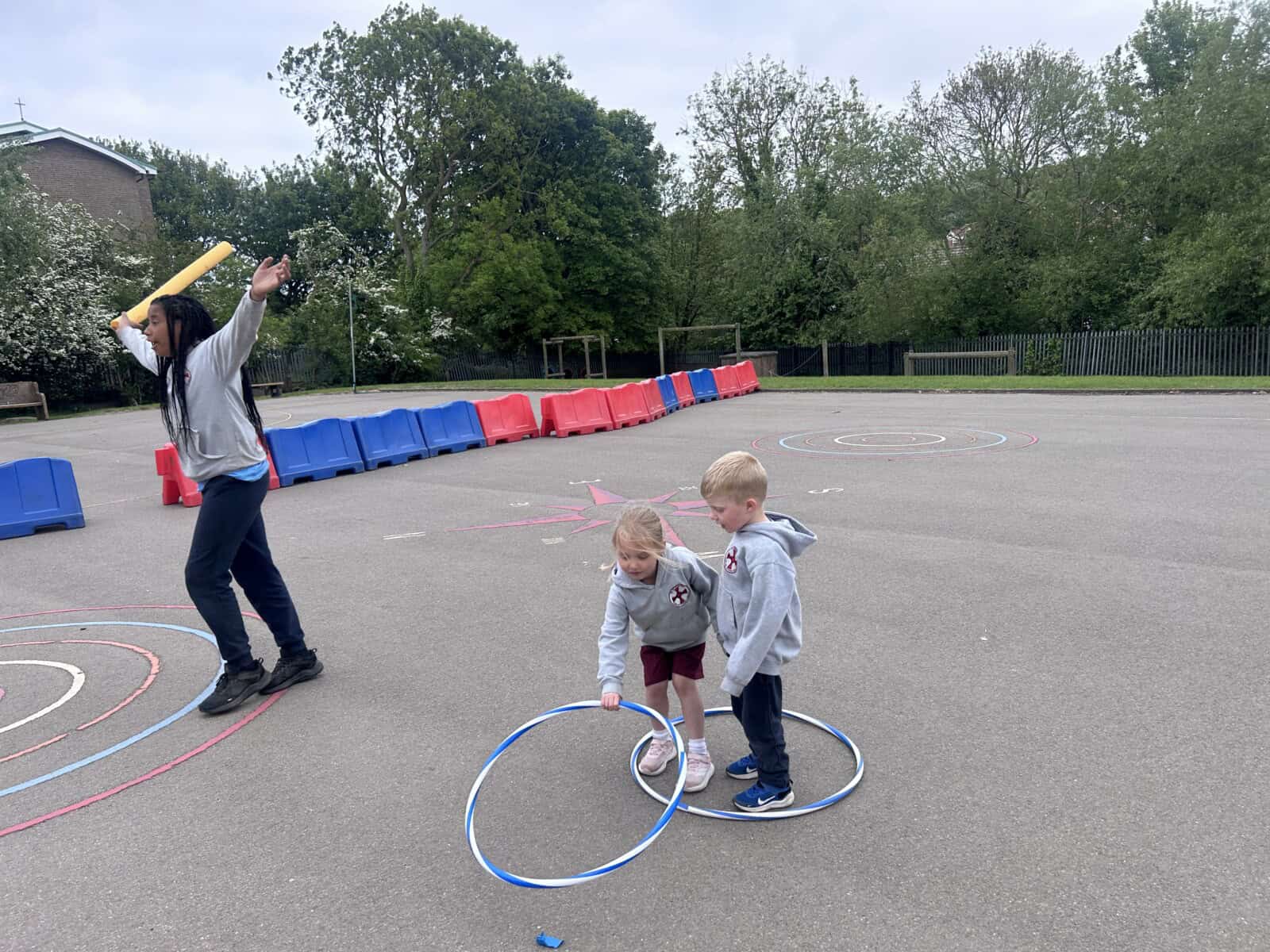 Tonight, the reception children had a wonderful time with the yr6 play leaders taking part in a carousel of activities. They practised throwing and catching, football agility skills and team building skills.