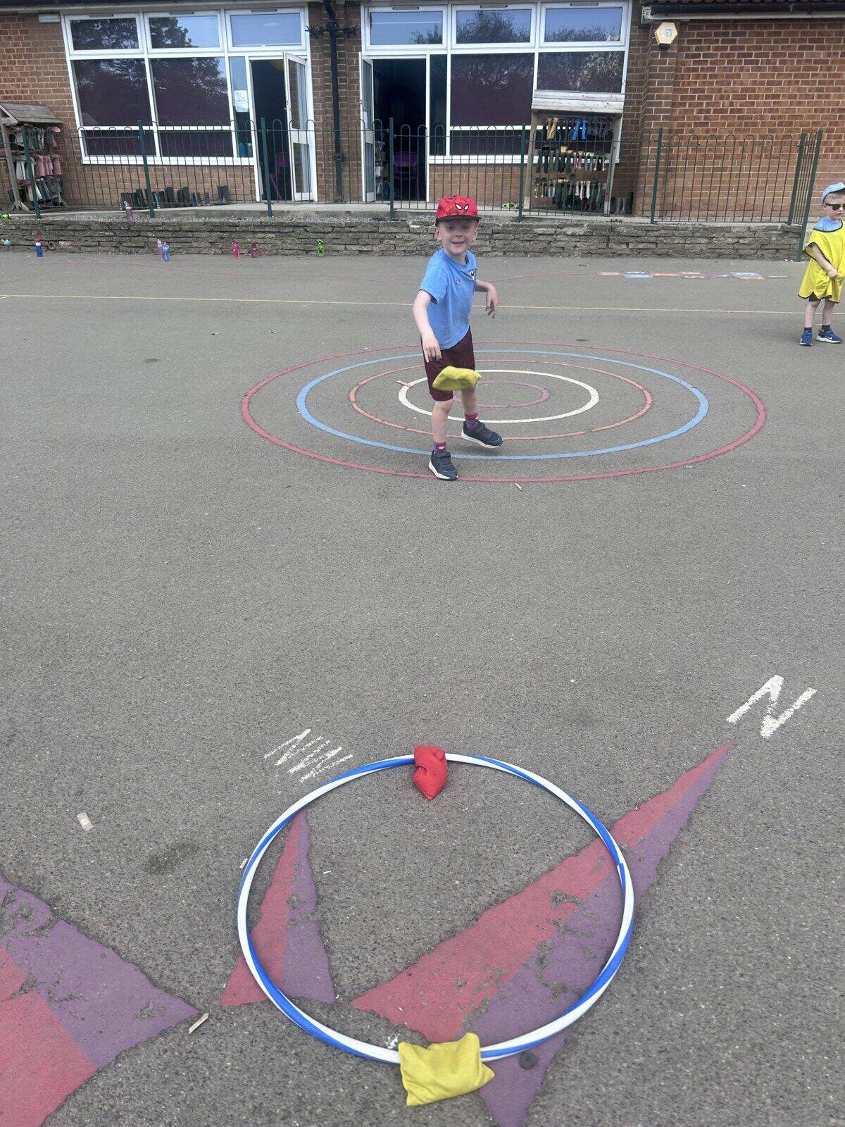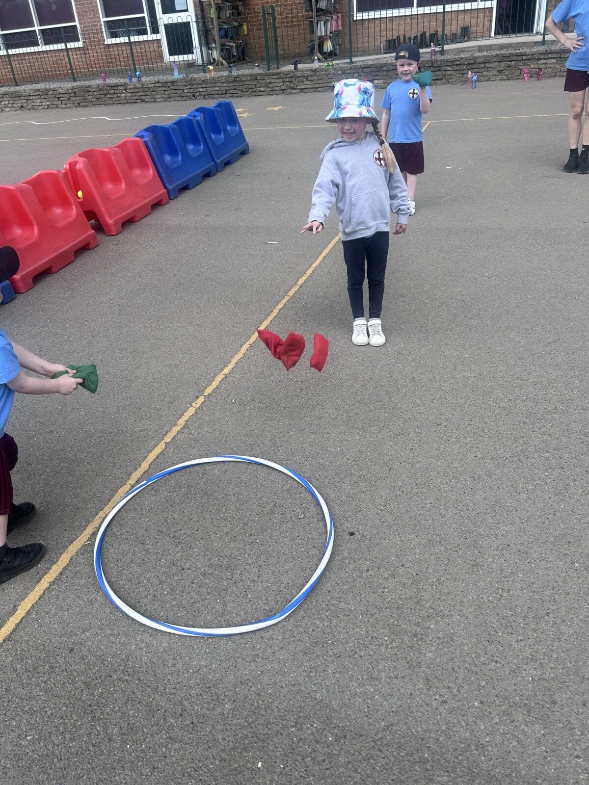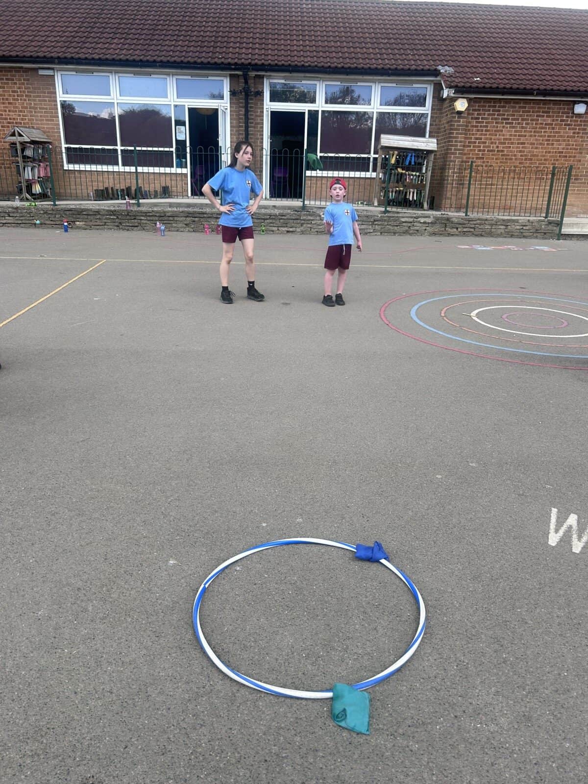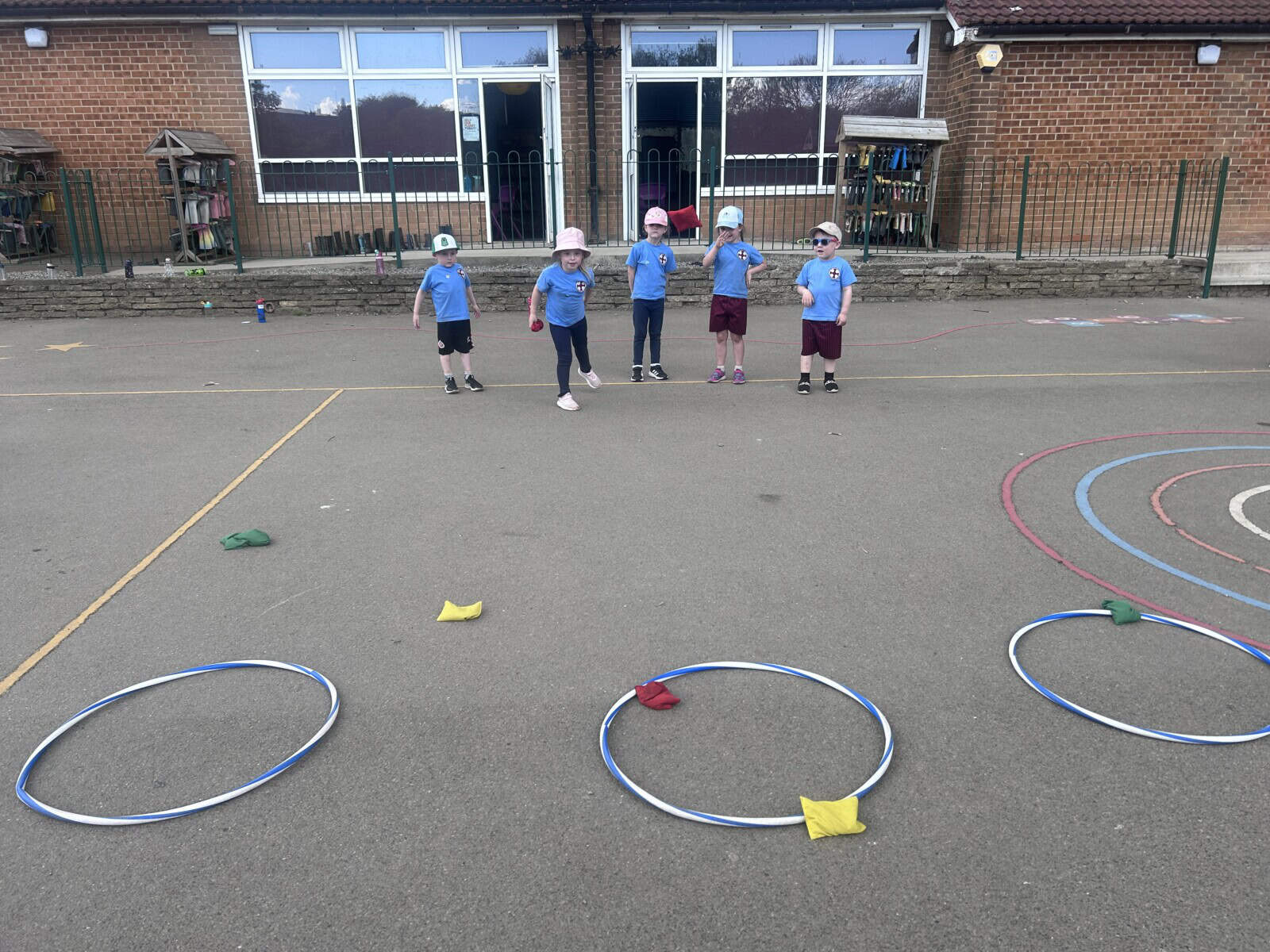 We certainly had the weather for the first session of playground games! The reception children had a wonderful time with Miss Scarr and 4 year 6 sports leaders. They experienced 4 different games which worked on balance, aim, coordination and agility.