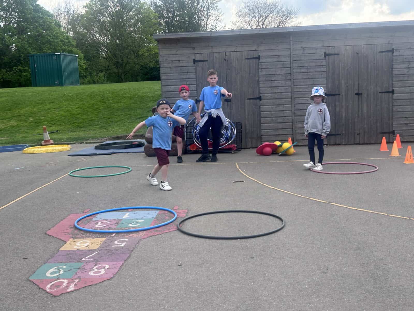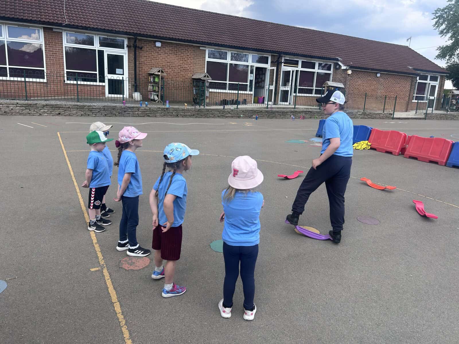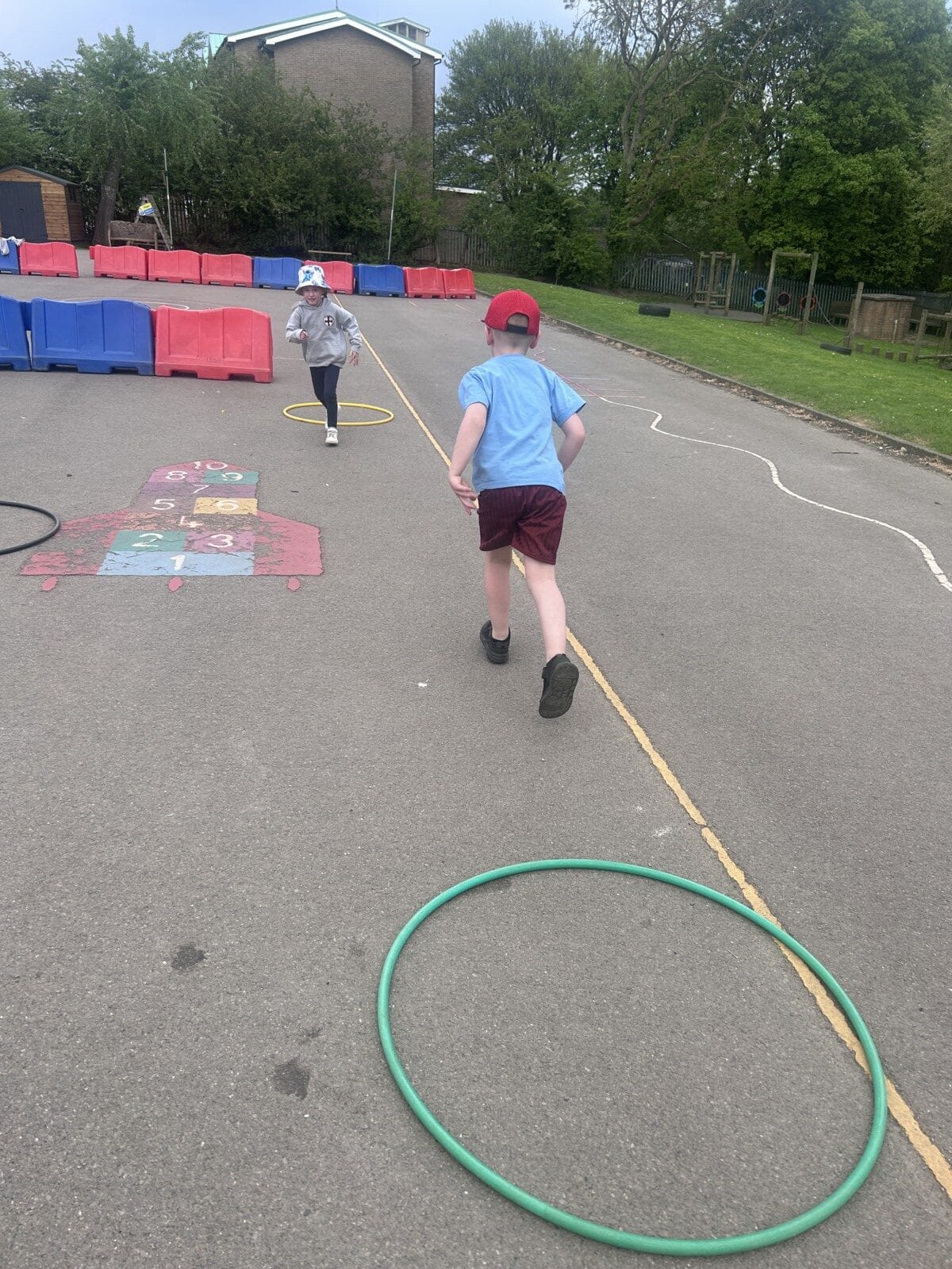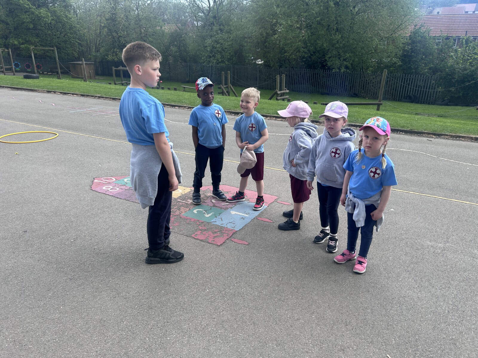 We certainly had the weather for the first session of playground games! The reception children had a wonderful time with Miss Scarr and 4 year 6 sports leaders. They experienced 4 different games which worked on balance, aim, coordination and agility.