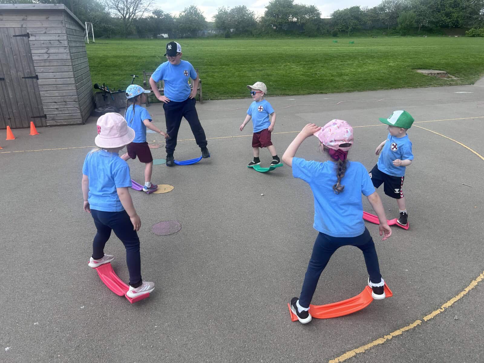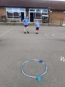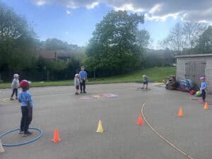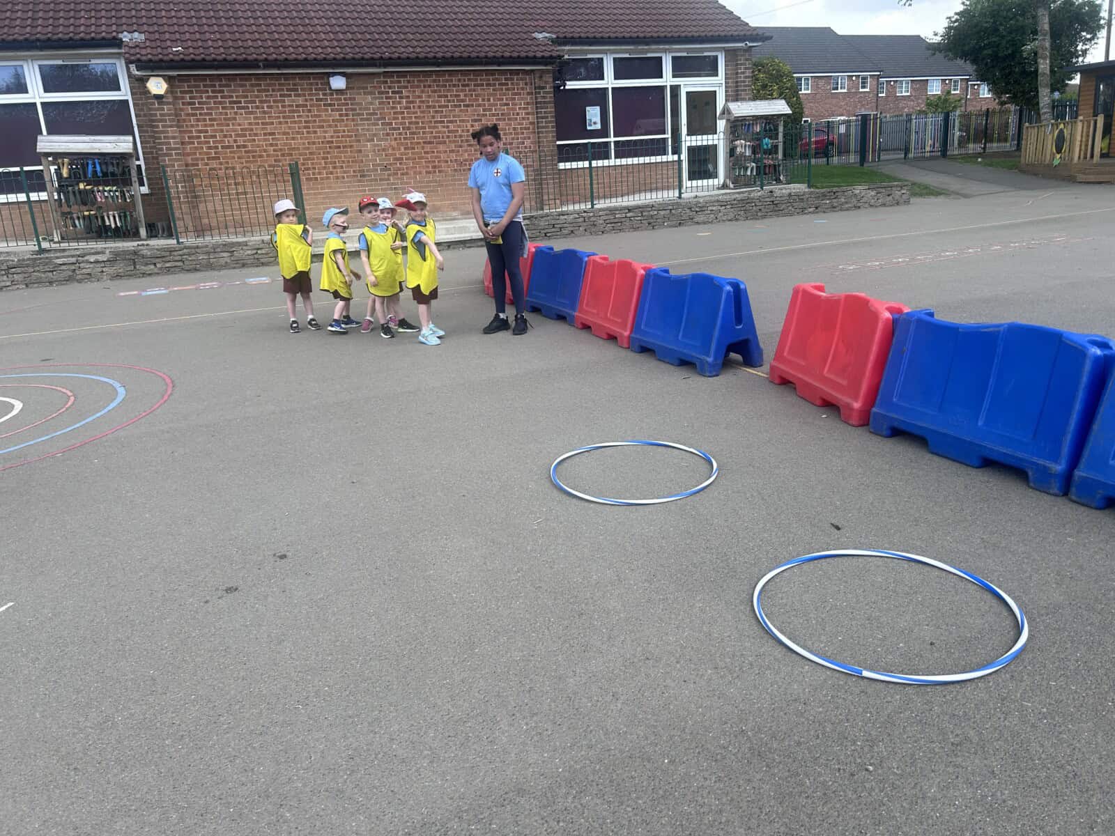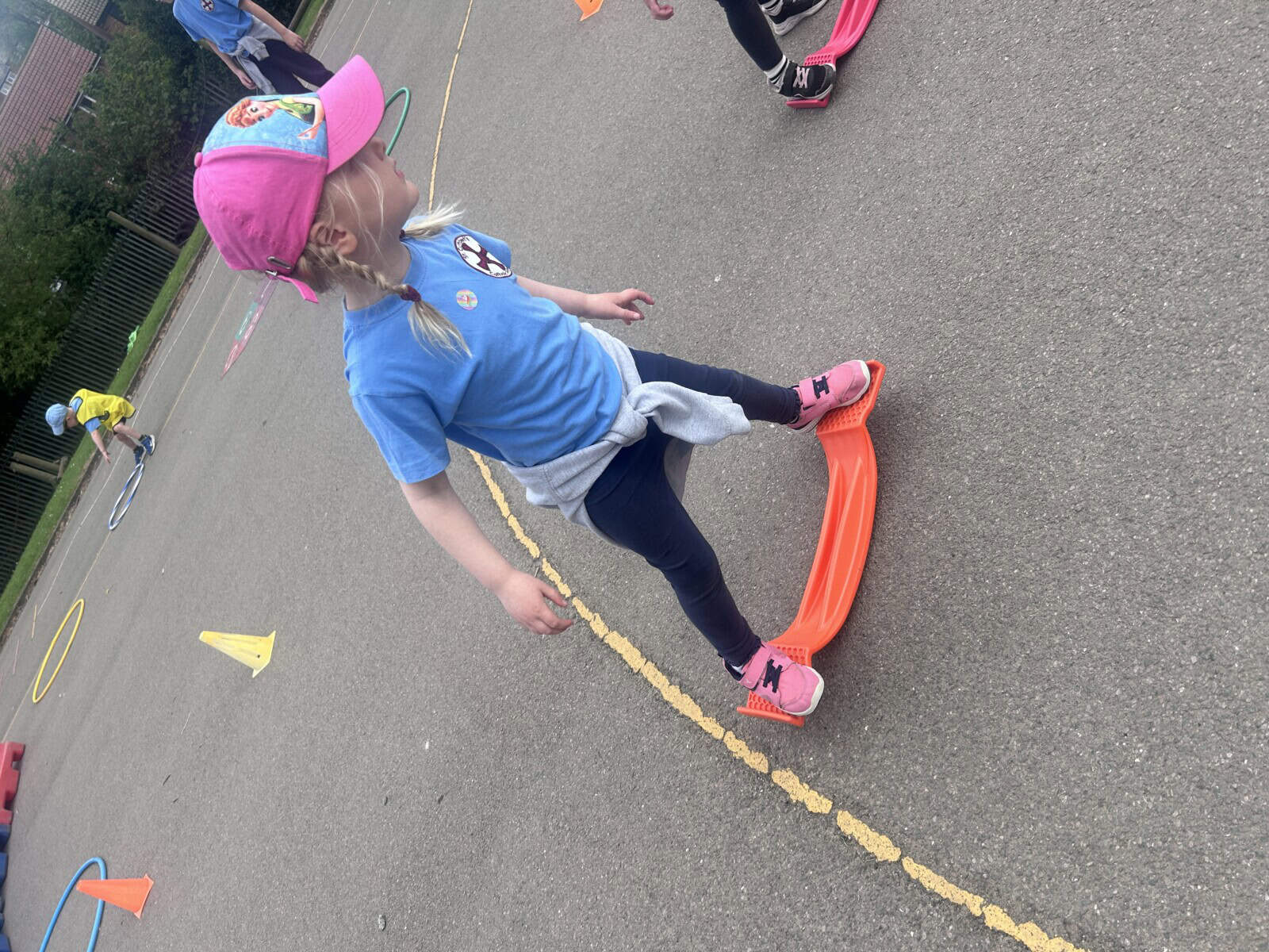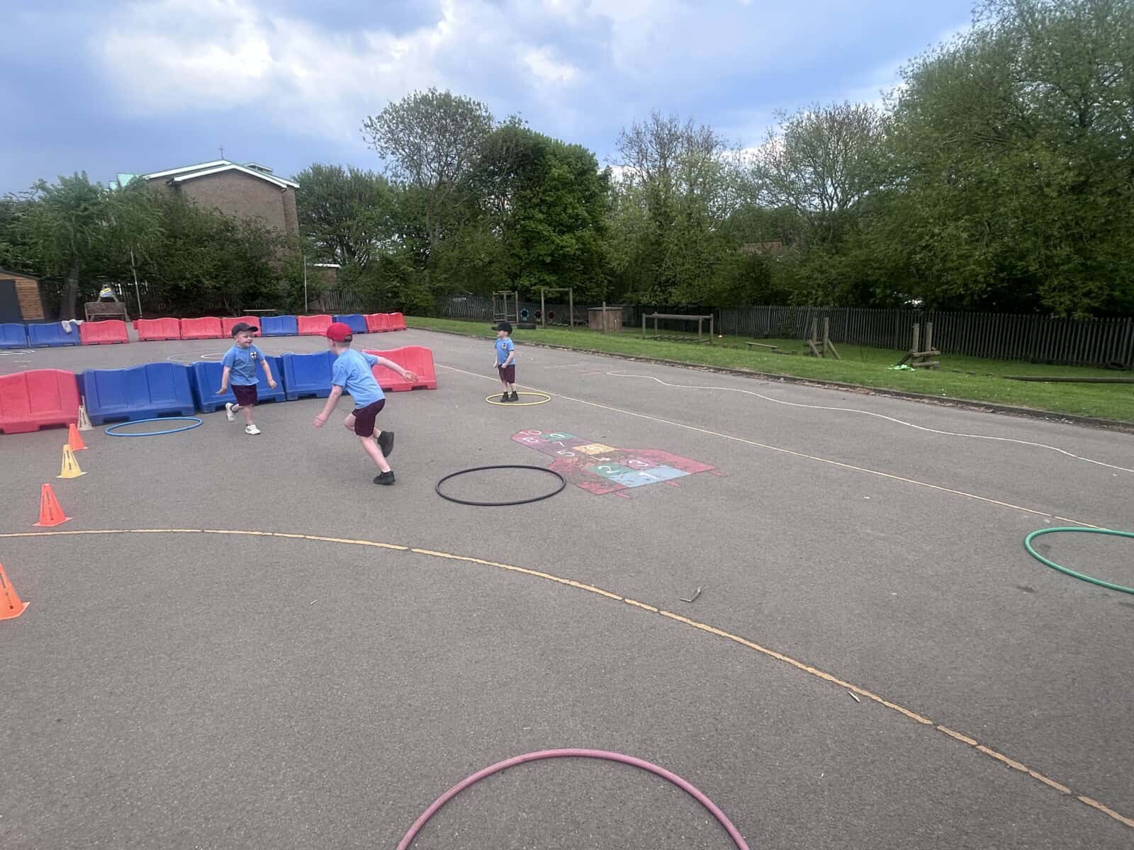 We certainly had the weather for the first session of playground games! The reception children had a wonderful time with Miss Scarr and 4 year 6 sports leaders. They experienced 4 different games which worked on balance, aim, coordination and agility.