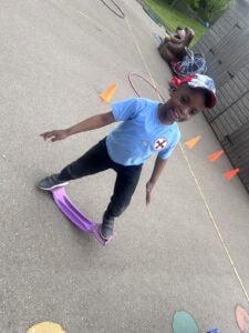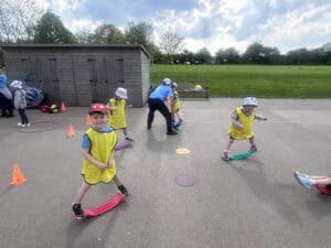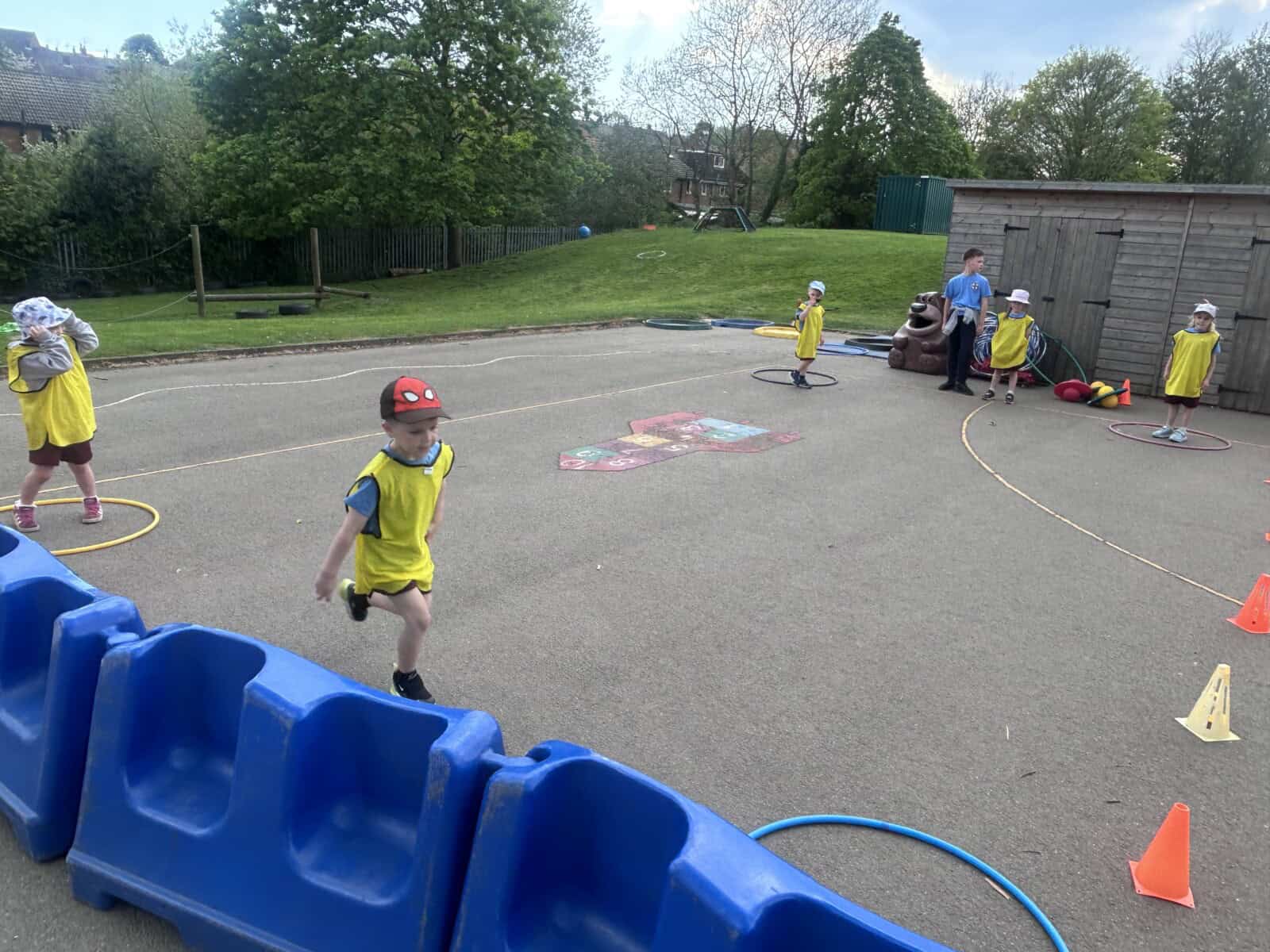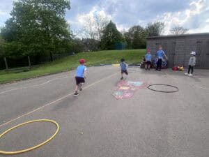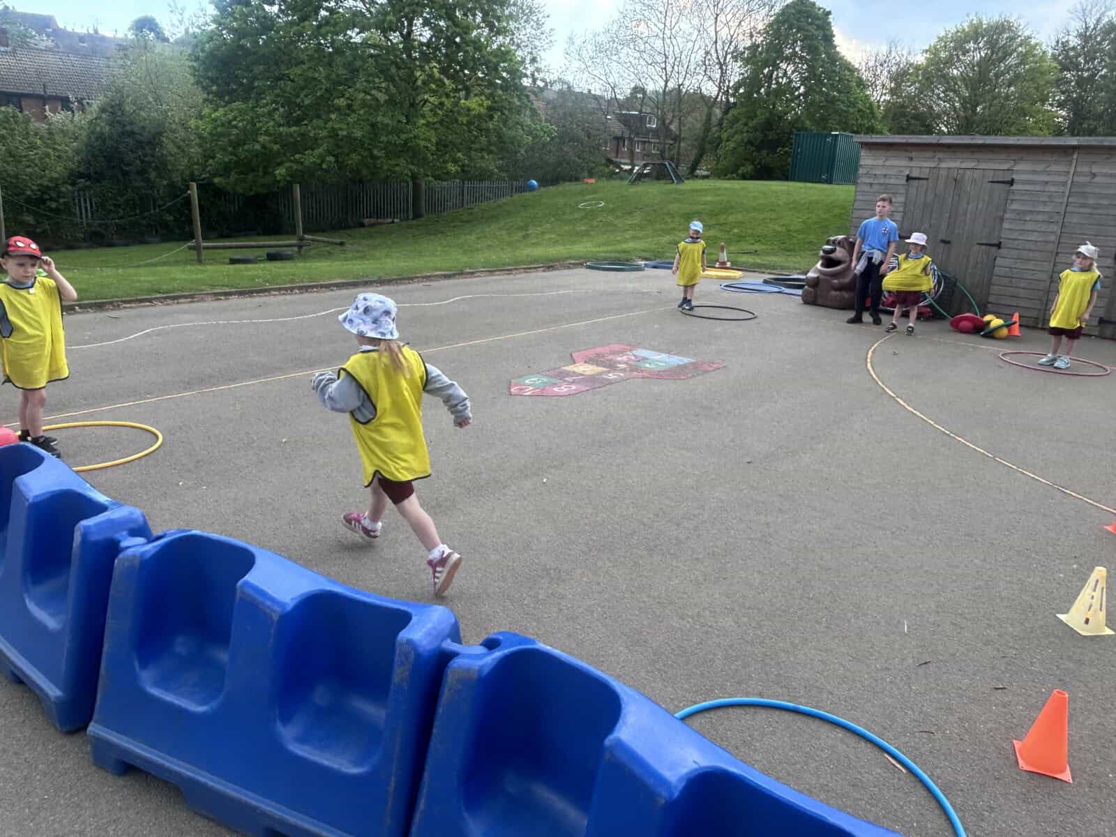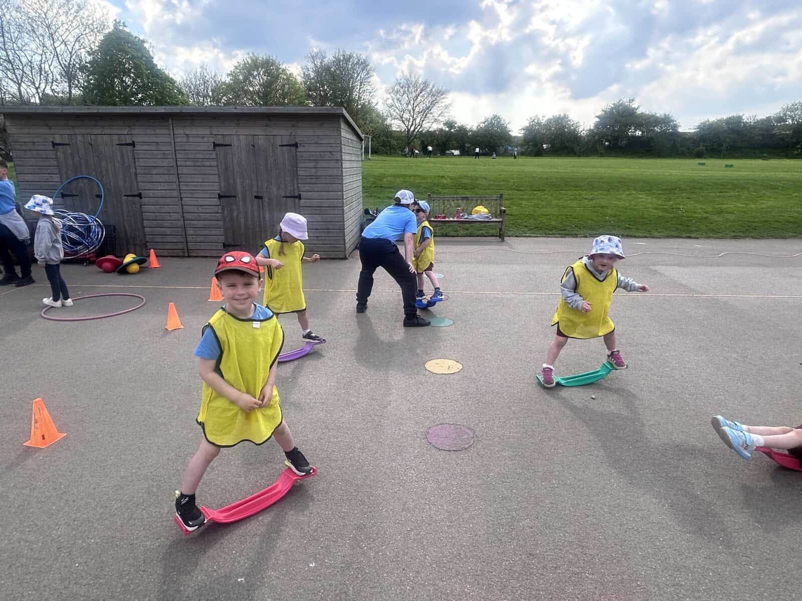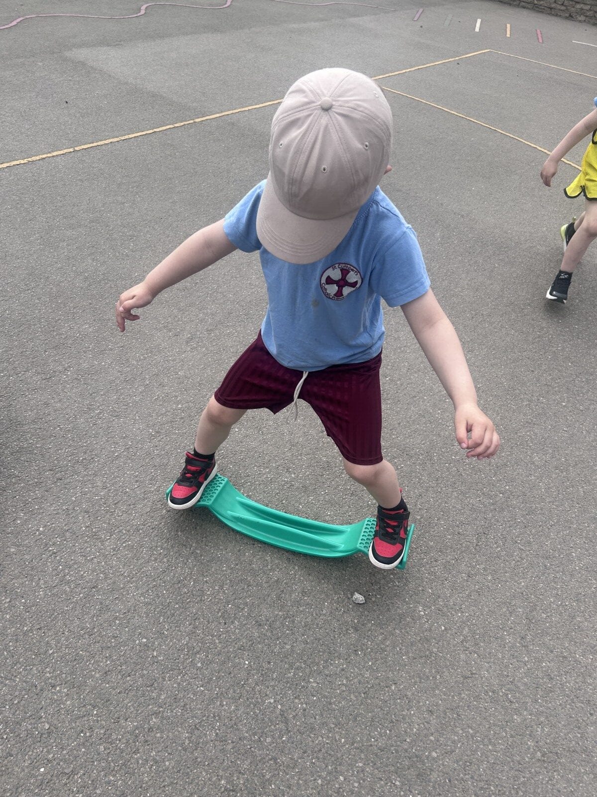 We certainly had the weather for the first session of playground games! The reception children had a wonderful time with Miss Scarr and 4 year 6 sports leaders. They experienced 4 different games which worked on balance, aim, coordination and agility.