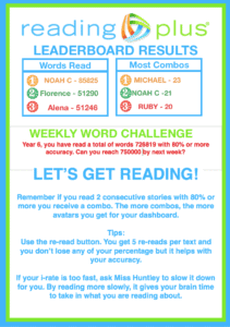 Check our last week’s Reading Plus leaderboard: