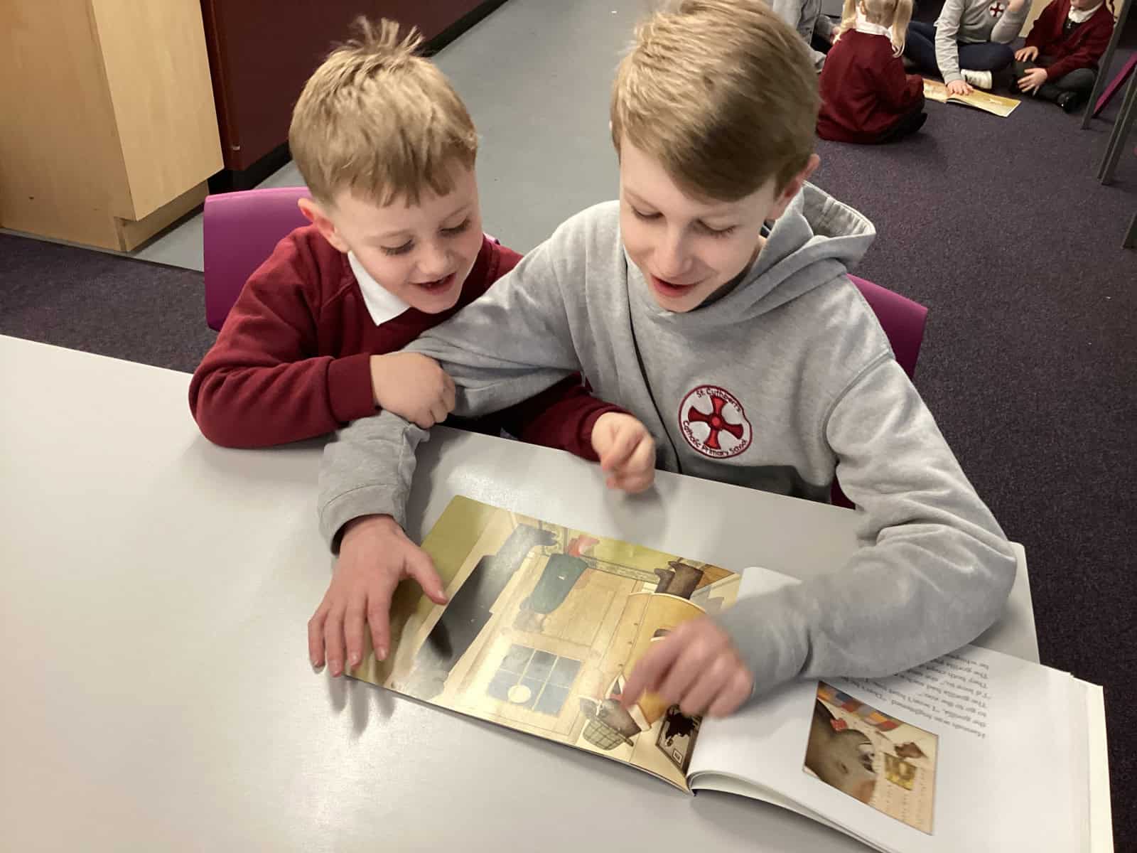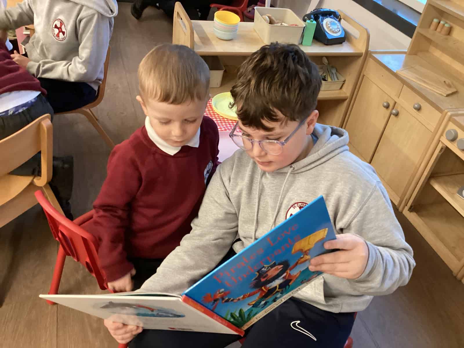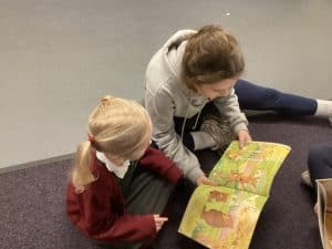 This week is National Storytelling Week so Reception Class have enjoyed story time this morning with their Year six buddies. It was lovely to see the children so engaged and enjoying listening to a range of different stories. Thank you Year six.