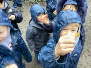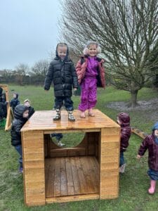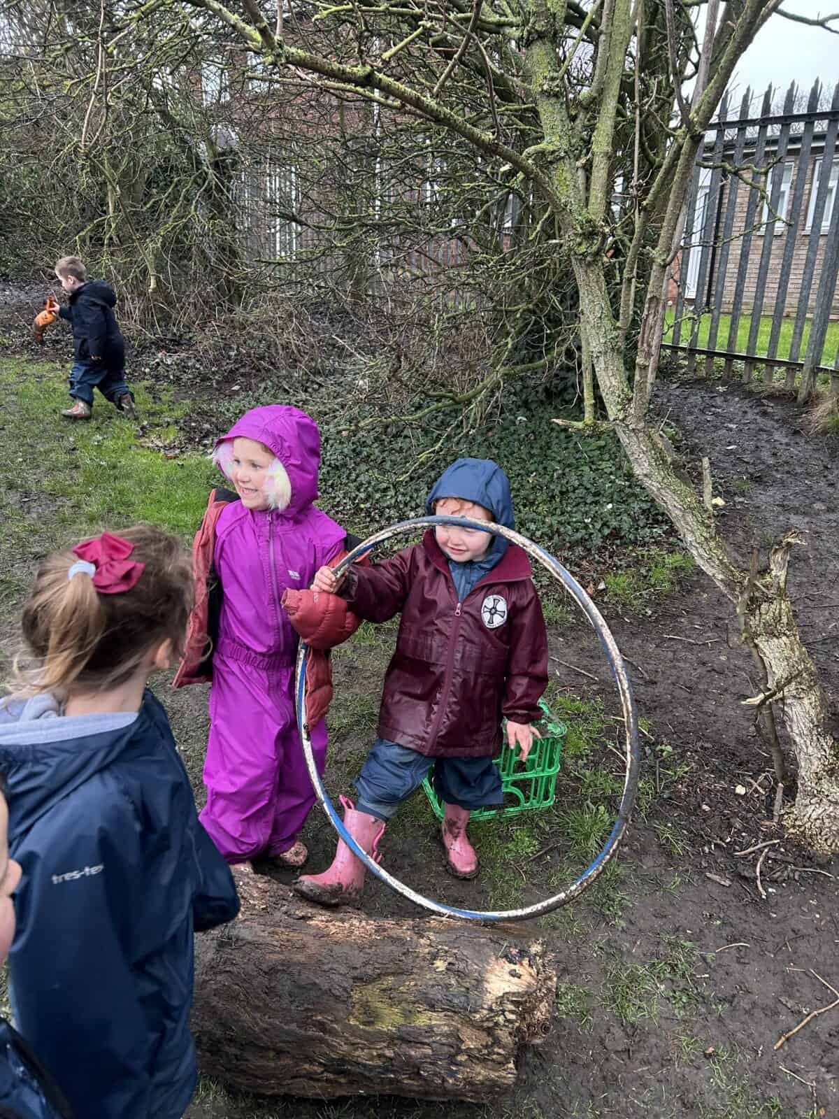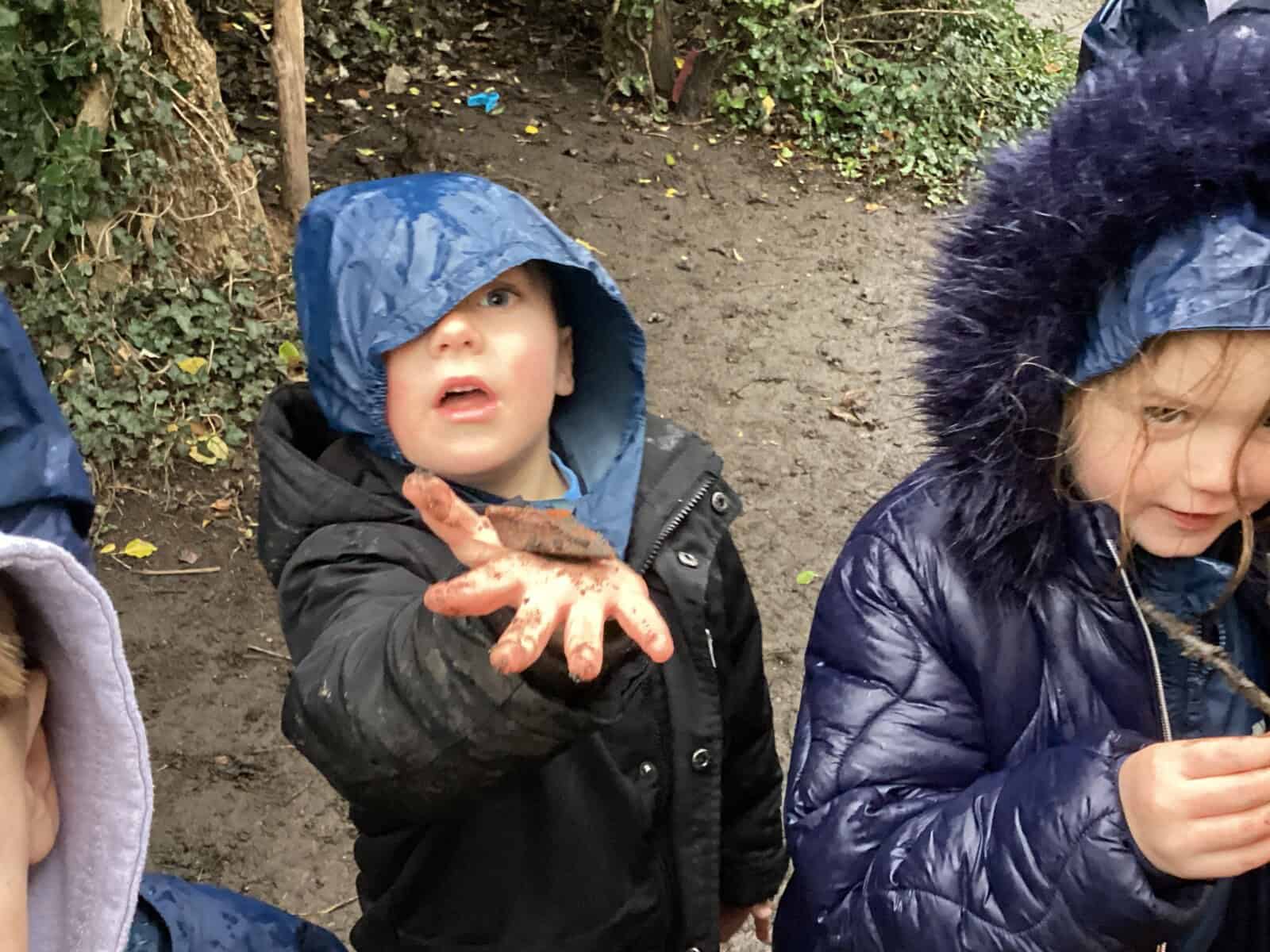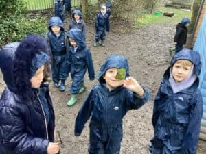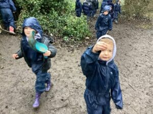 This week was a very wet forest school for Reception Class but they still had lots of fun. The children completed an exploring type activity where they had to find natural things relating to certain criteria. This was good for the development of their scientific vocabulary. They then enjoyed exploring and playing on our new Reception Class climbing and balancing equipment. Afterwards, then enjoyed a hot chocolate to warm up.