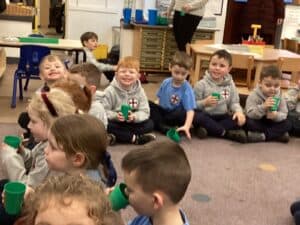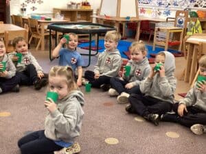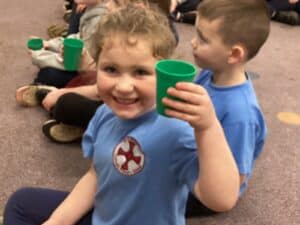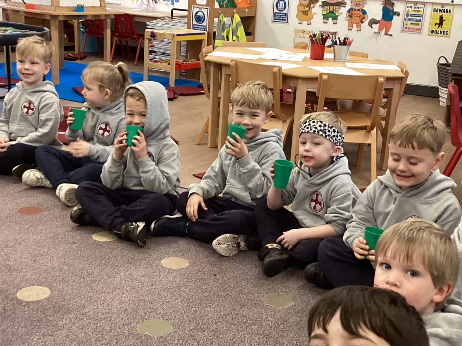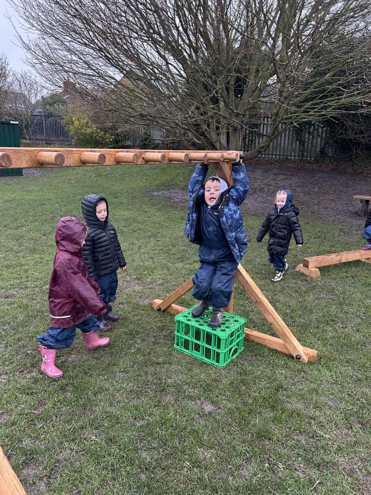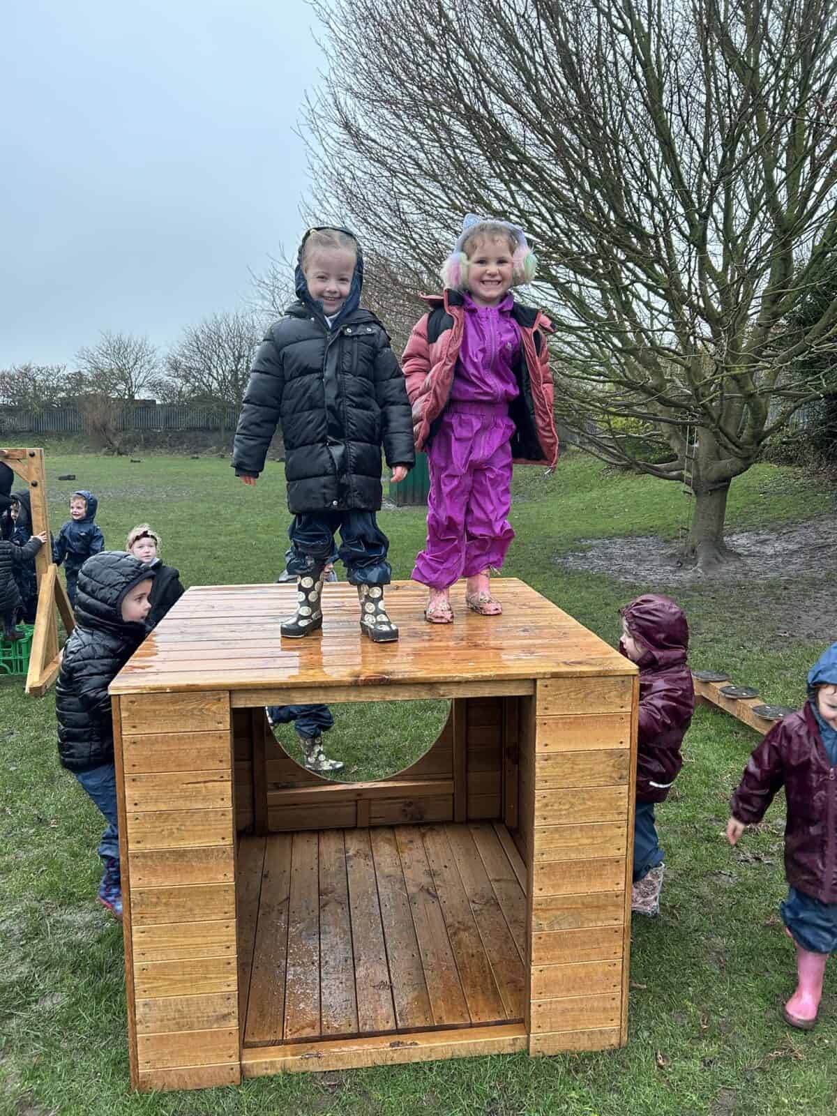 This week was a very wet forest school for Reception Class but they still had lots of fun. The children completed an exploring type activity where they had to find natural things relating to certain criteria. This was good for the development of their scientific vocabulary. They then enjoyed exploring and playing on our new Reception Class climbing and balancing equipment. Afterwards, then enjoyed a hot chocolate to warm up.