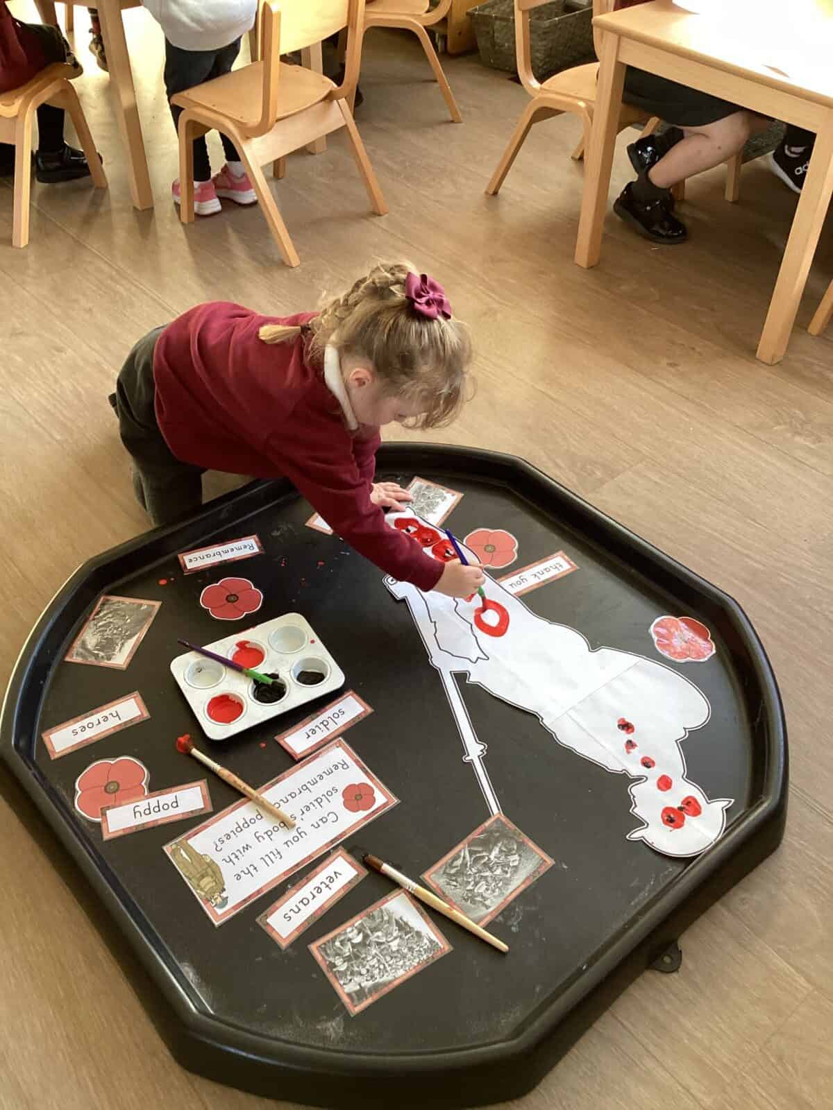 Today we learnt about why we have Remembrance Day. We talked about the poppy fields and why we wear a poppy. We also watched a little video clip from CBeebies which showed what it was like in the war.