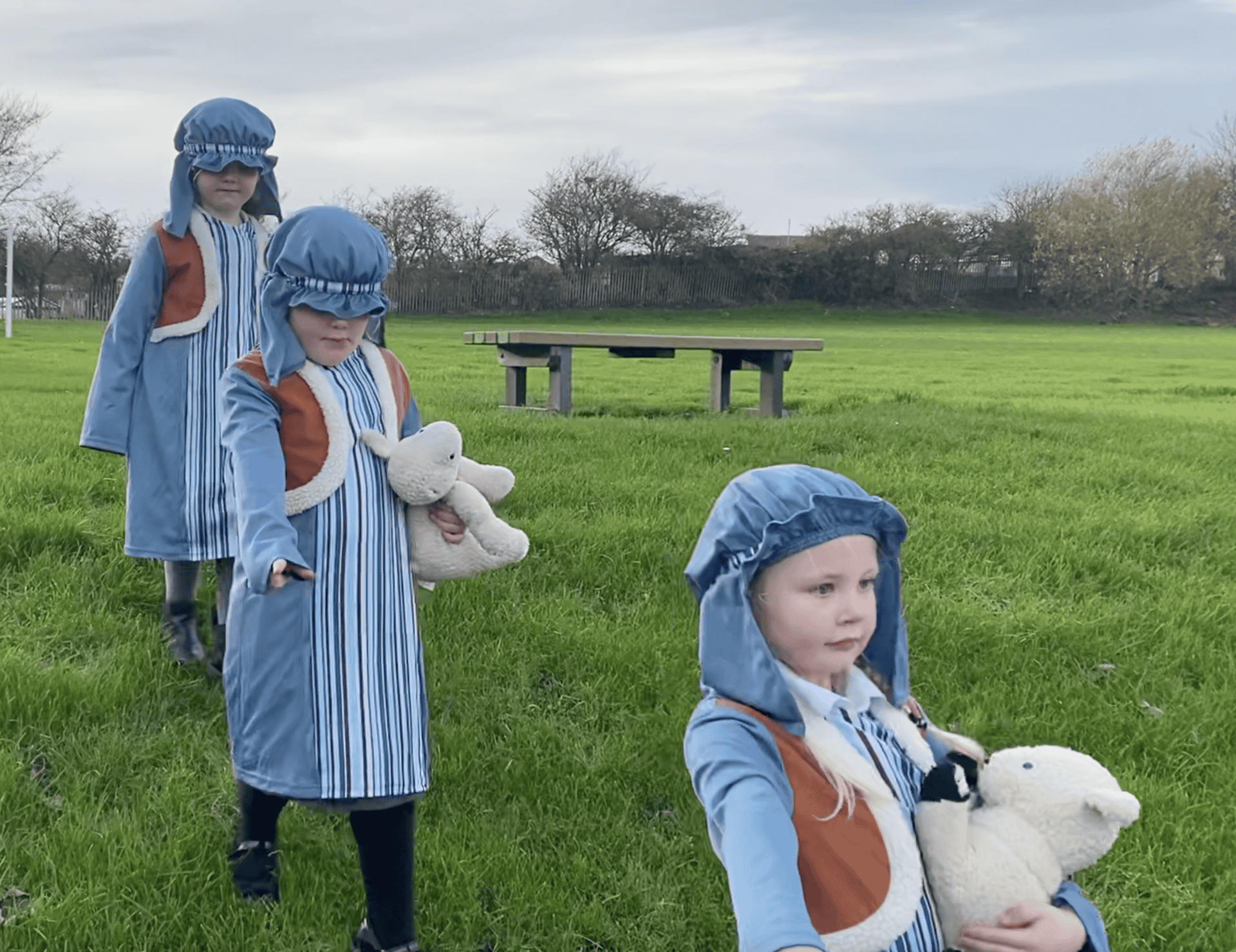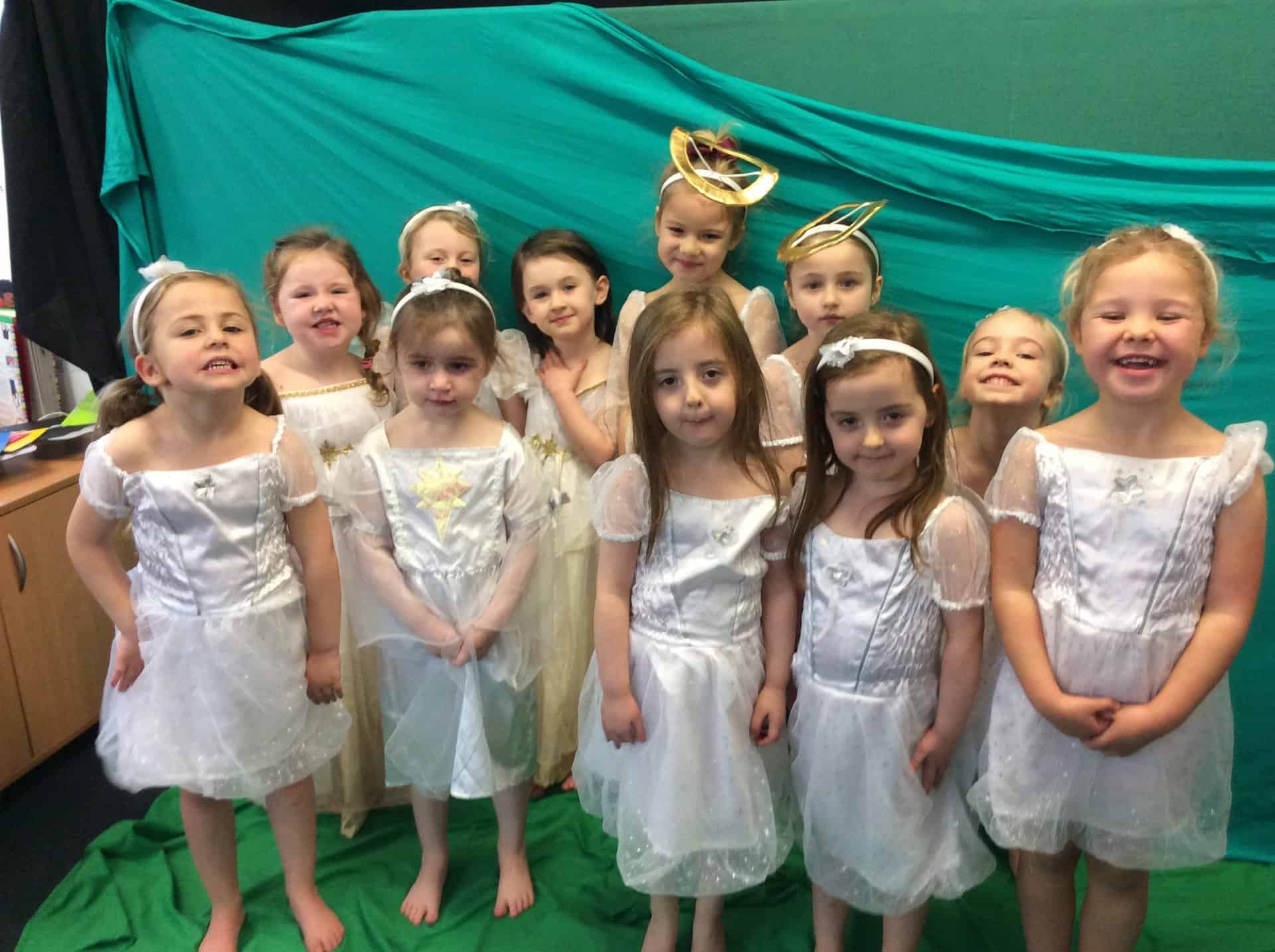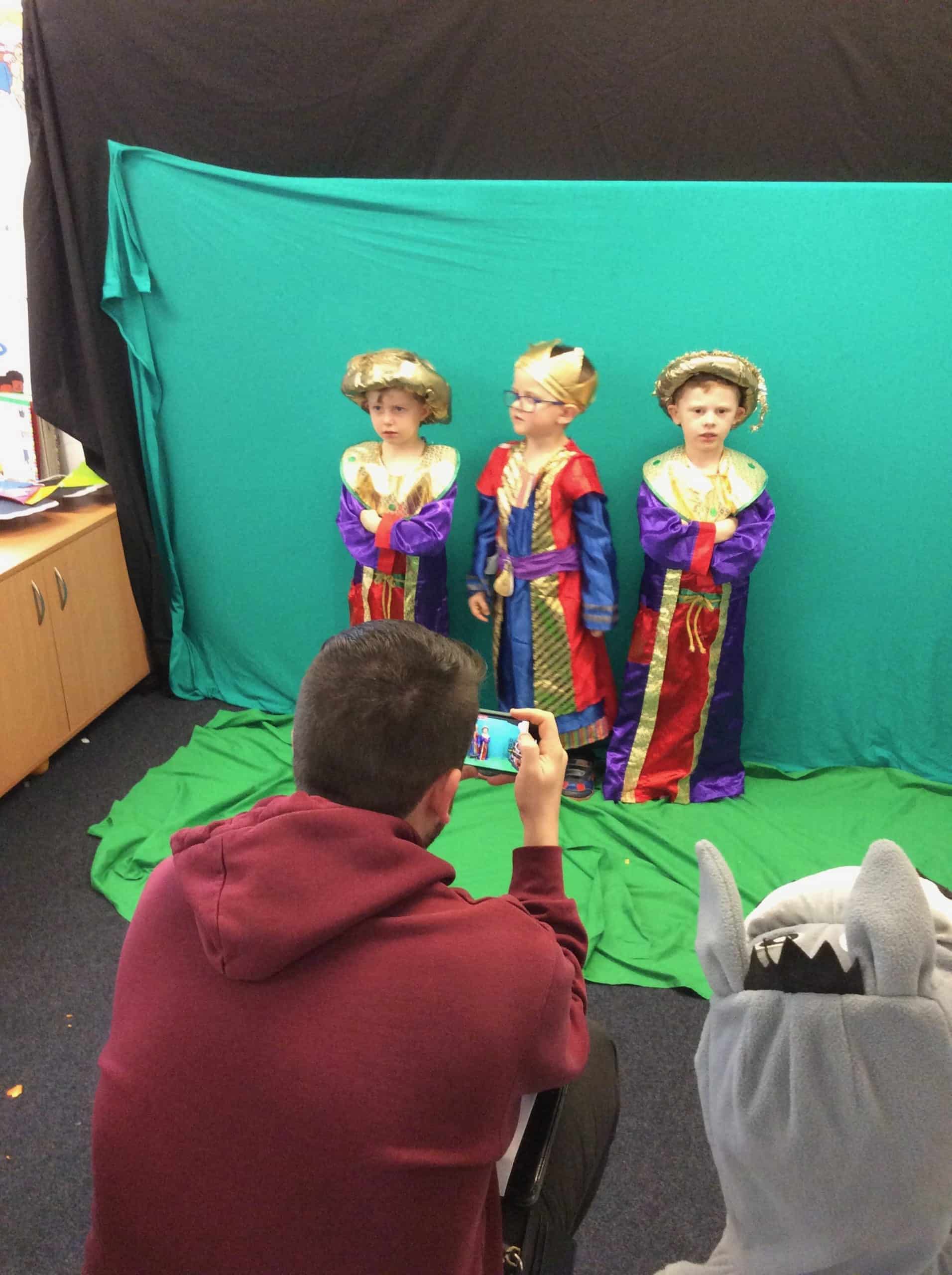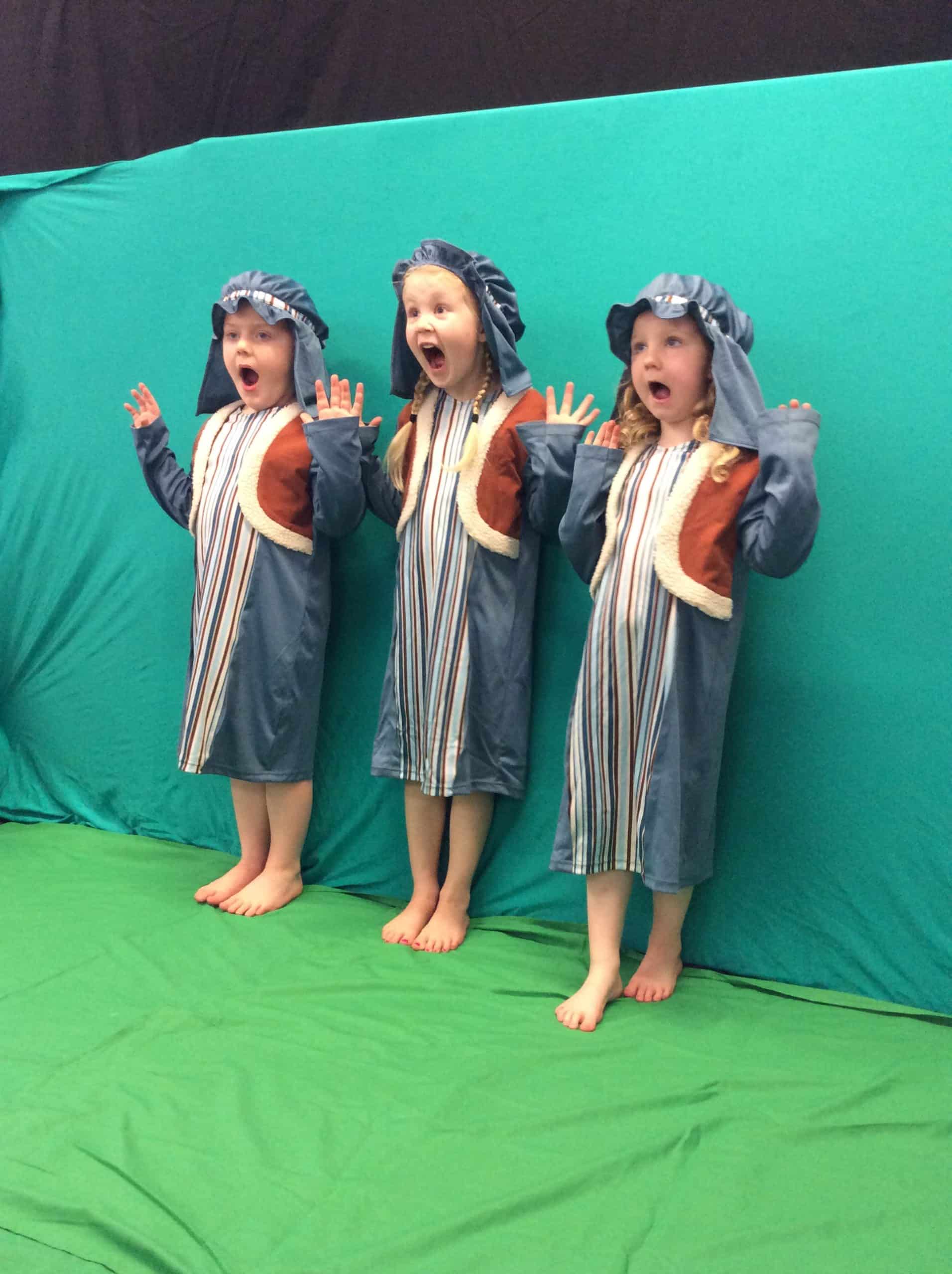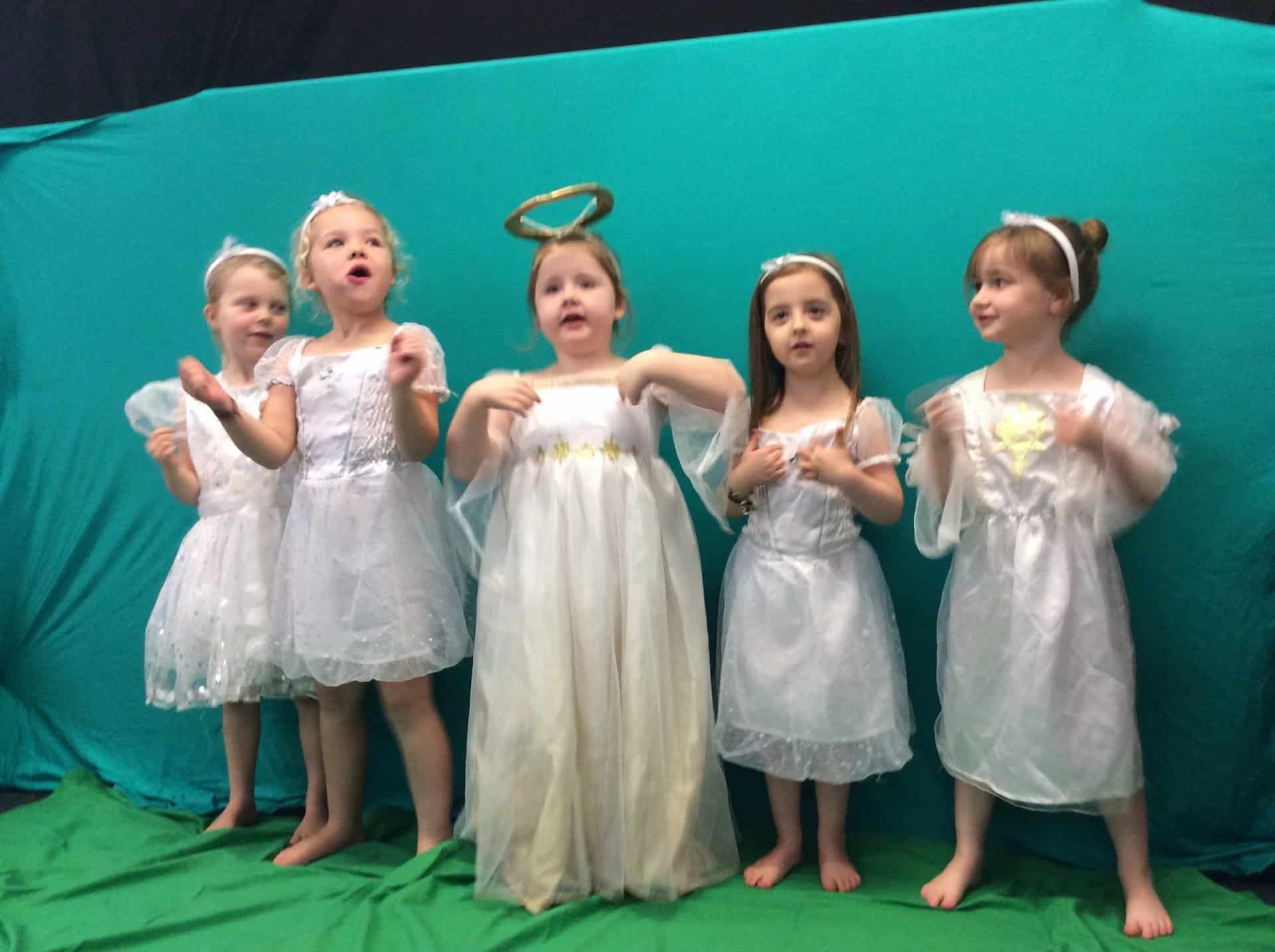 It is always a challenge to produce a Reception Class Nativity with 30 excited 4 and 5 year olds at Christmas time! Due to restrictions this year it has been an even bigger challenge. However we are so proud and impressed with our Reception Class. They have worked so hard learning songs and dances and their behaviour has been fantastic and because of this we have been able to create a Nativity play in a different way. At first we tried to film outside but soon realised angel costumes were not suitable for winter time in the North East! We moved into our classroom and created our acting studio in front of a green screen. We filmed all of the scenes in class where the children showed so much patience having to sit quietly while we filmed the different scenes. Mr Graham filmed us both acting and speaking and we are so grateful to his patience and the many hours he has spent putting together our video which will be released next week. As you can imagine we have had lots of fun and laughter – there are many out takes! We hope you enjoy the finished video and we hope it helps you to remember why we celebrate Christmas. It certainly has made us smile. Best Wishes and Merry Christmas from all of us in Reception Class