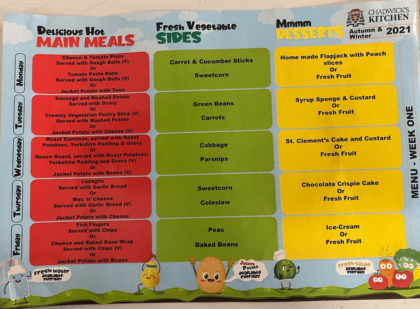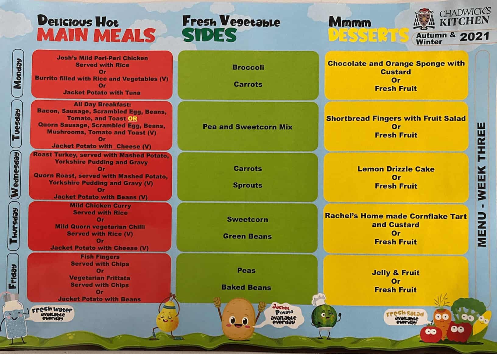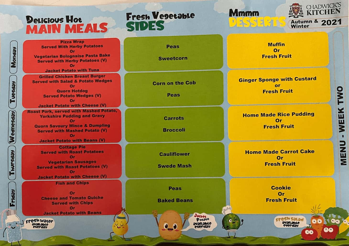 Have a look at the selection of delicious hot food available every day in school. The menus run on a three weekly rota and have a huge selection for even the fussiest eaters.