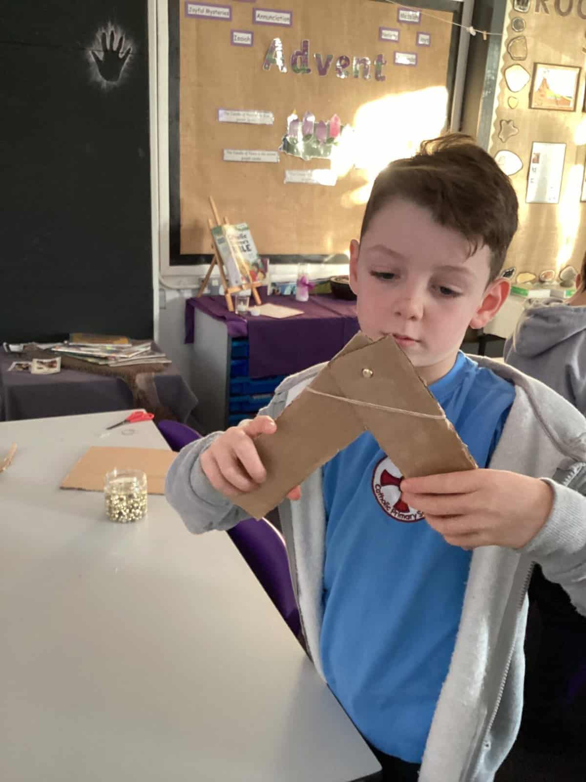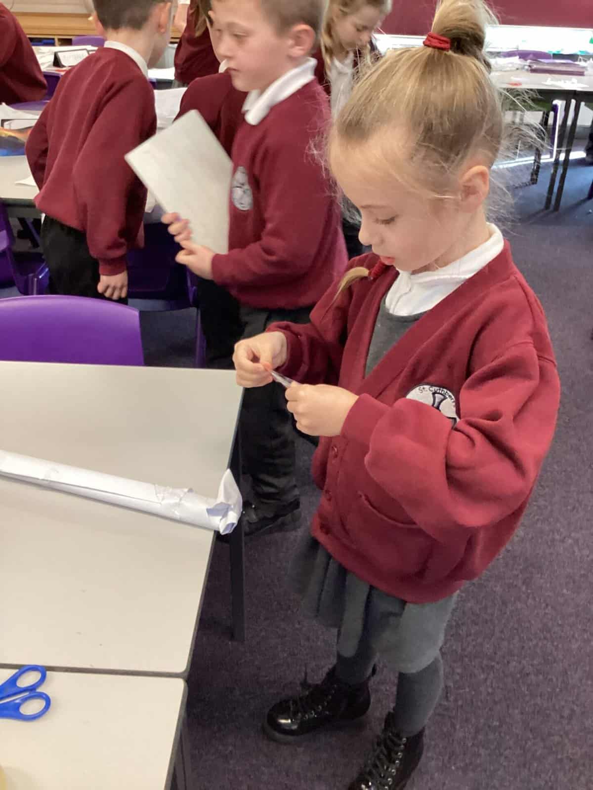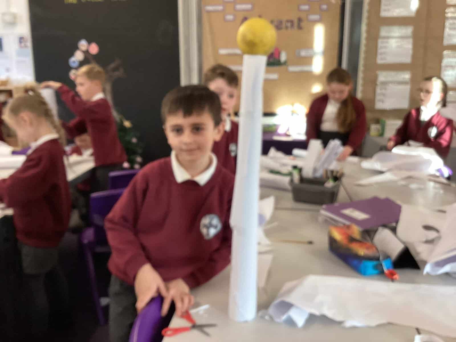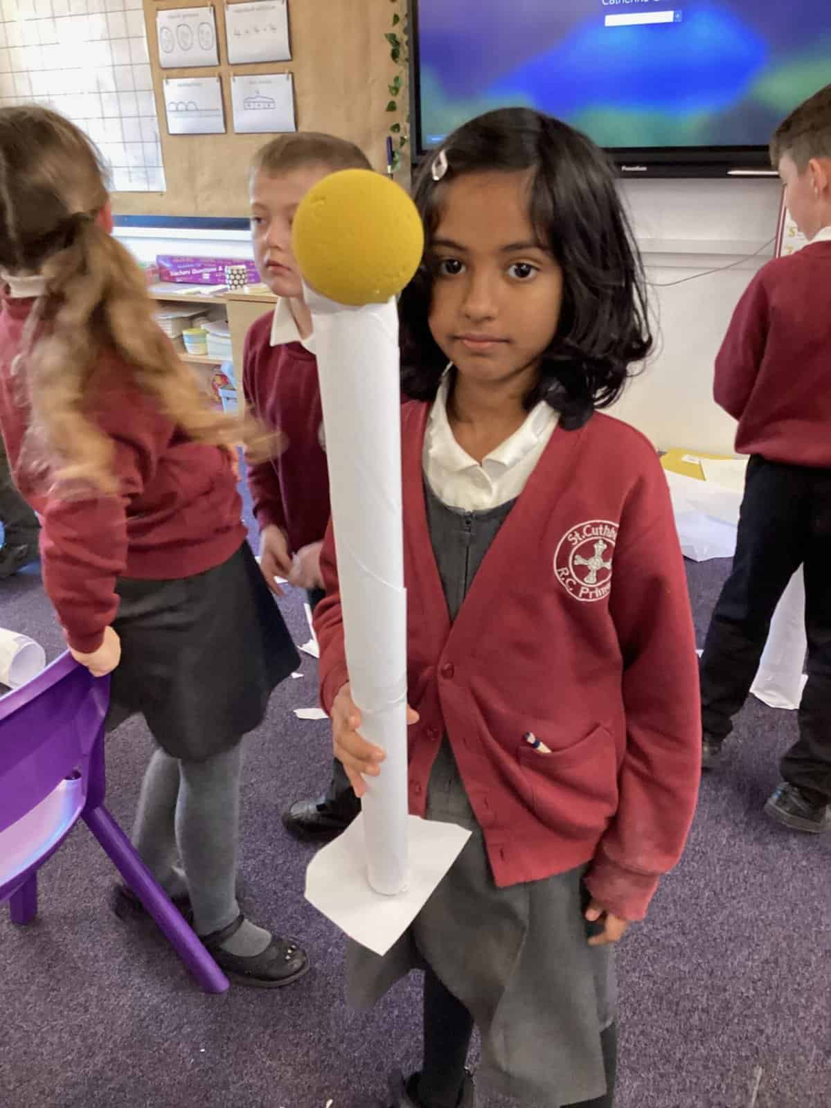In Science we have been looking at the importance of our skeleton and muscles. We were set two tasks. One was to create a working model showing how the muscles in our arms work. The second one was to show how strong the bones in our legs are by creating a structure that would stand and hold a weight on top.