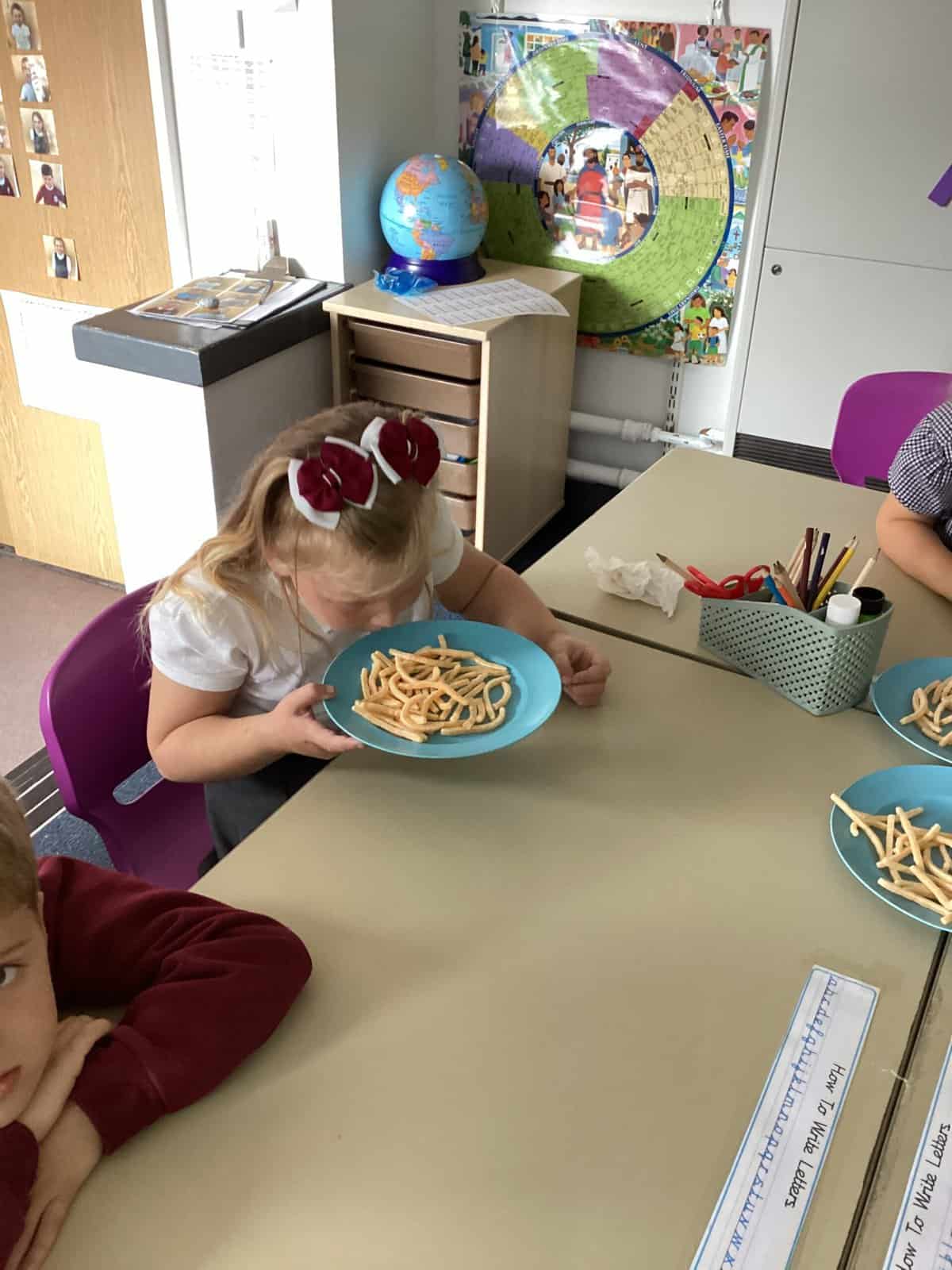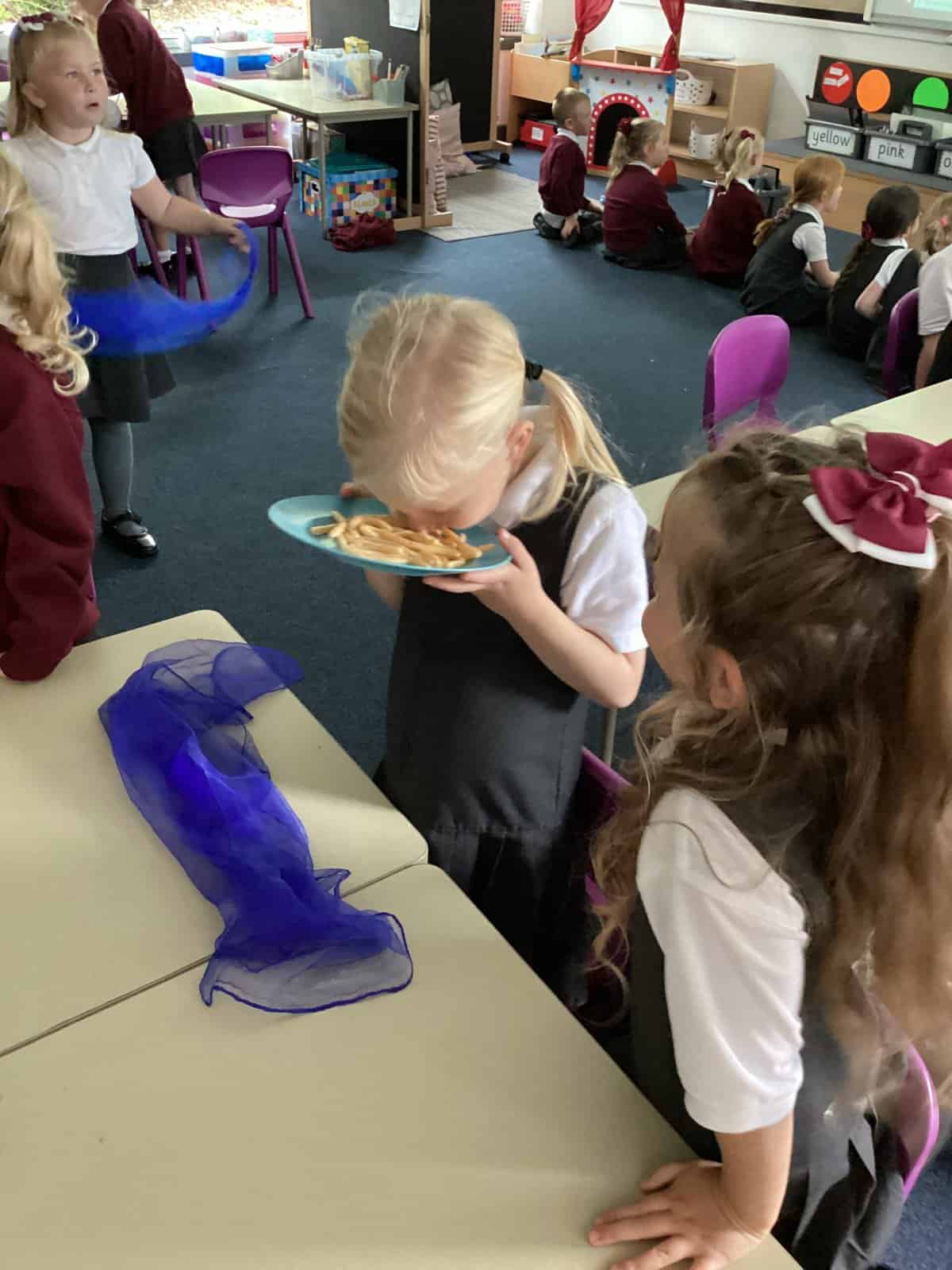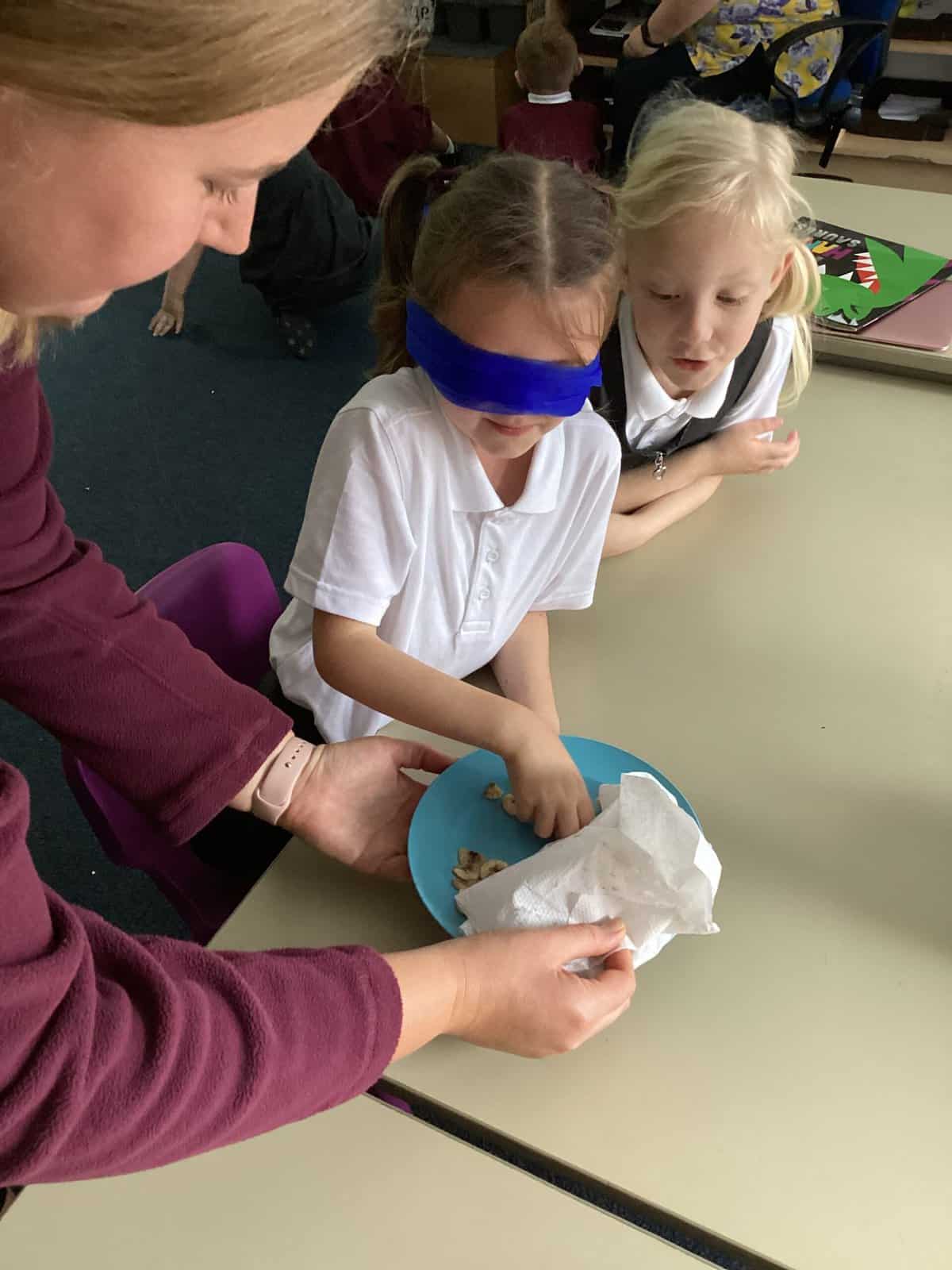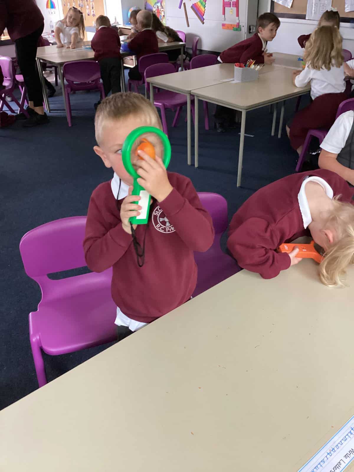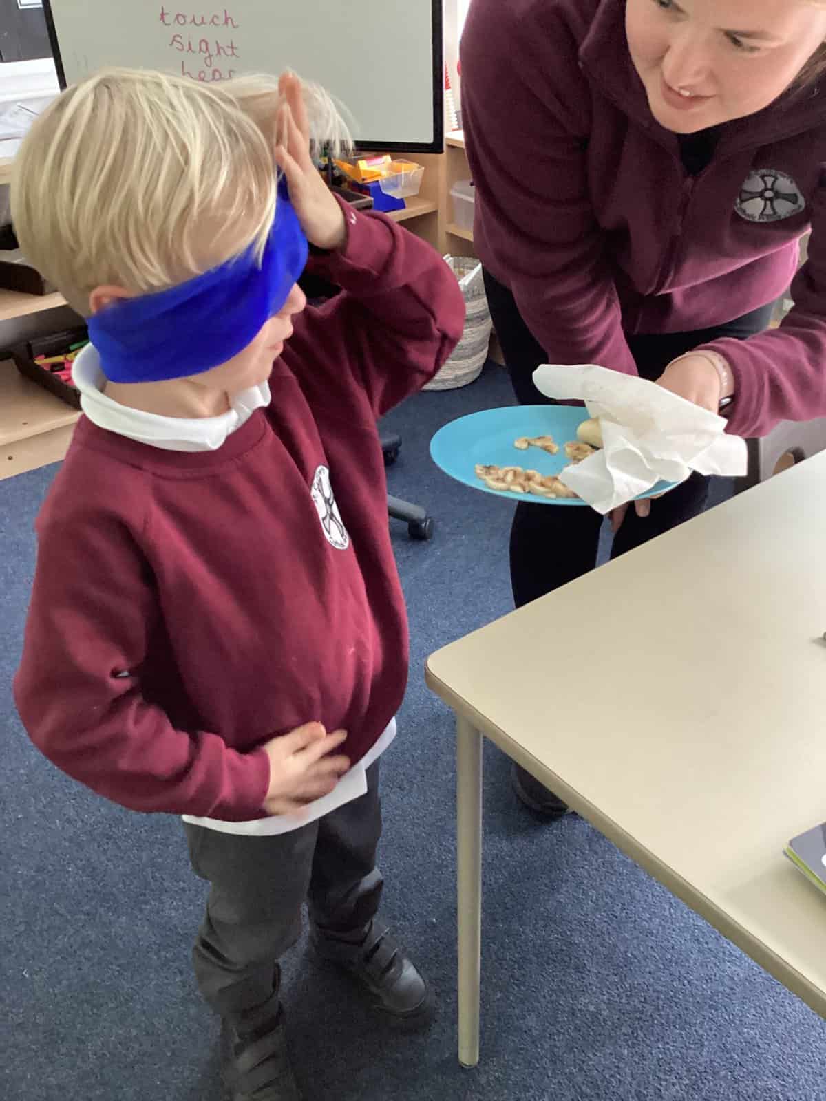 In Year 1, we have been learning all about the human body. We have been exploring our five different senses. We had a carousel of activities, each one using a different sense. We identified the flavour of crisps by smelling them, felt objects in a feely bag, listened to sound through the computer, used magnifying glasses to look at objects and identified an object through taste.