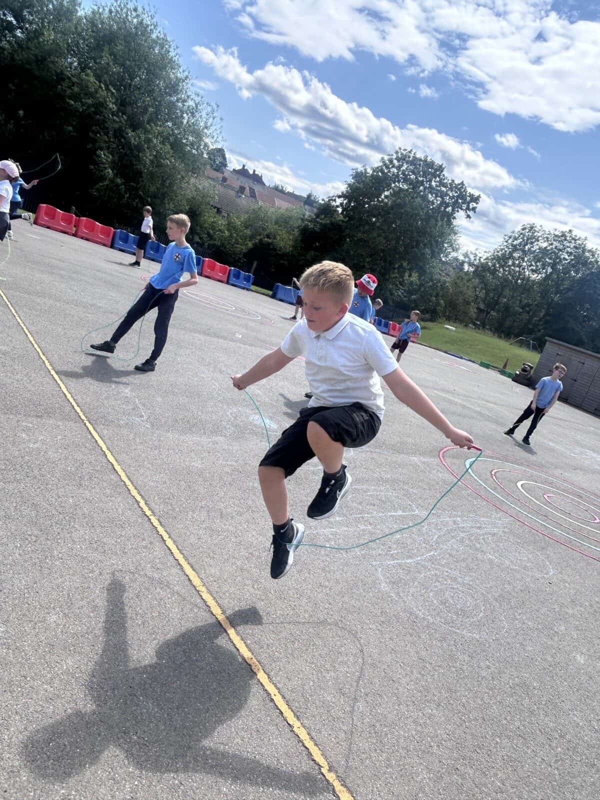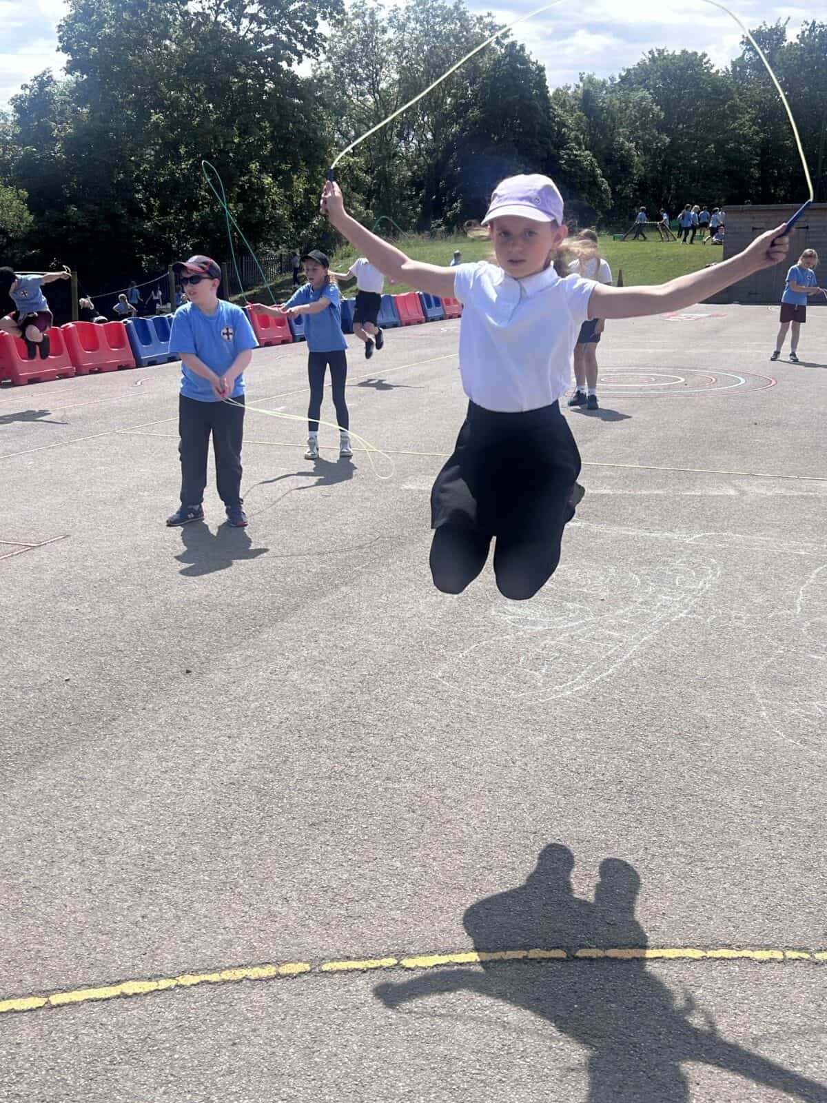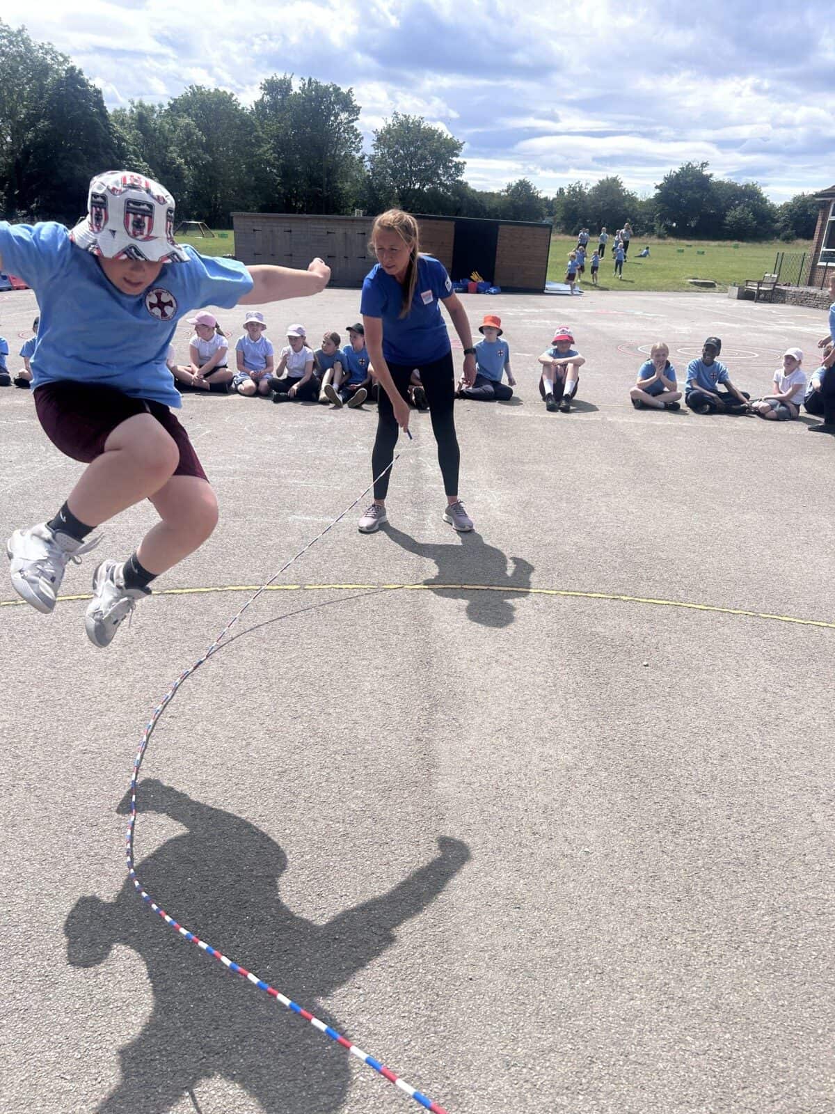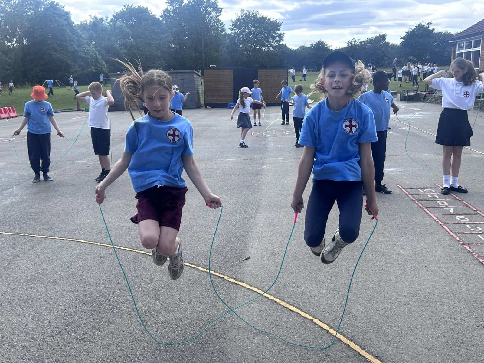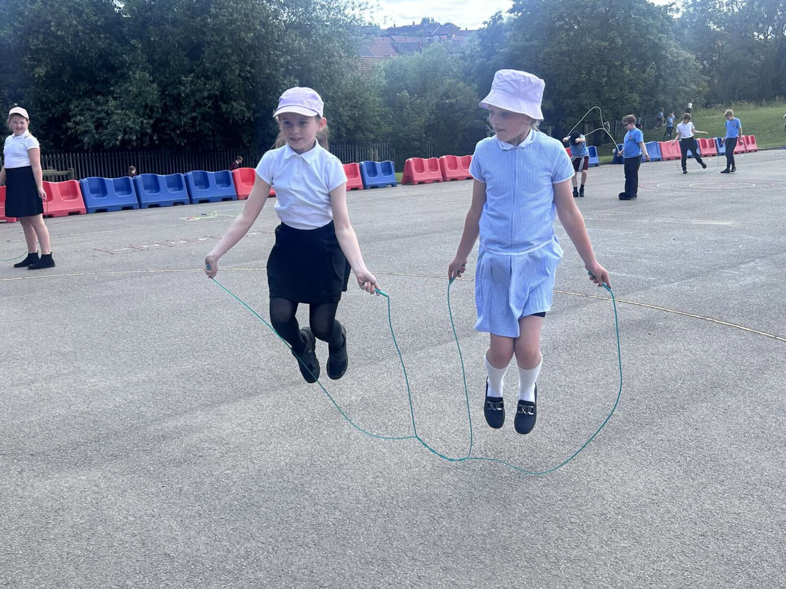 The sun shone for today’s skipping session with Gail. The children upped their game from last year, trying brand new, more difficult skills. Working together in pairs, the children created a butterfly with the skips before jumping the big rope with Miss Scarr and Gail.