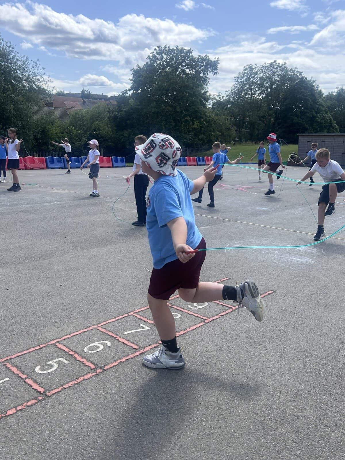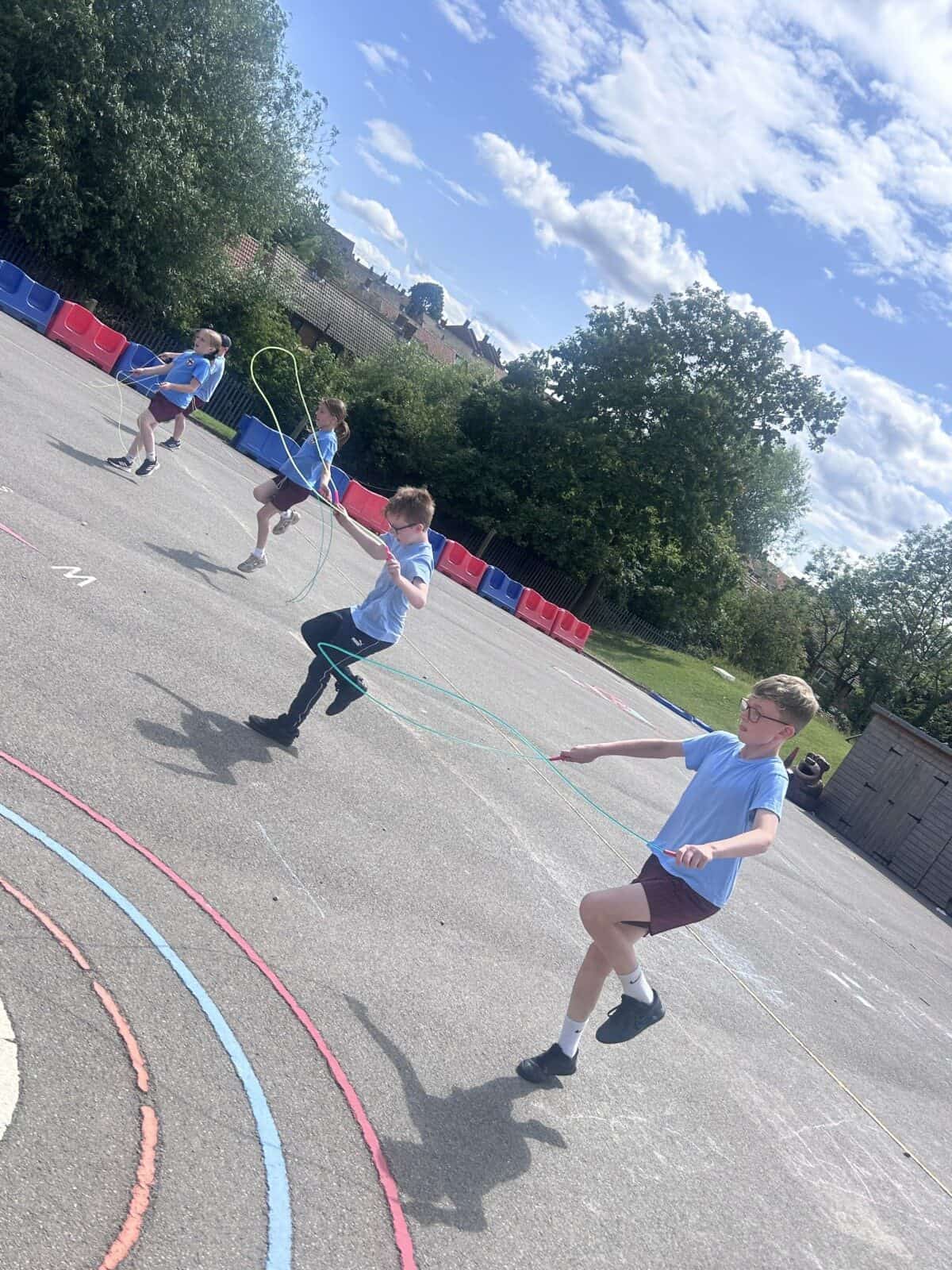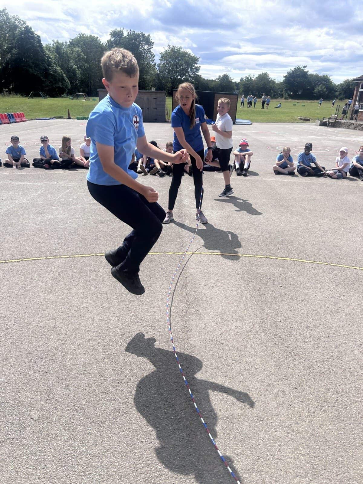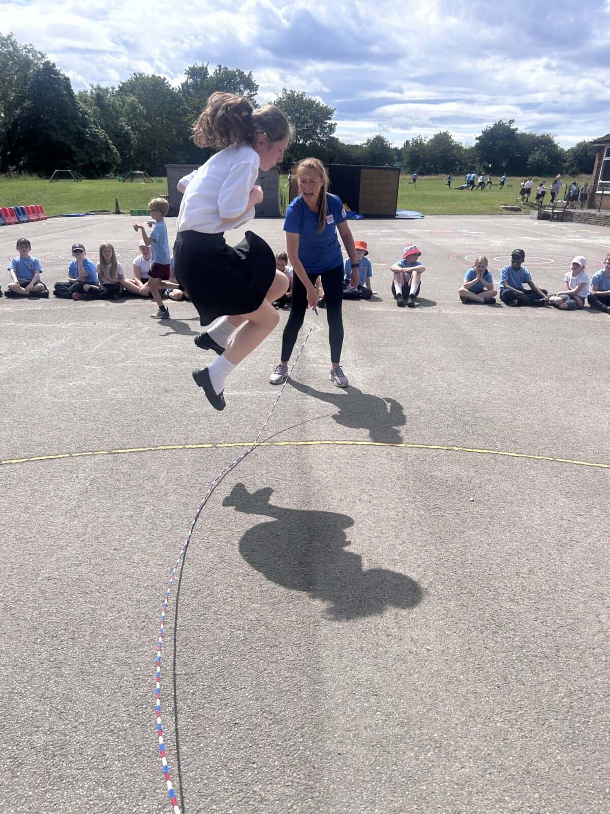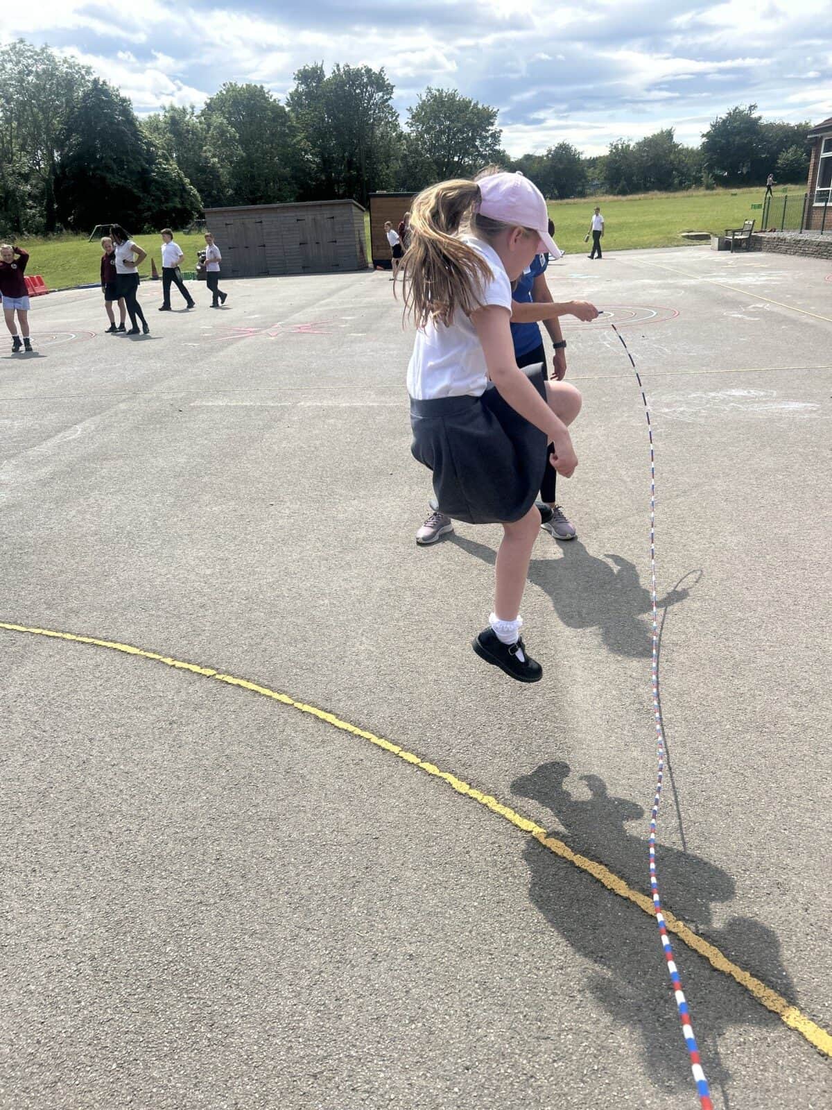 The sun shone for today’s skipping session with Gail. The children upped their game from last year, trying brand new, more difficult skills. Working together in pairs, the children created a butterfly with the skips before jumping the big rope with Miss Scarr and Gail.