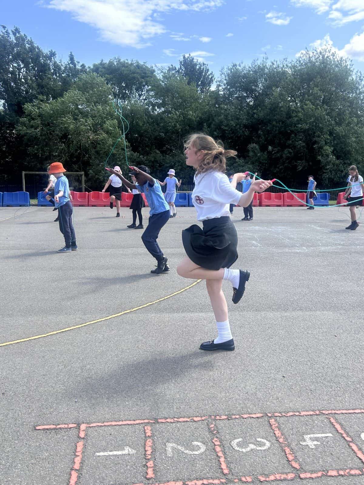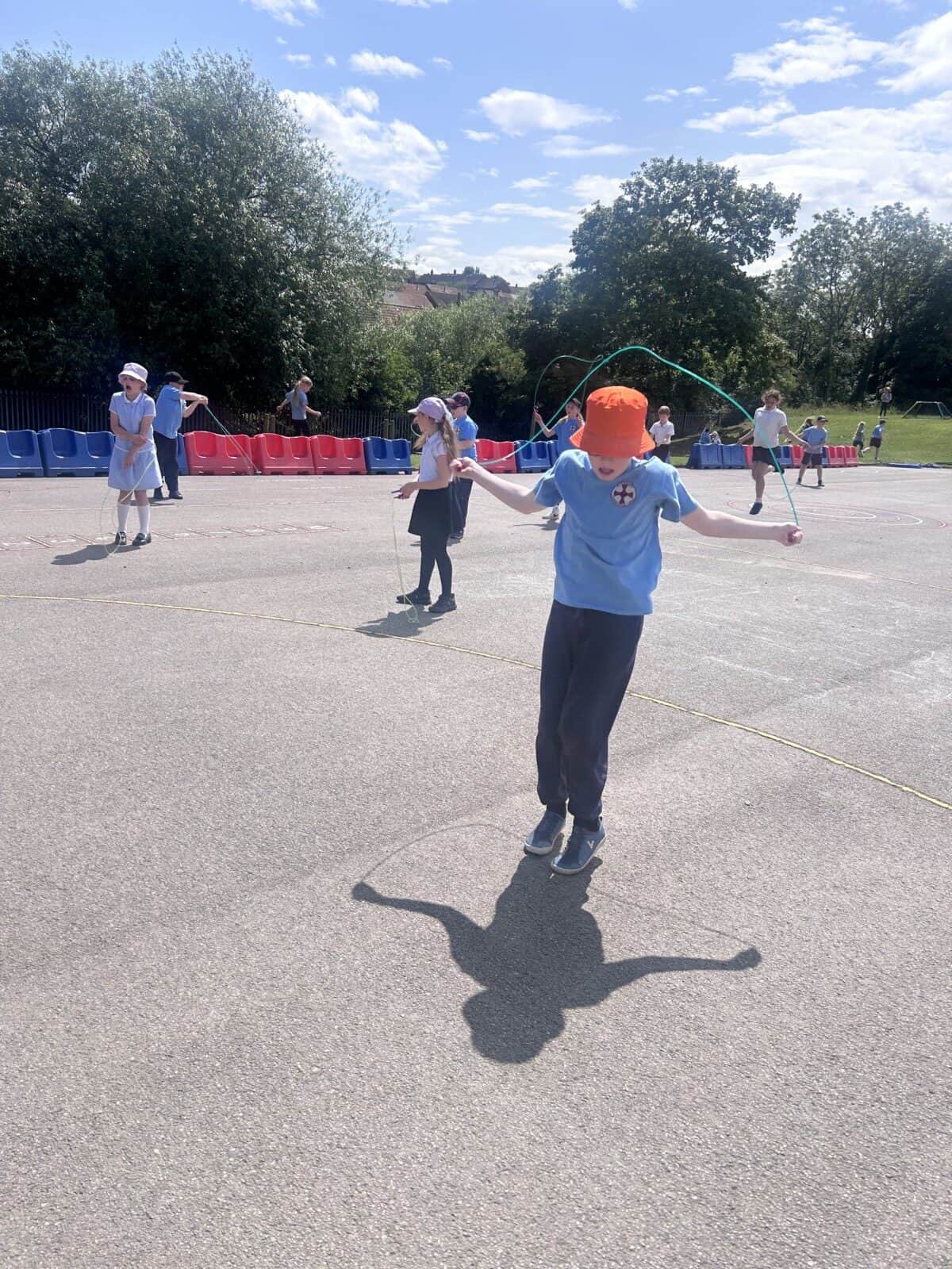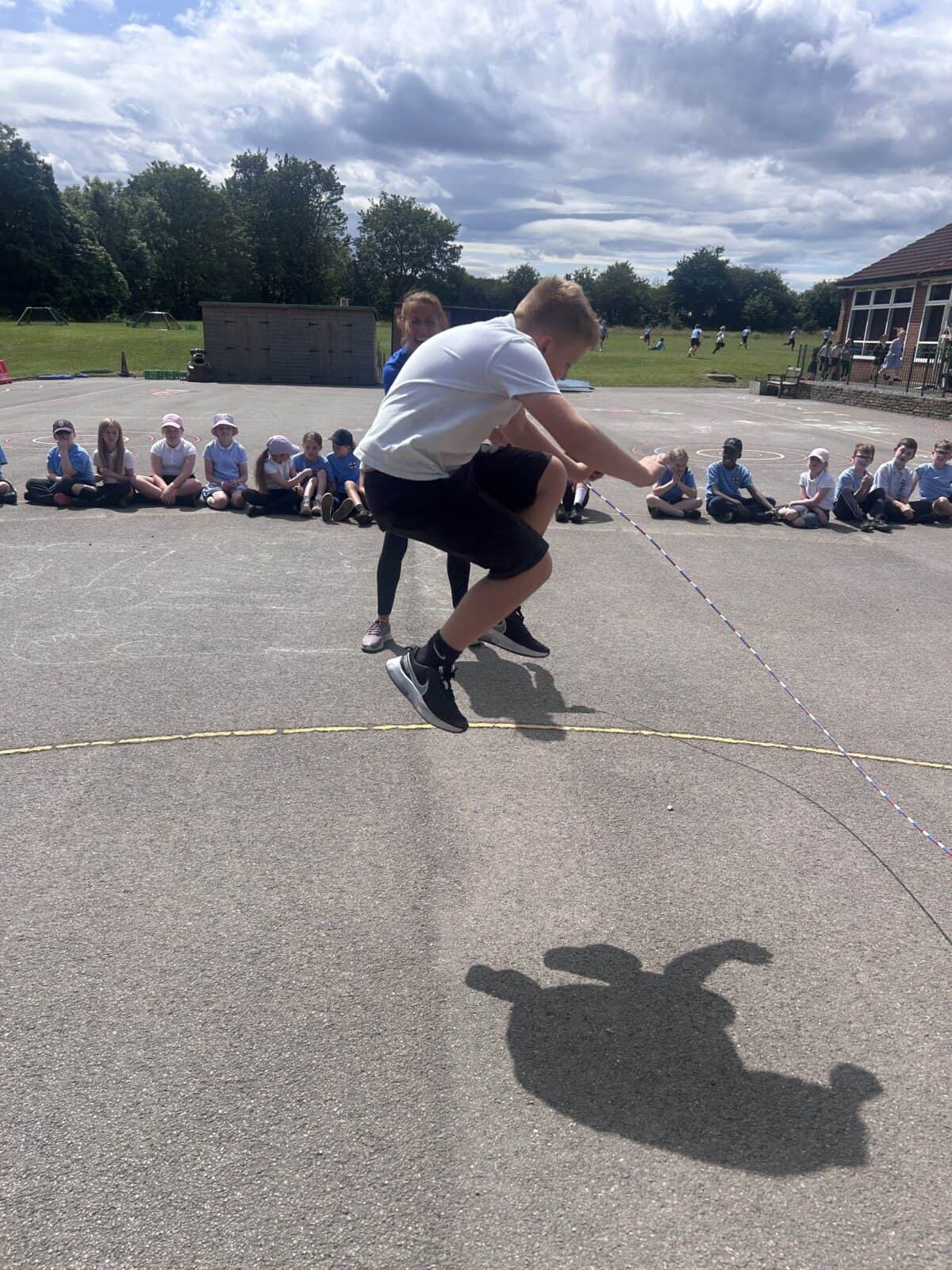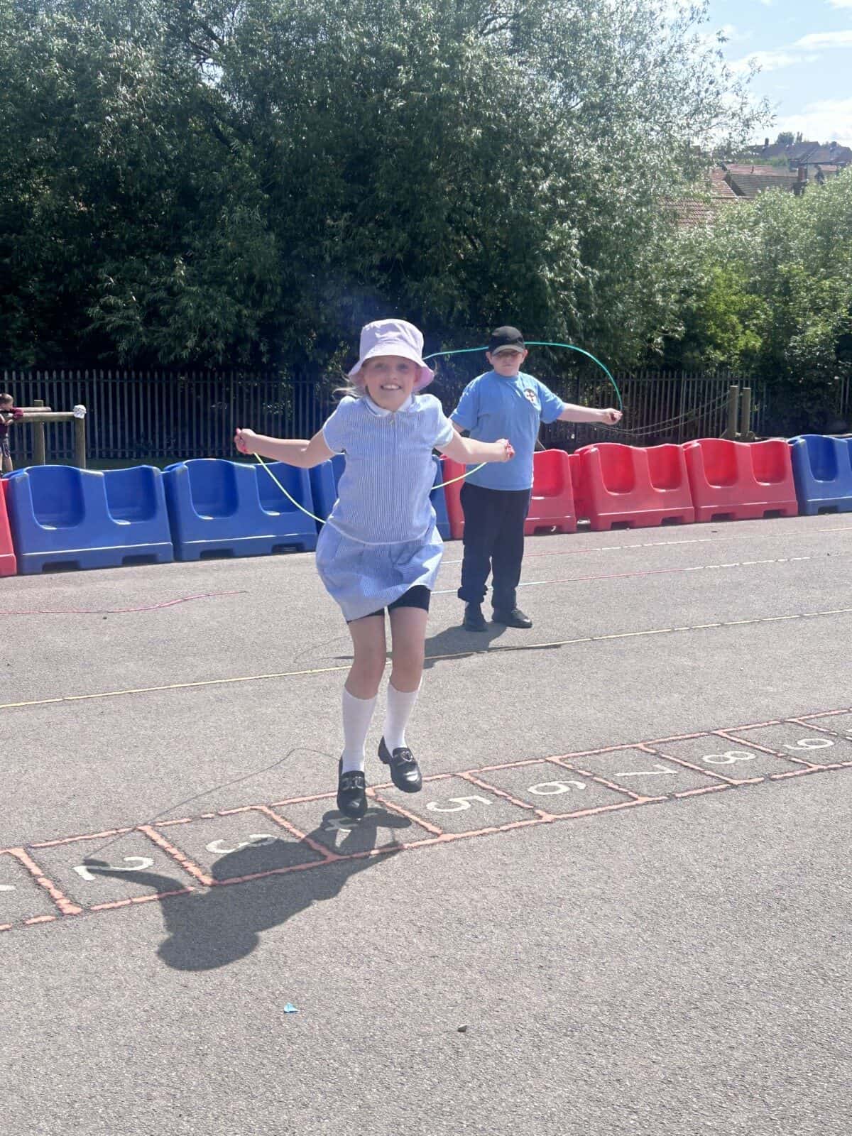The sun shone for today’s skipping session with Gail. The children upped their game from last year, trying brand new, more difficult skills. Working together in pairs, the children created a butterfly with the skips before jumping the big rope with Miss Scarr and Gail.