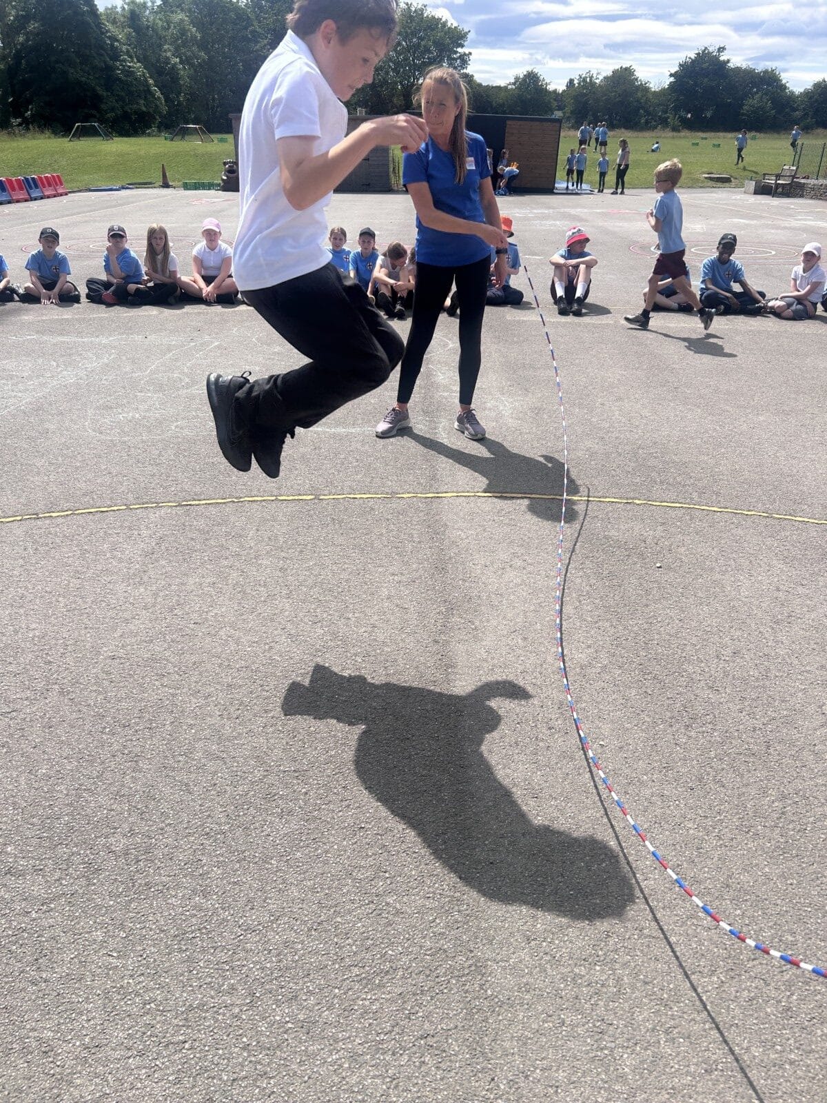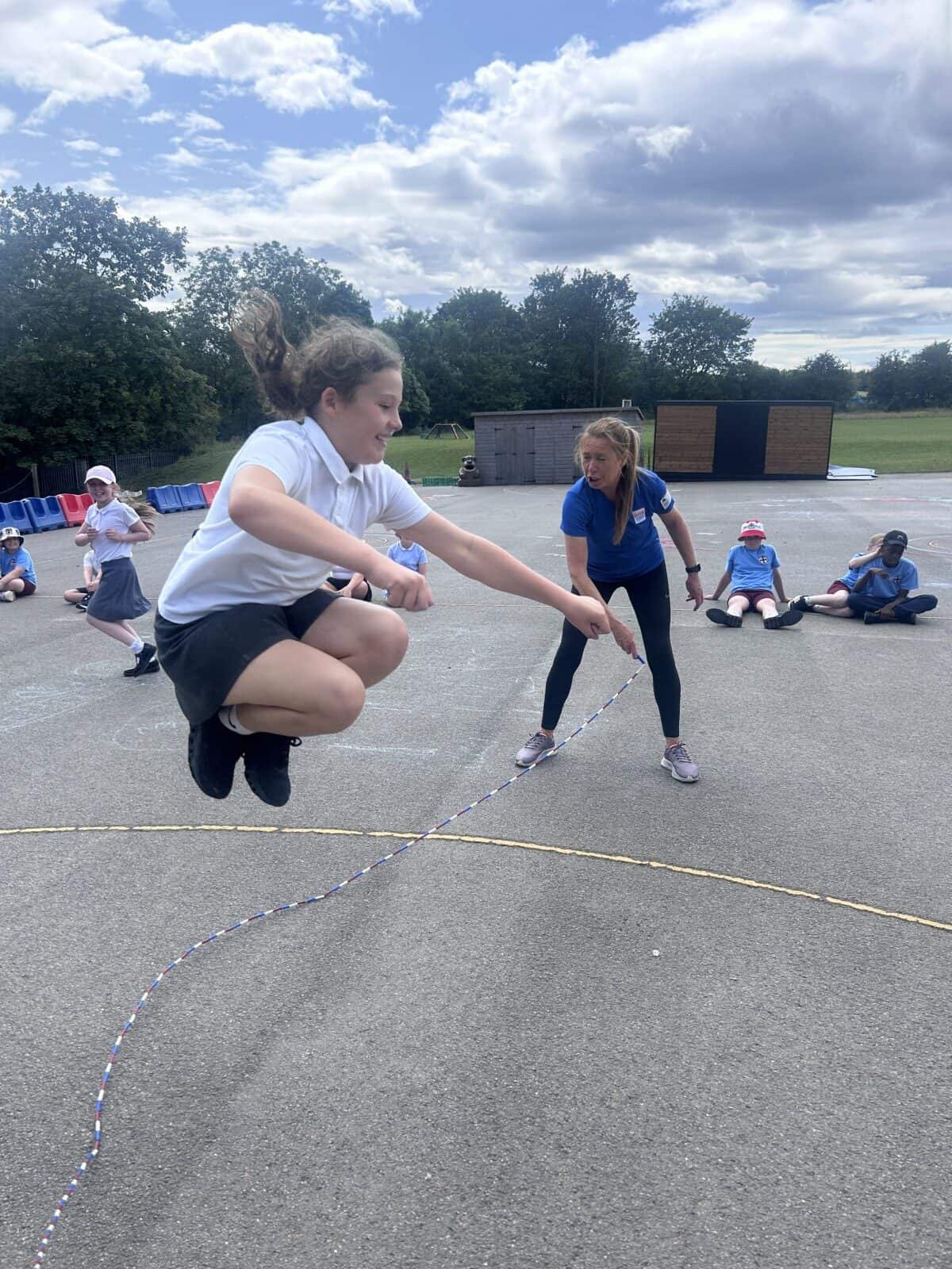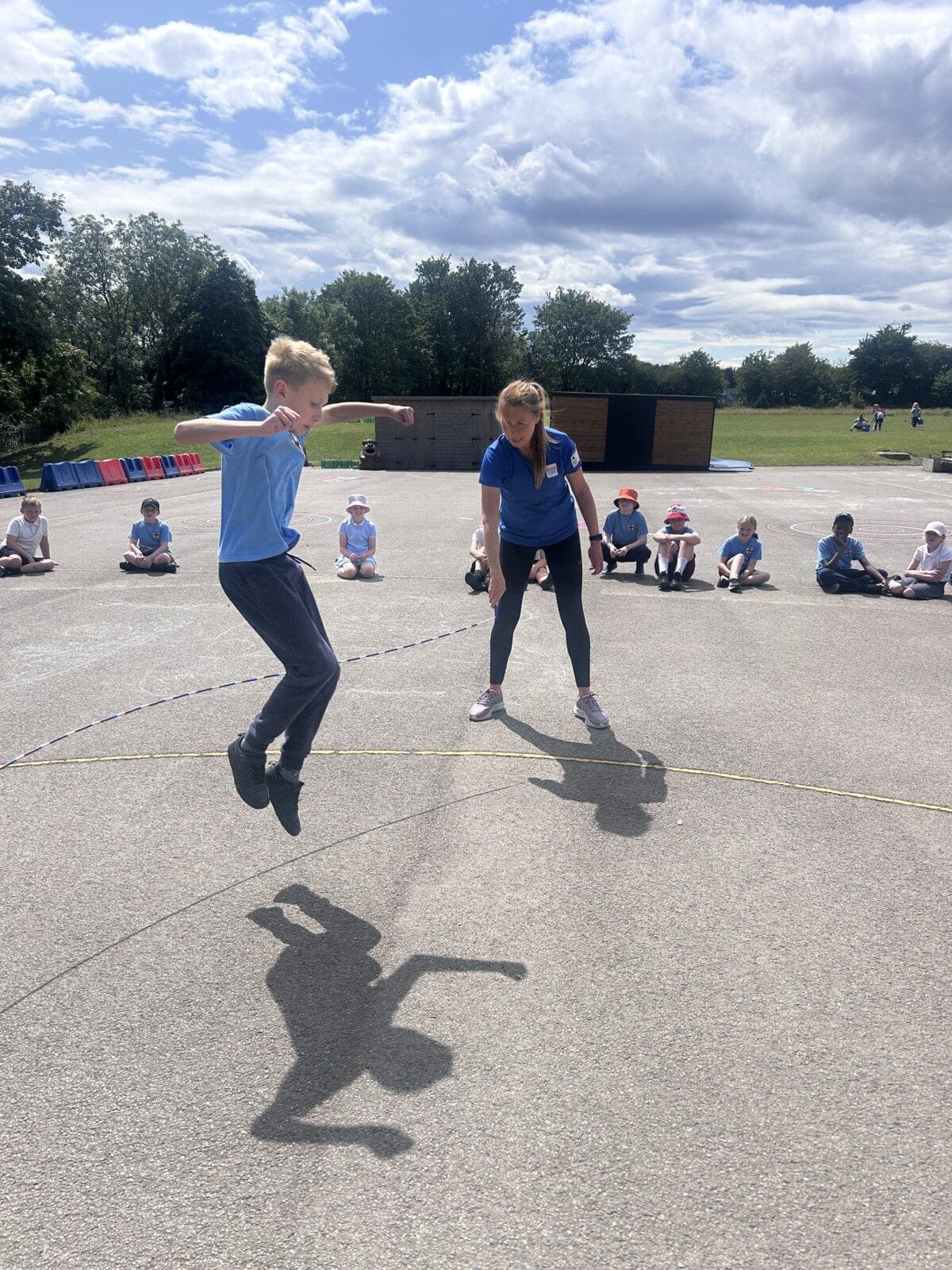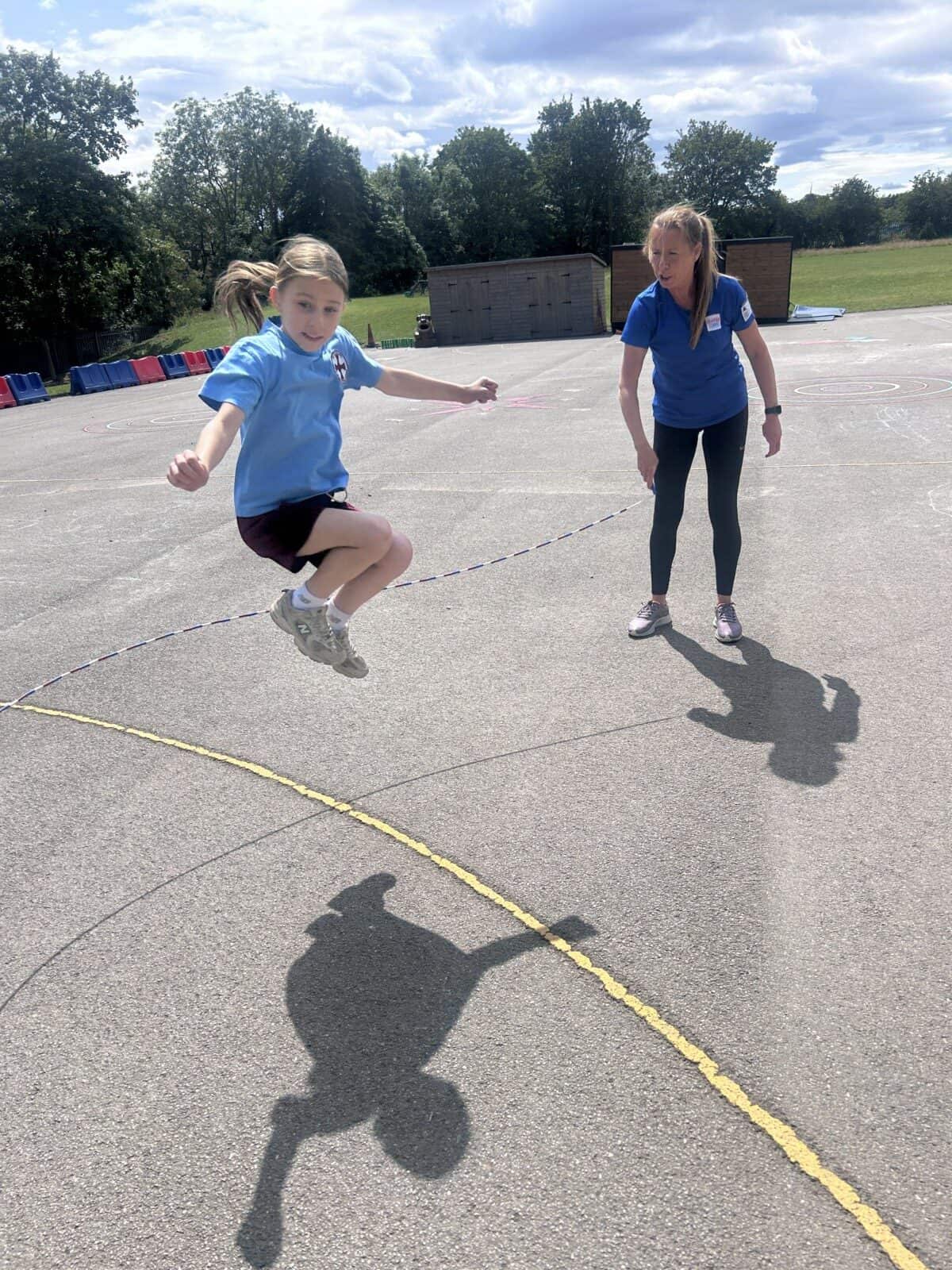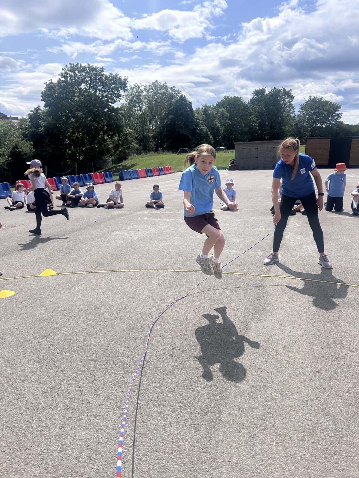 The sun shone for today’s skipping session with Gail. The children upped their game from last year, trying brand new, more difficult skills. Working together in pairs, the children created a butterfly with the skips before jumping the big rope with Miss Scarr and Gail.