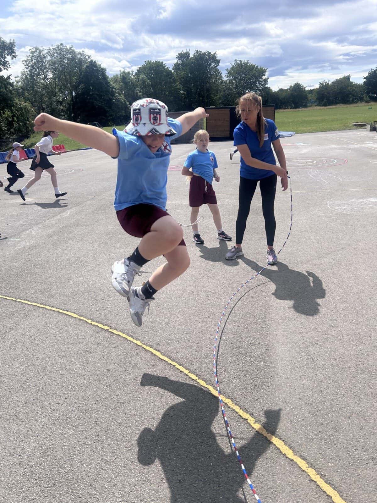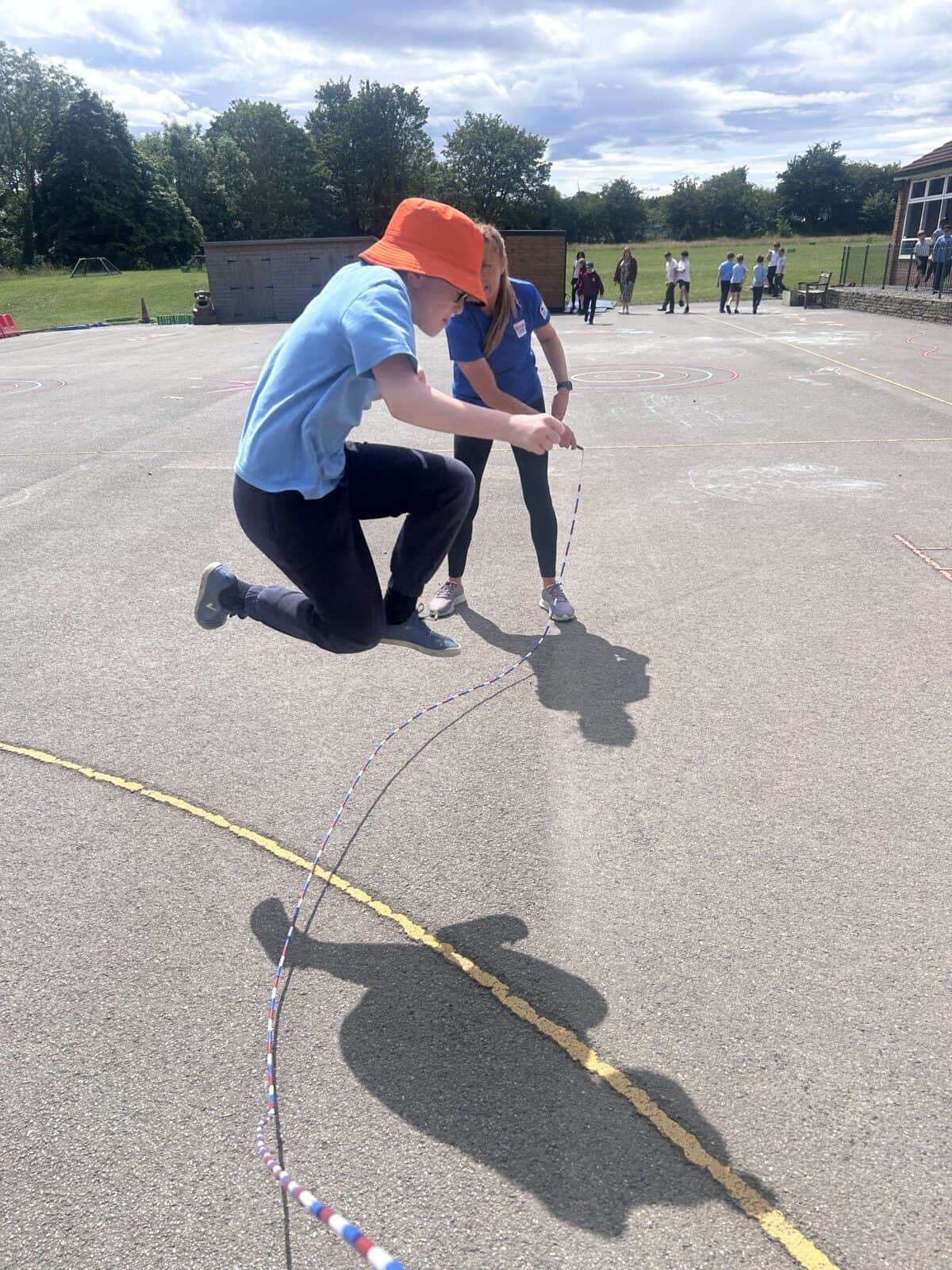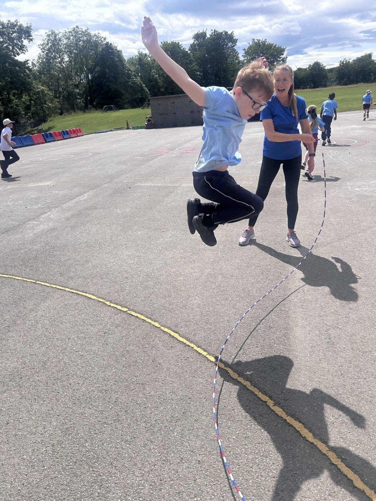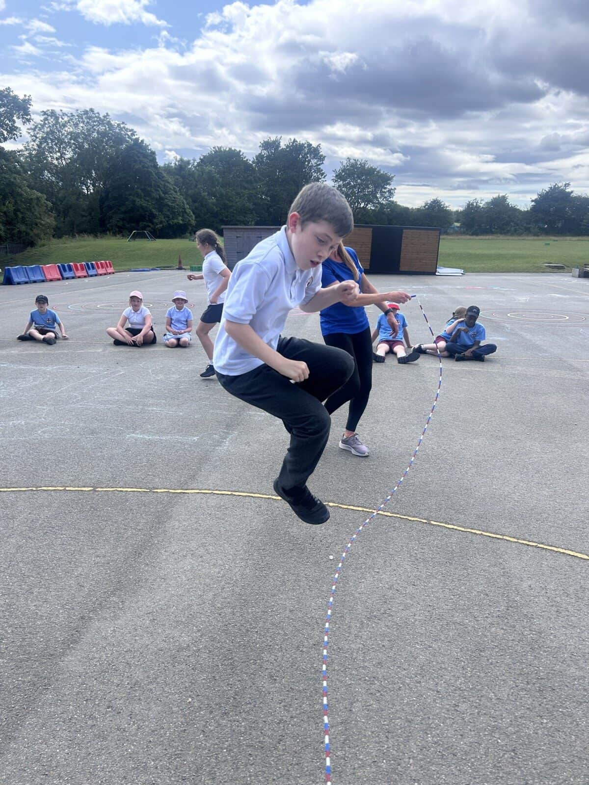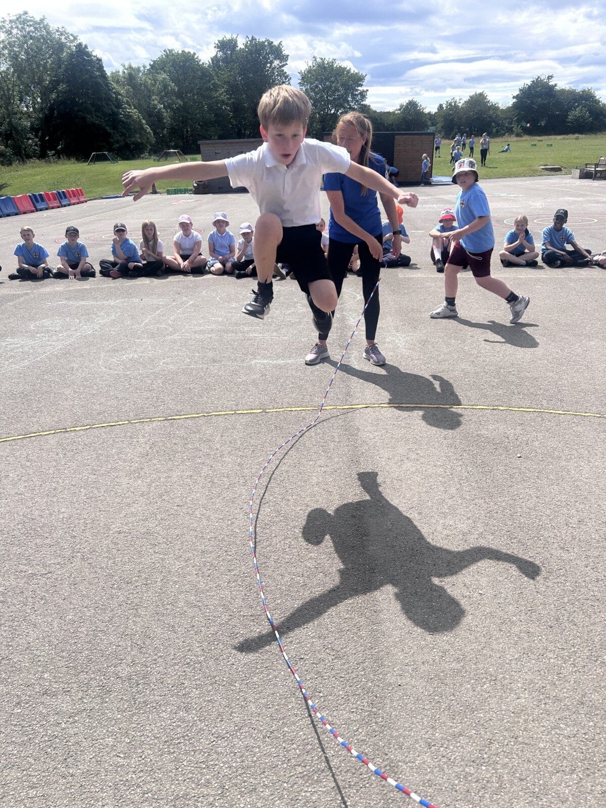 The sun shone for today’s skipping session with Gail. The children upped their game from last year, trying brand new, more difficult skills. Working together in pairs, the children created a butterfly with the skips before jumping the big rope with Miss Scarr and Gail.