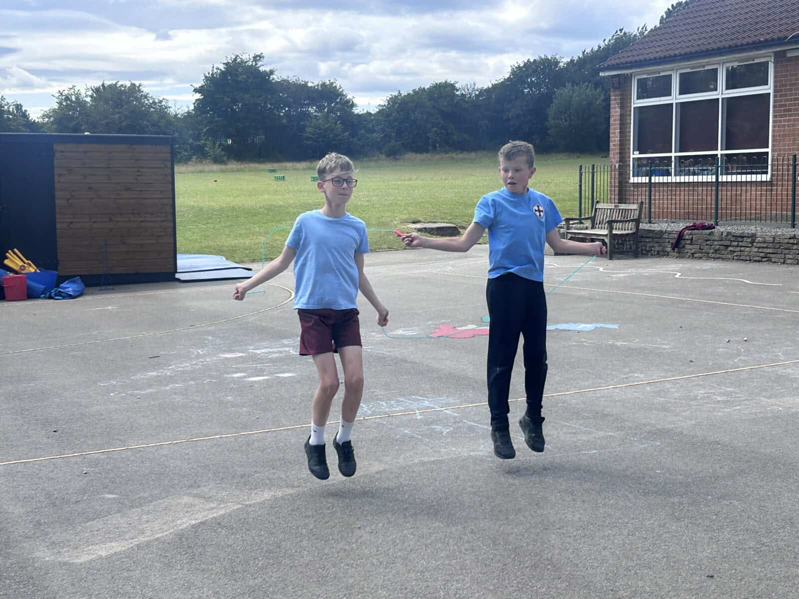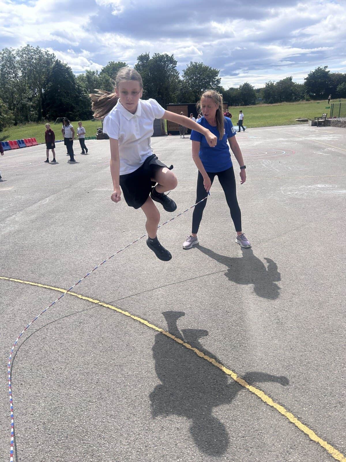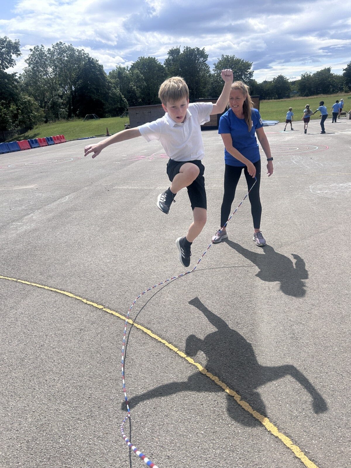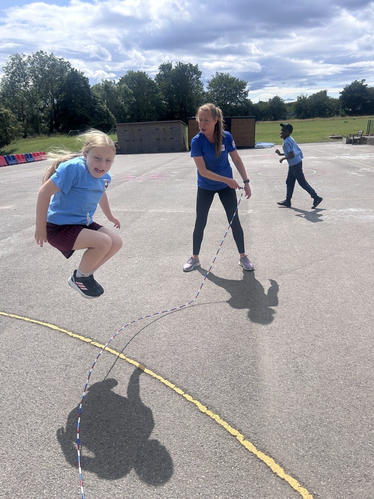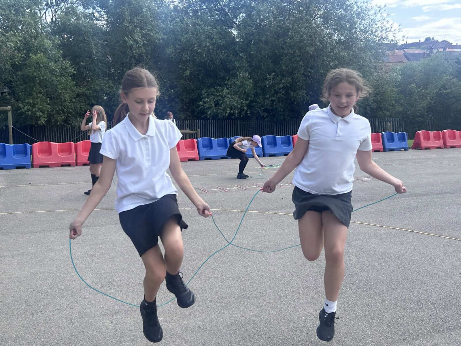 The sun shone for today’s skipping session with Gail. The children upped their game from last year, trying brand new, more difficult skills. Working together in pairs, the children created a butterfly with the skips before jumping the big rope with Miss Scarr and Gail.