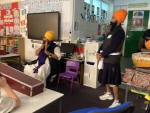 We had some special visitors came into class on Friday. They came to tell us all about their lifestyle. They showed us some artefacts including some instruments which they played for us. We were then given an opportunity to have a go ourselves. Some of us even got a chance to wear a turbin. It was so interesting to find out how a comb is kept inside the turbin. Thank you so much for coming into class and sharing your experiences and teaching us about your lifestyle.