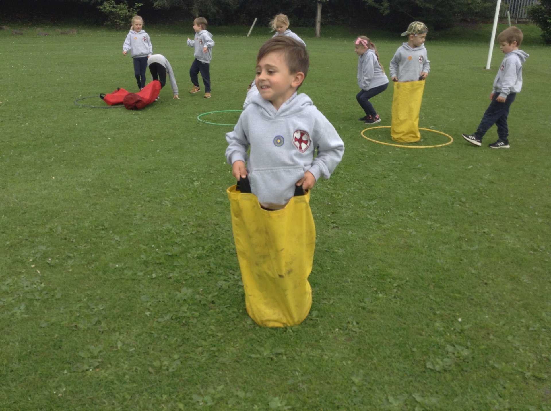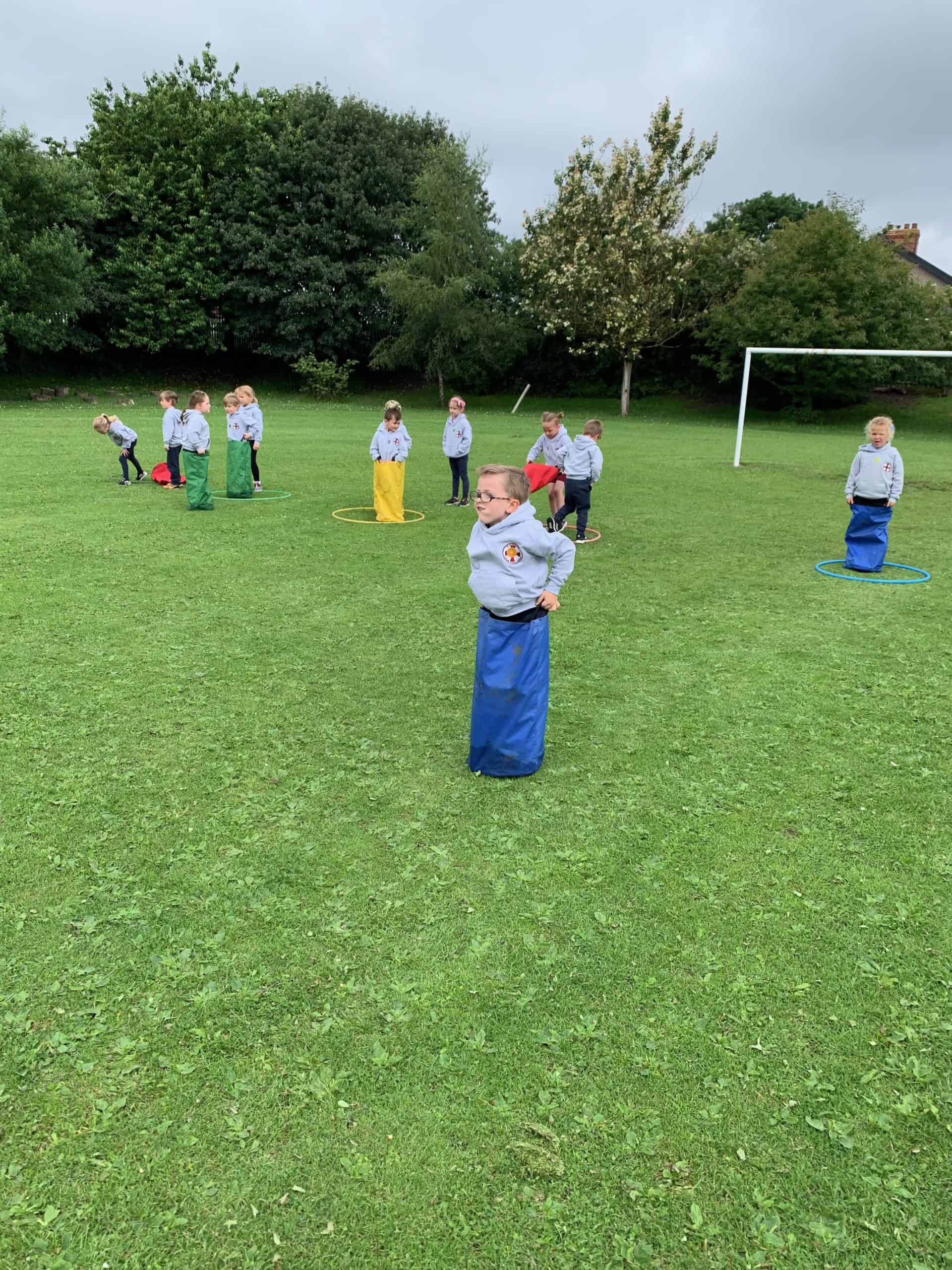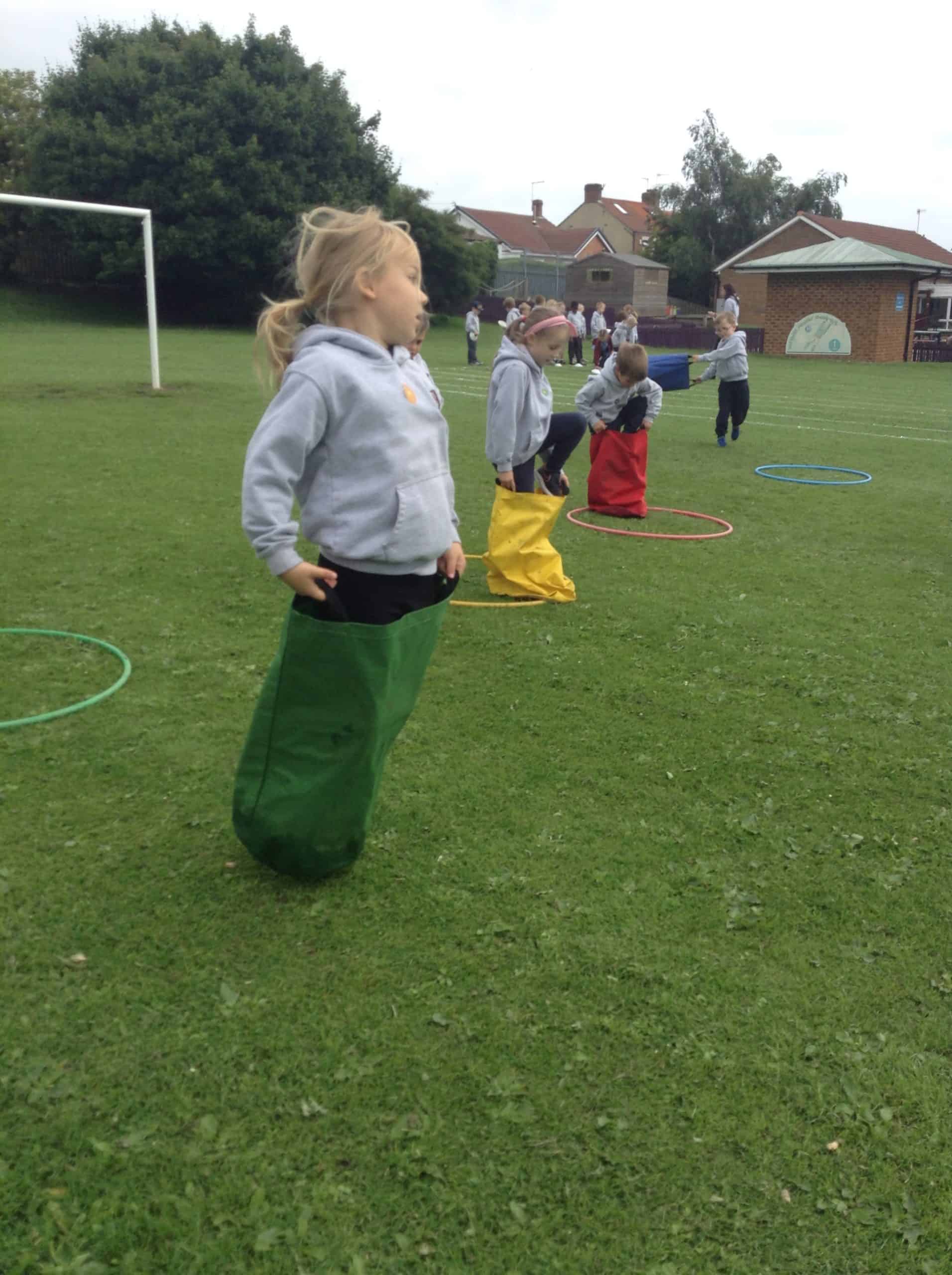 Today Reception Class were showing us what good athletes they were. They took part in an egg and spoon race, sack race, throwing the bean bag and jumping as far as they could. They then used the running track to show how fast they could run. I was so impressed to see how everyone tried their best. Well done Reception Class.