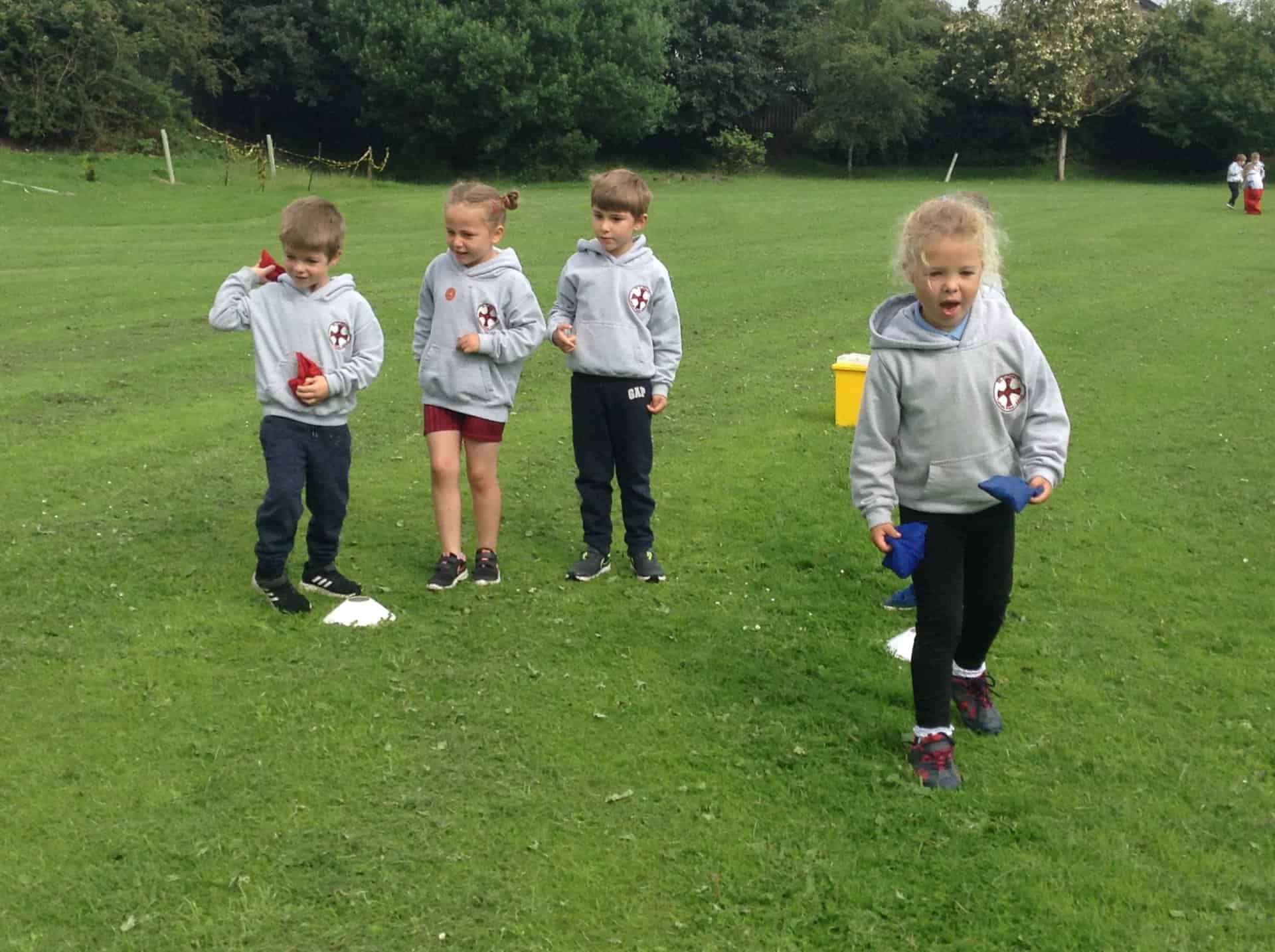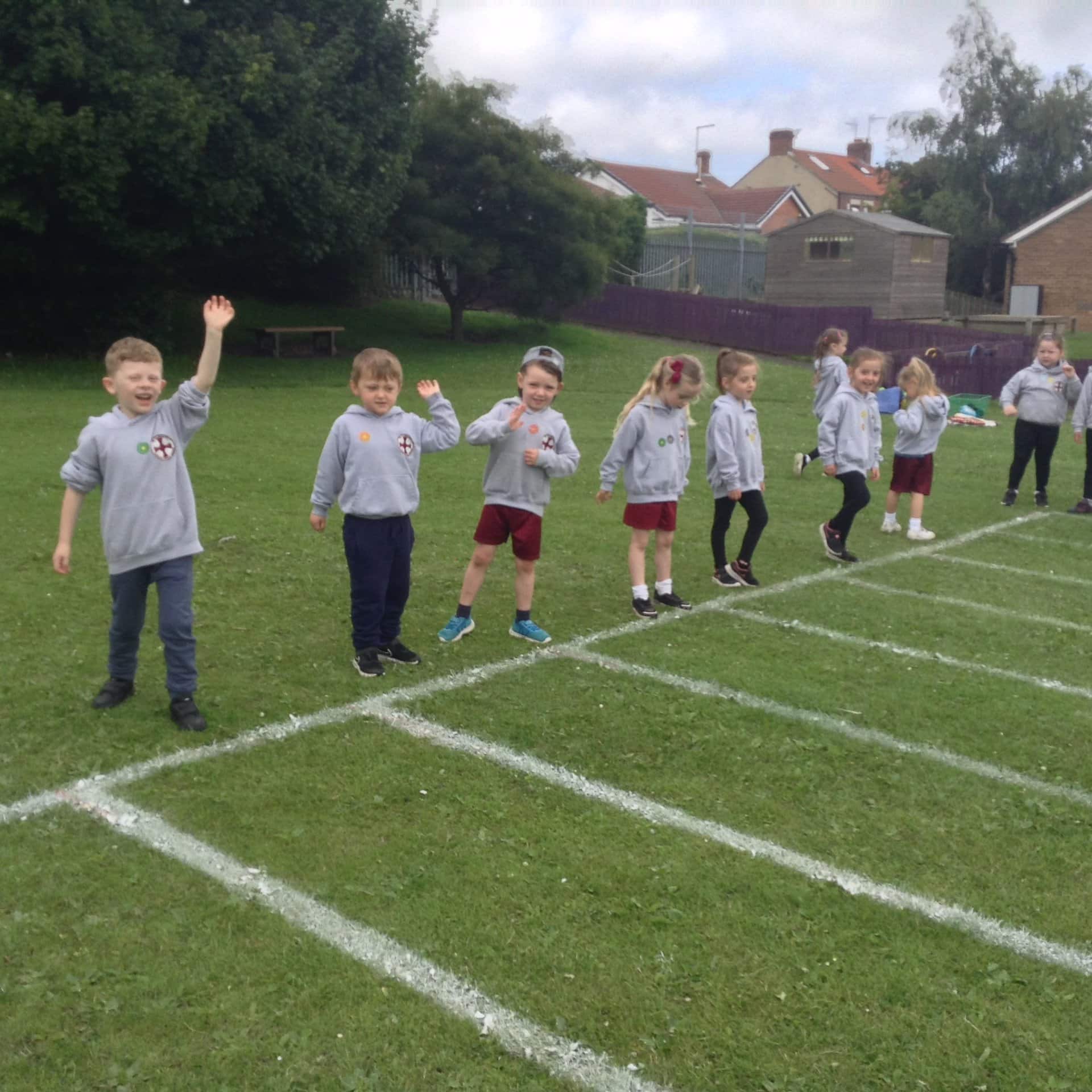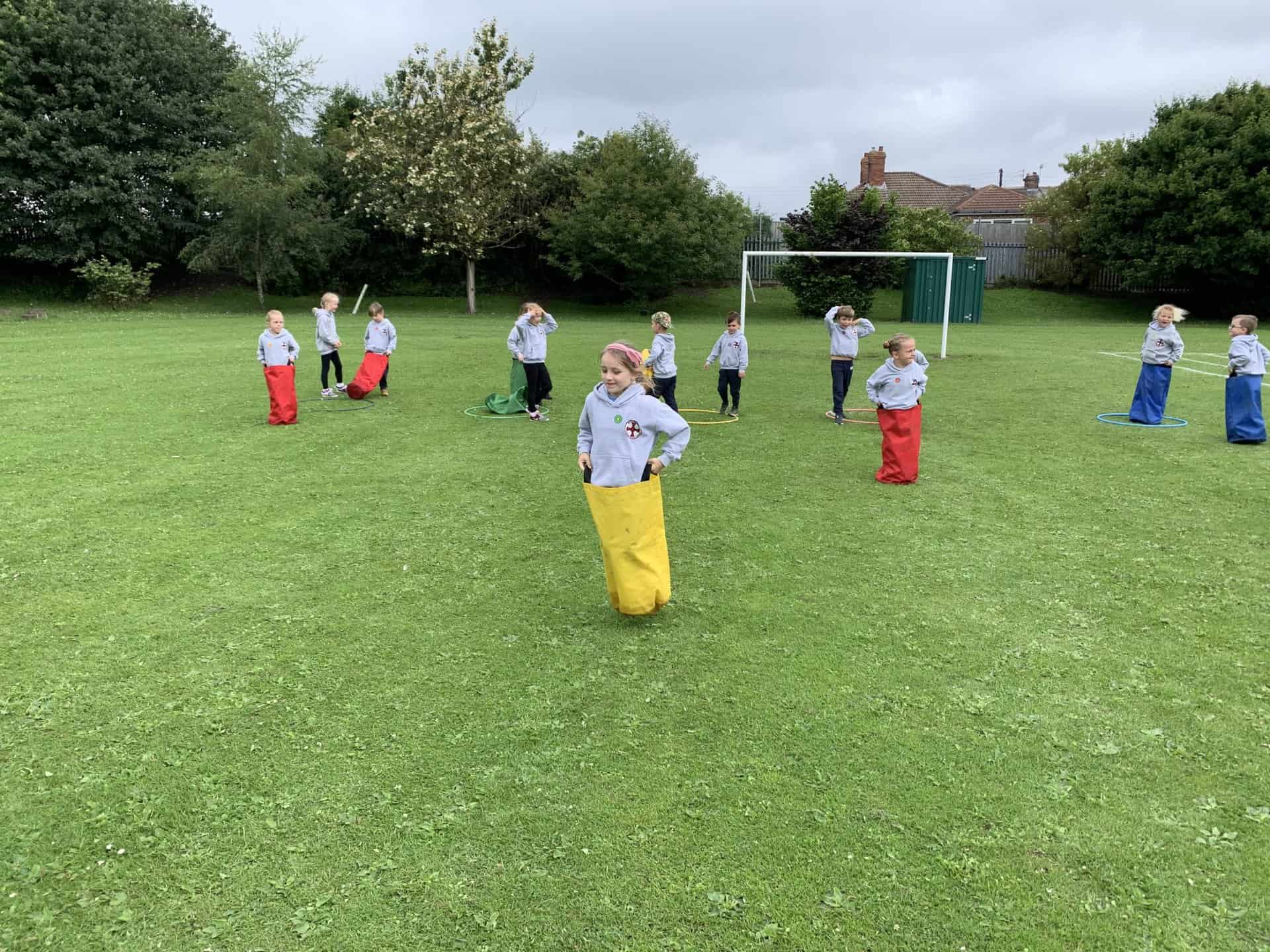 Today Reception Class were showing us what good athletes they were. They took part in an egg and spoon race, sack race, throwing the bean bag and jumping as far as they could. They then used the running track to show how fast they could run. I was so impressed to see how everyone tried their best. Well done Reception Class.