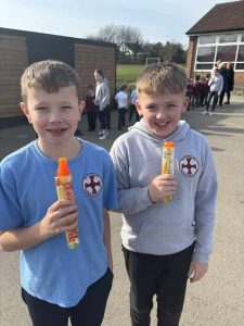 Our Year 5 and Year 6 classes began the day by attending mass in church and singing to celebrate the saint our school is named after.