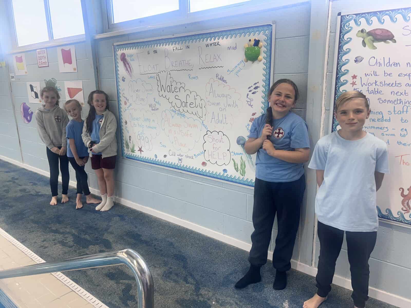 On Monday, year 4 attend their swimming lesson with Catherine. Before leaving, the children explored around the outside of the pool looking at the important information which helps us to stay safe when in water. Catherine gave the children an opportunity to hold and look at some of the equipment used if someone needed saving.
