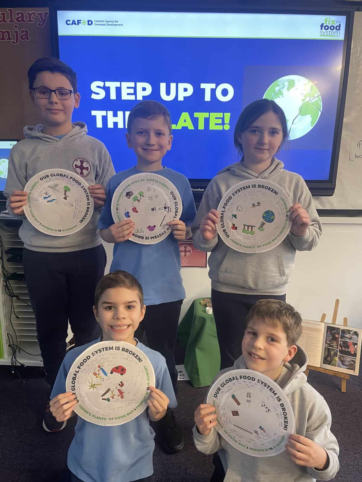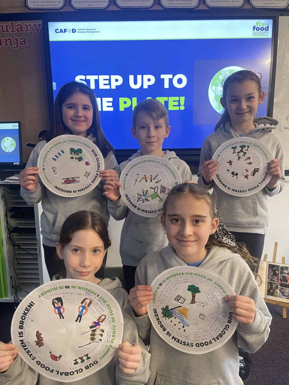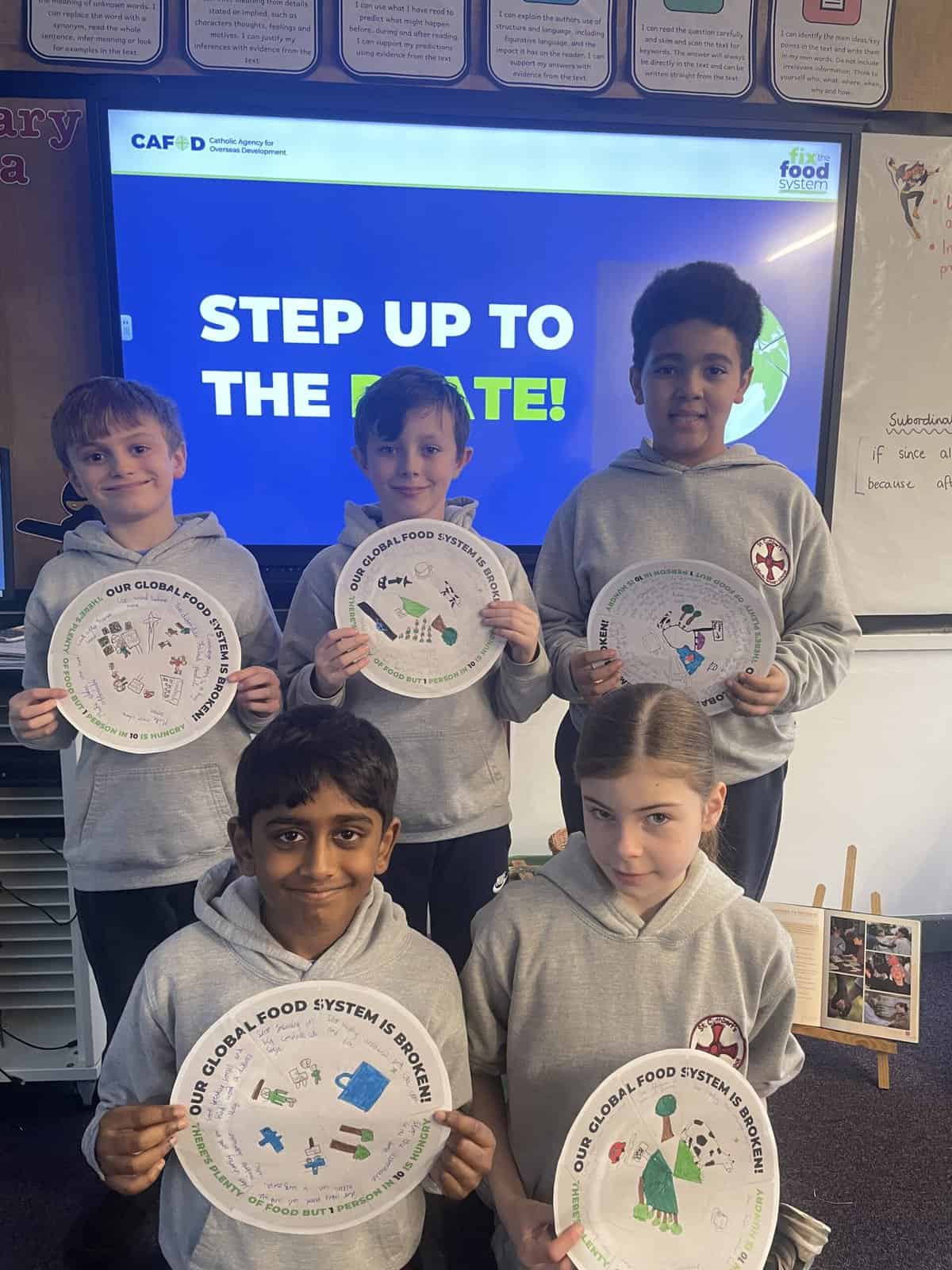 Our brilliant Year 5 children learned all about global food poverty as part of some work about natural resources in geography. Using the CAFOD campaign for inspiration as well as Pope Francis’ Fratelli Tutti message, we thought about how imbalanced our food systems are where so much is wasted but 1 in 10 people go hungry.  Year 5 used their voices to design plates with messages for our government about how they would like to see change and made links between facts in geography, Catholic Social Teaching and UNICEF Rights of the Child.
