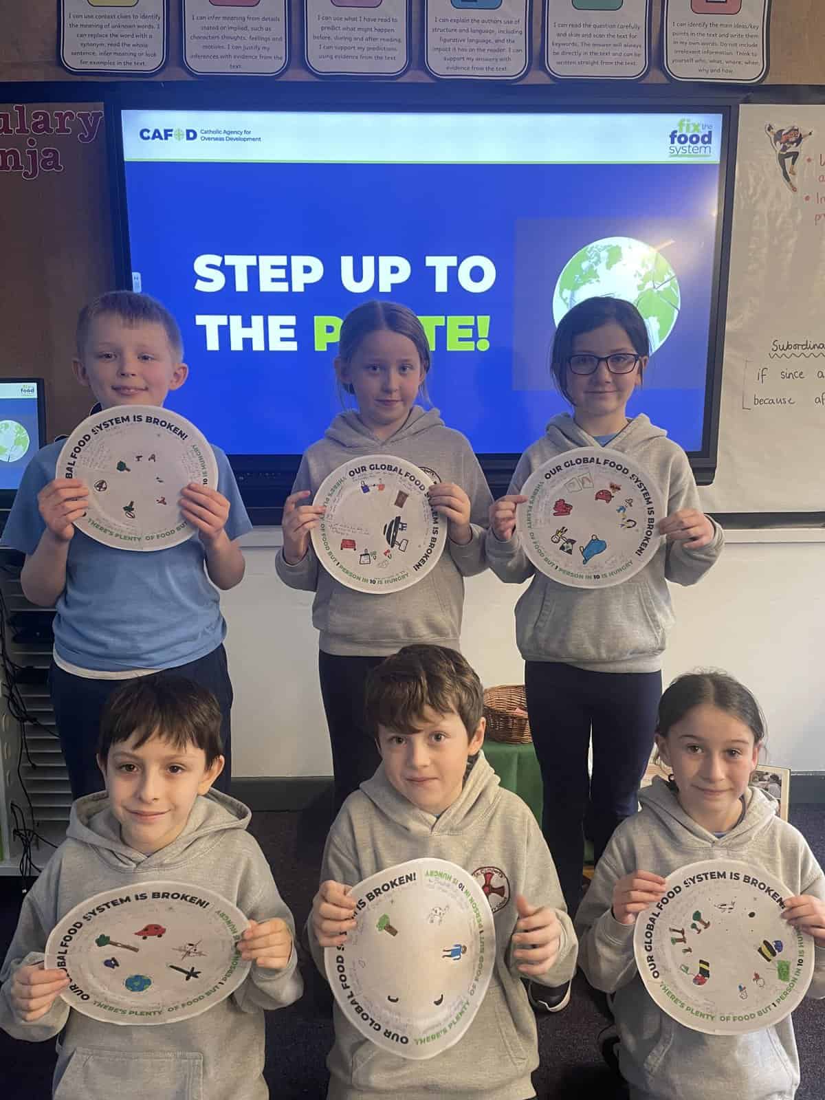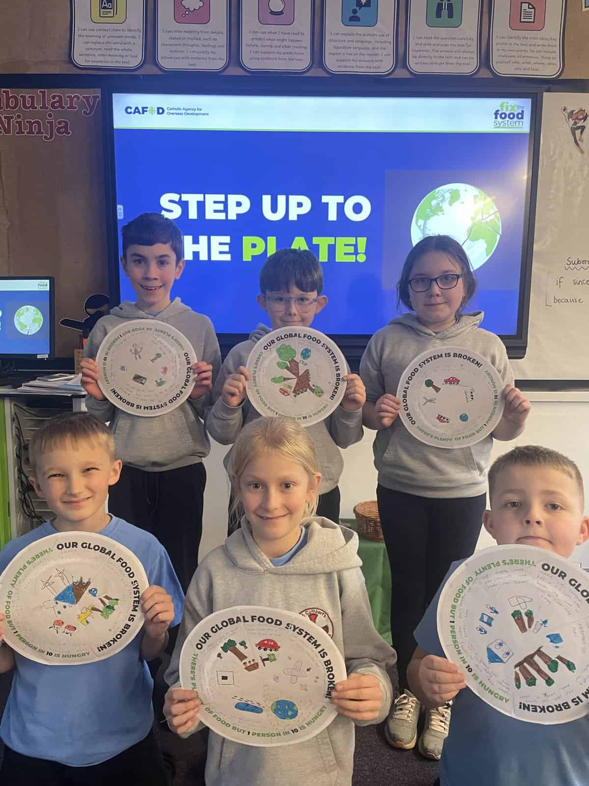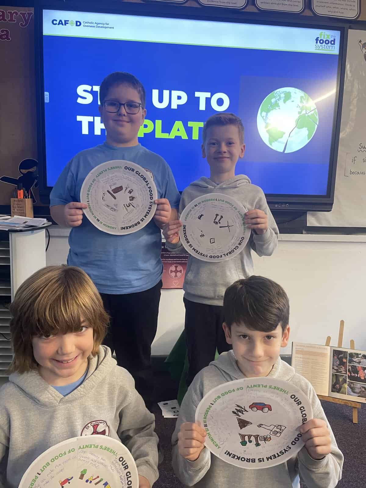 Our brilliant Year 5 children learned all about global food poverty as part of some work about natural resources in geography. Using the CAFOD campaign for inspiration as well as Pope Francis’ Fratelli Tutti message, we thought about how imbalanced our food systems are where so much is wasted but 1 in 10 people go hungry.  Year 5 used their voices to design plates with messages for our government about how they would like to see change and made links between facts in geography, Catholic Social Teaching and UNICEF Rights of the Child.