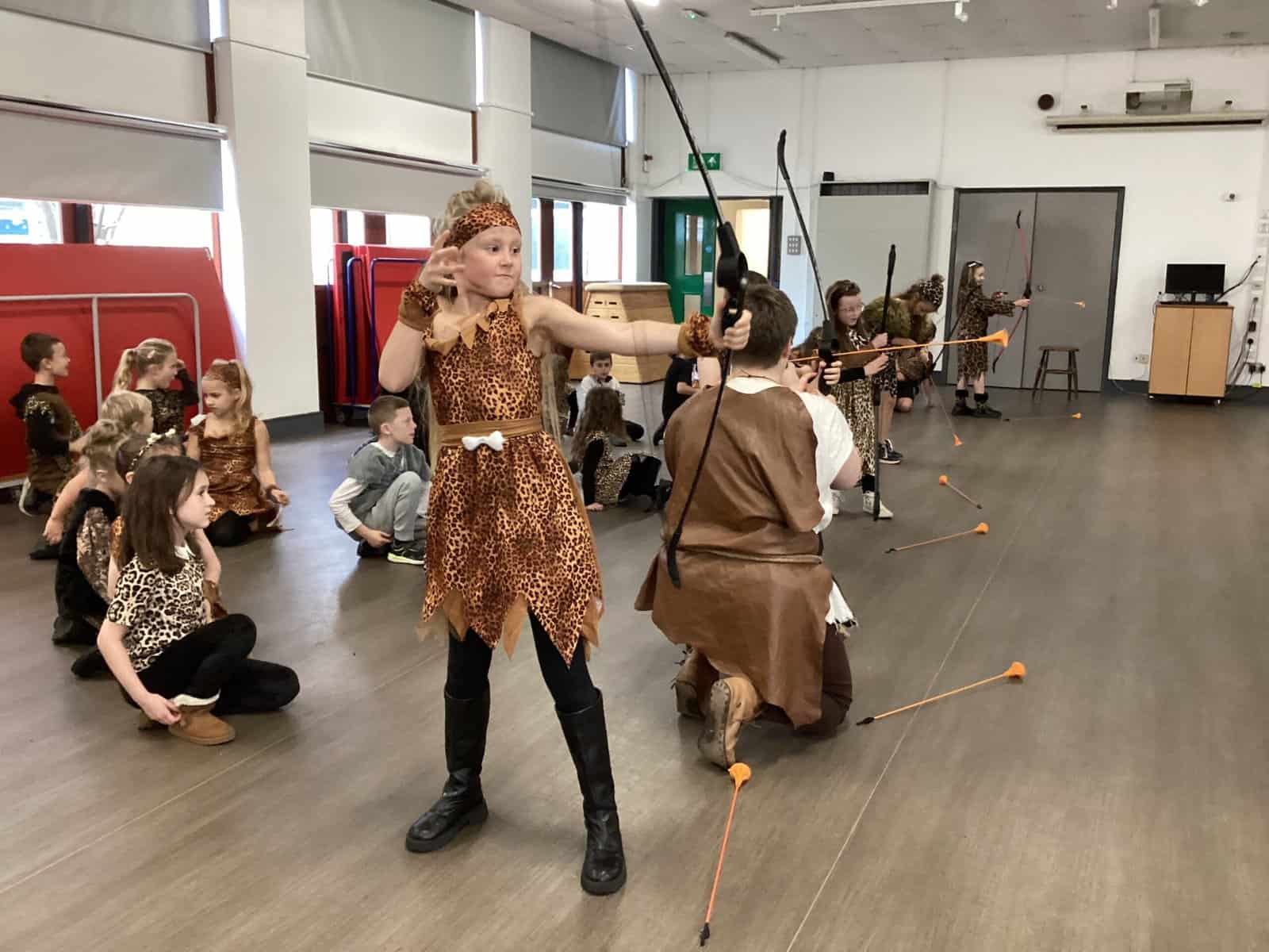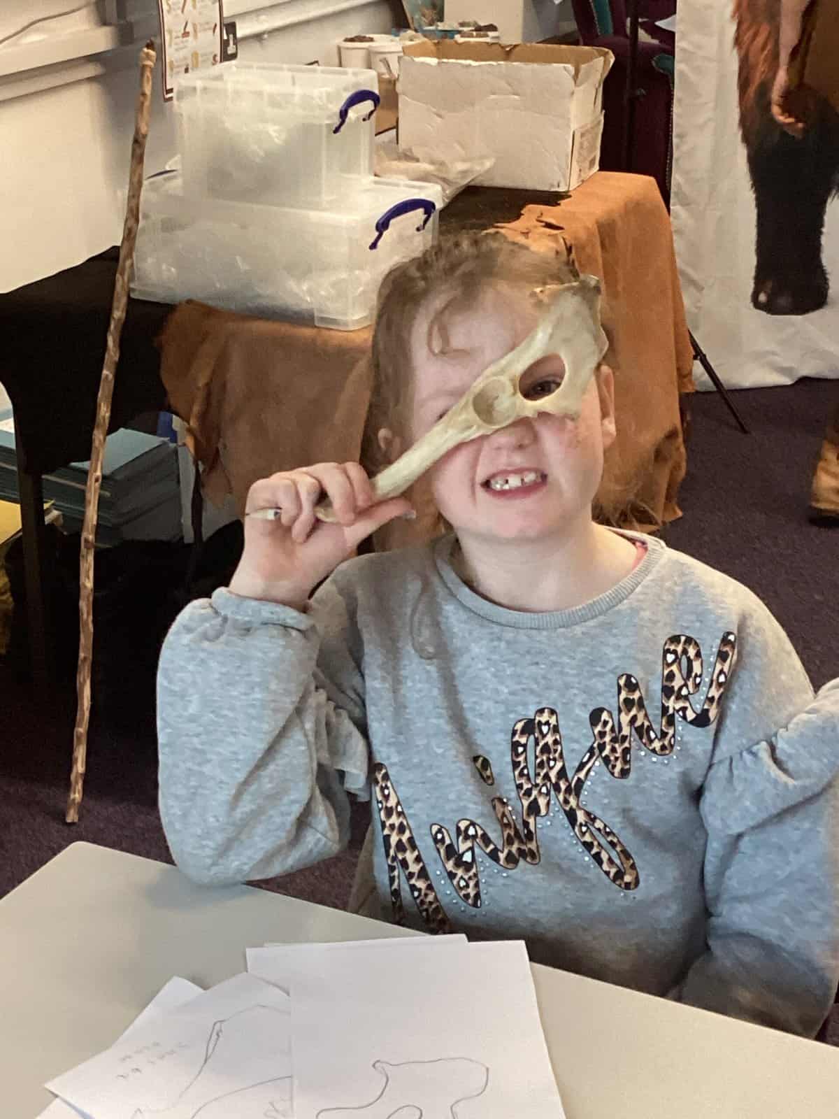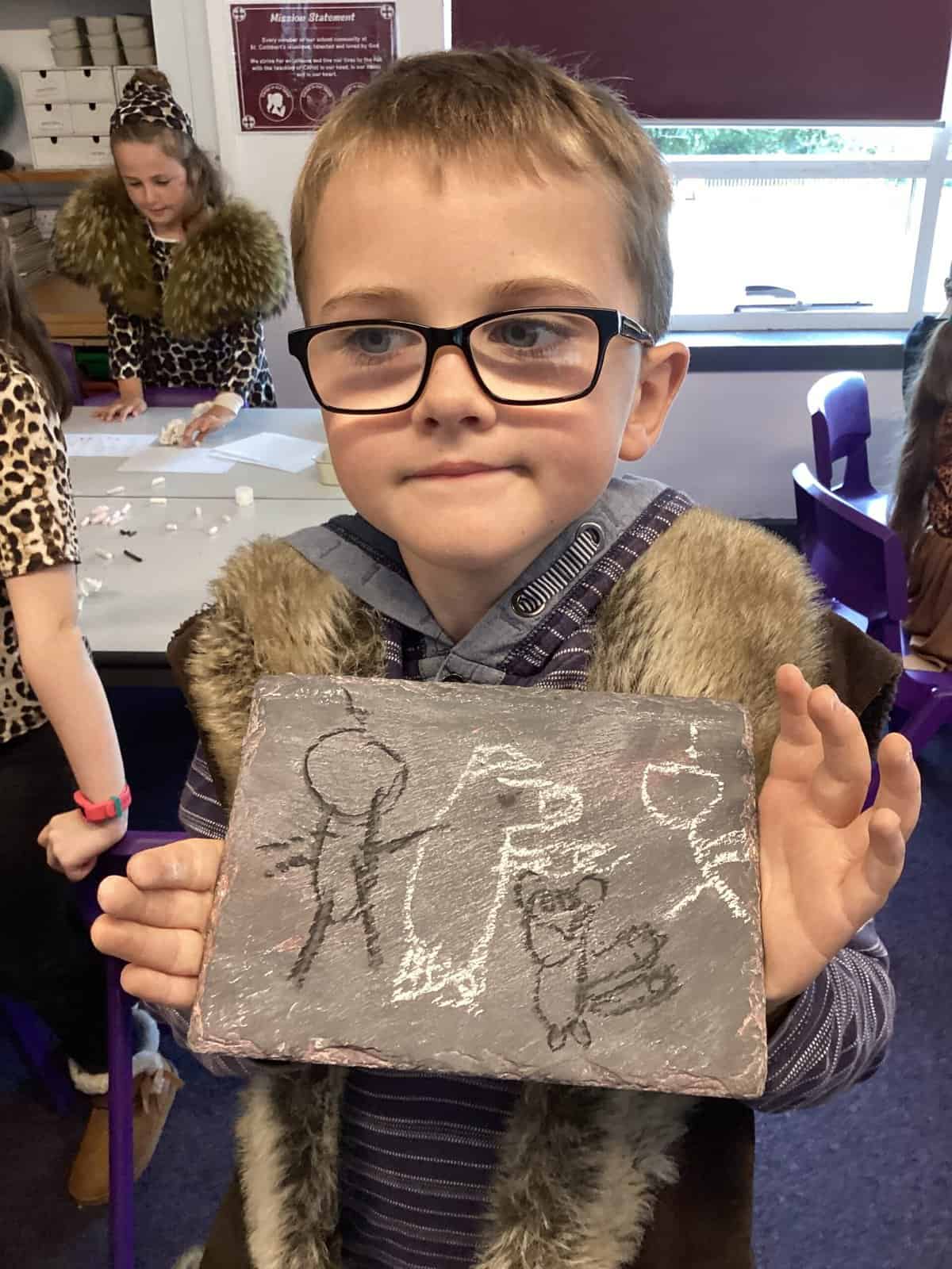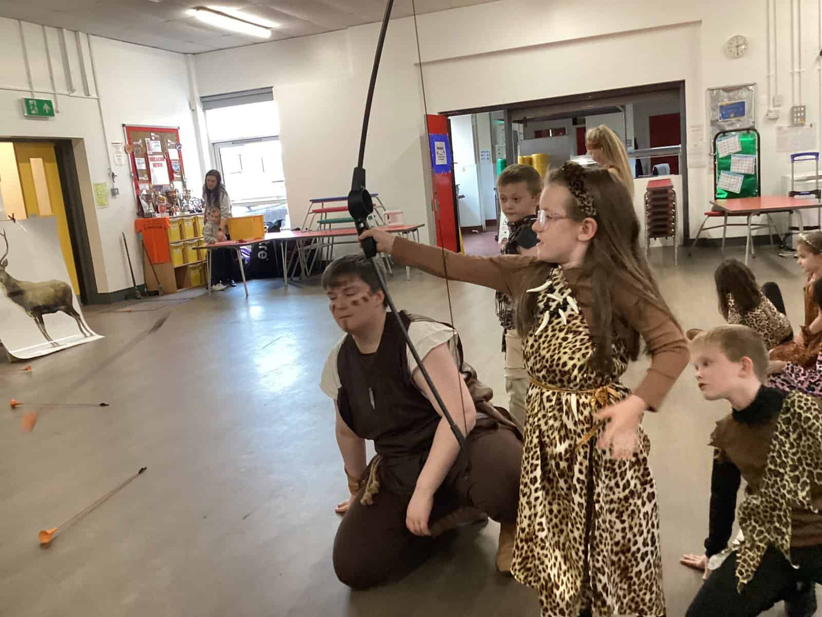 Stevie a person from the Stone Age came to work with us today. We learnt lots of facts about how humans evolved over time. We were able to handle a variety of animal skins and bones that would have been around and think of how we could use them to help us survive. As this historical period is prehistoric we also looked at cave paintings and used chalk and charcoal to create our own. At the end of the day we used some bow and arrows to hunt for our food ! We learnt so much at the same time as having lots of fun. Thank you to all of the grown ups for supporting us with the fabulous costumes.