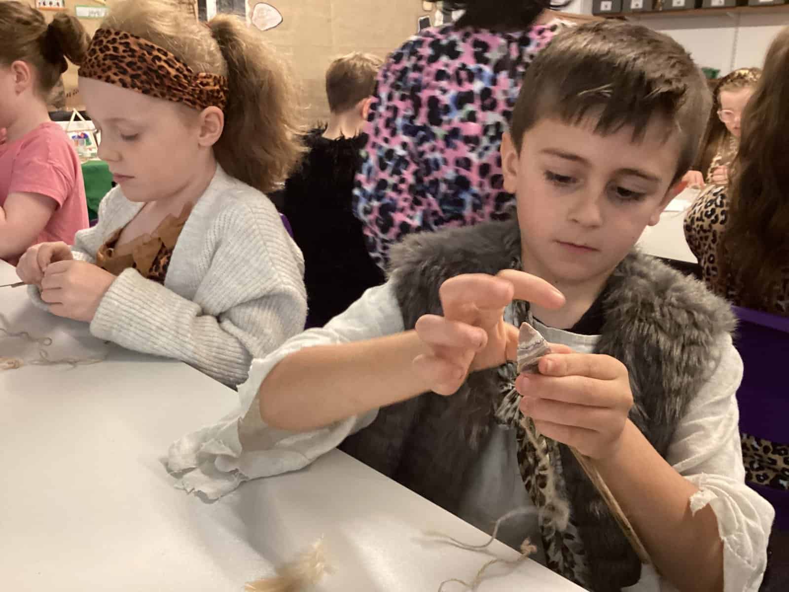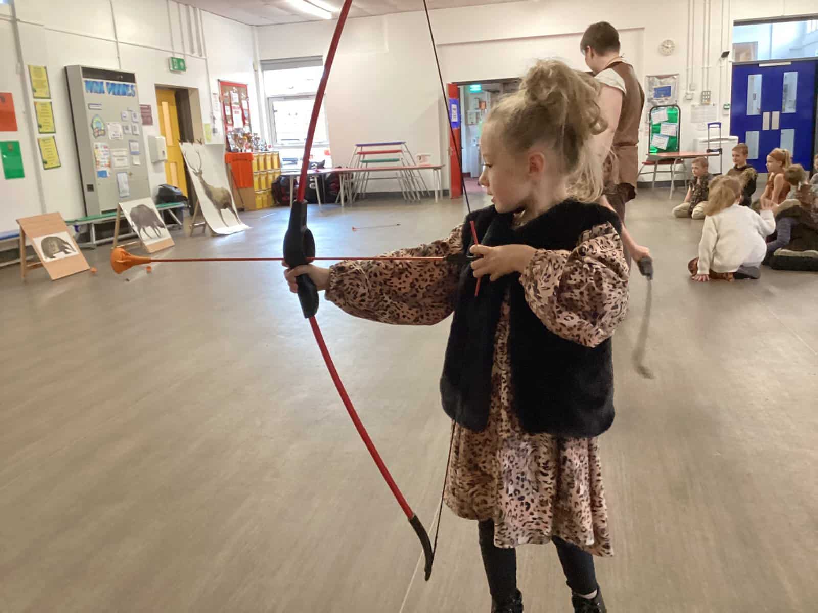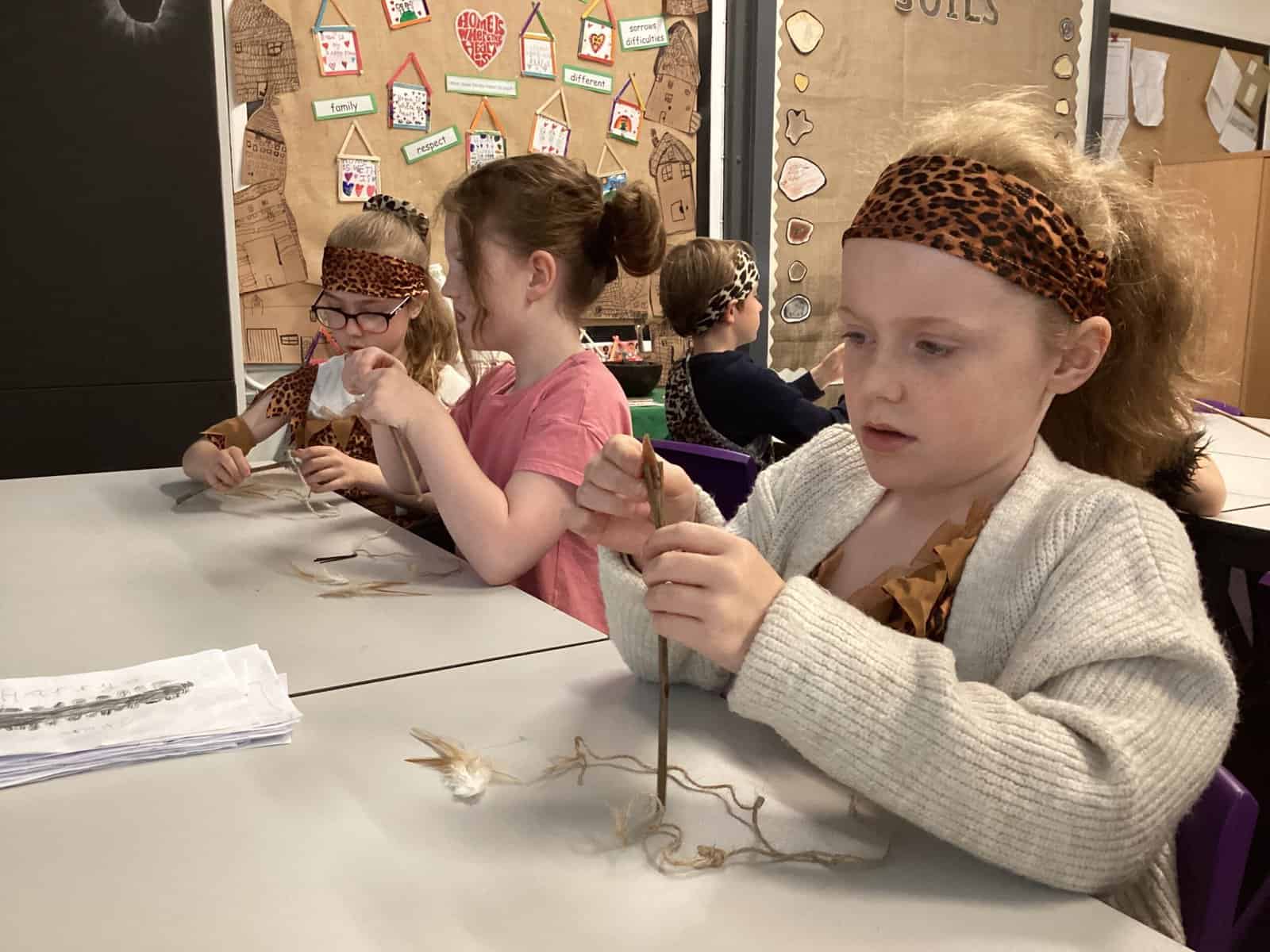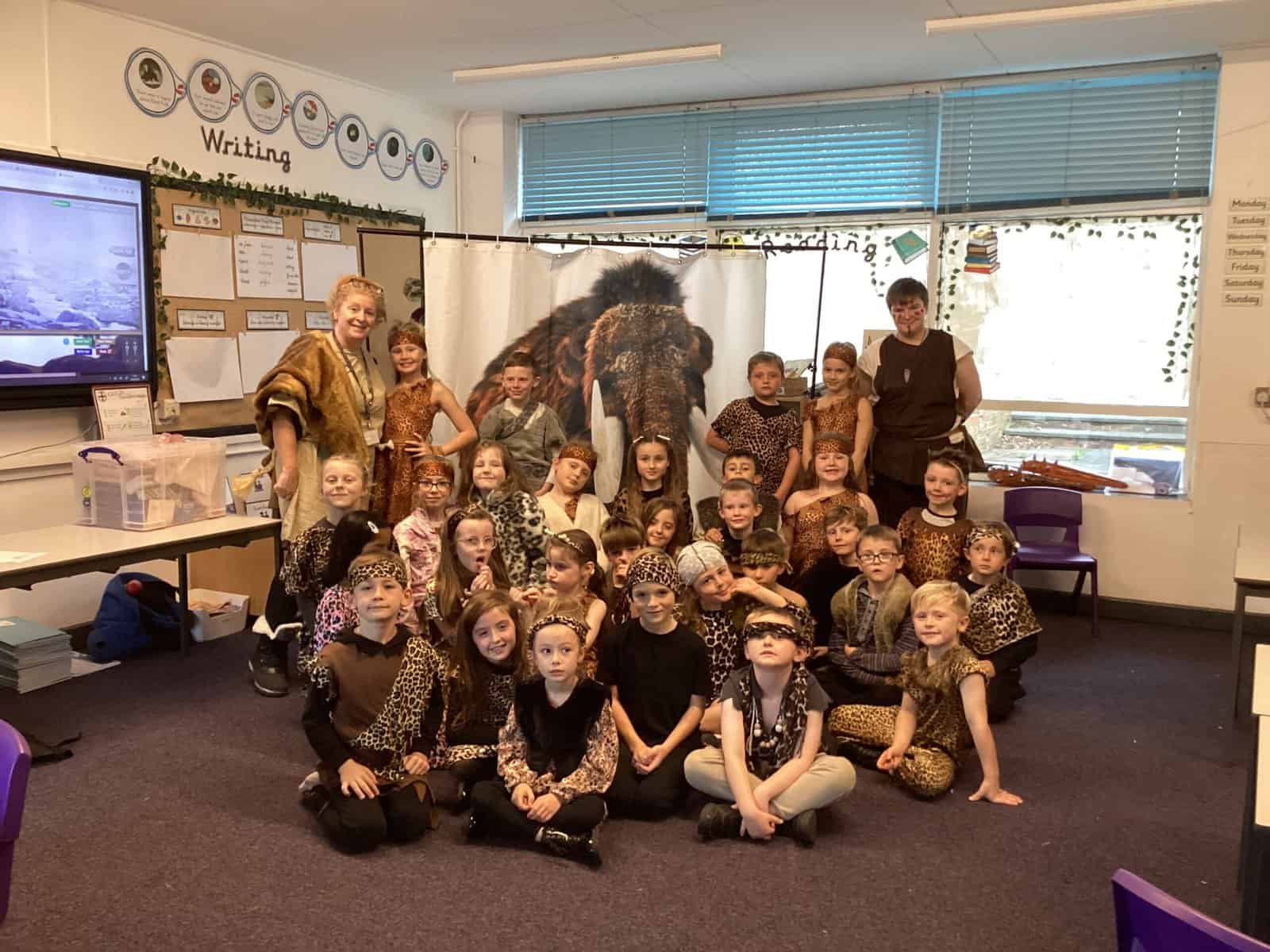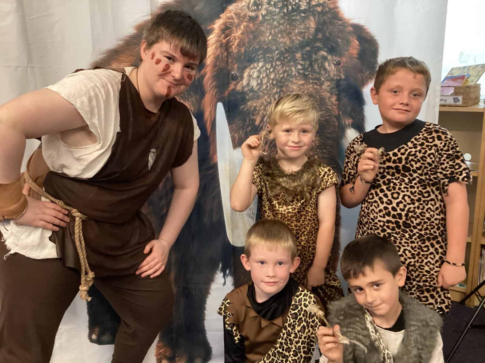 Stevie a person from the Stone Age came to work with us today. We learnt lots of facts about how humans evolved over time. We were able to handle a variety of animal skins and bones that would have been around and think of how we could use them to help us survive. As this historical period is prehistoric we also looked at cave paintings and used chalk and charcoal to create our own. At the end of the day we used some bow and arrows to hunt for our food ! We learnt so much at the same time as having lots of fun. Thank you to all of the grown ups for supporting us with the fabulous costumes.