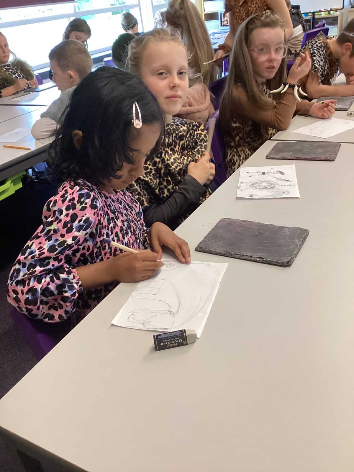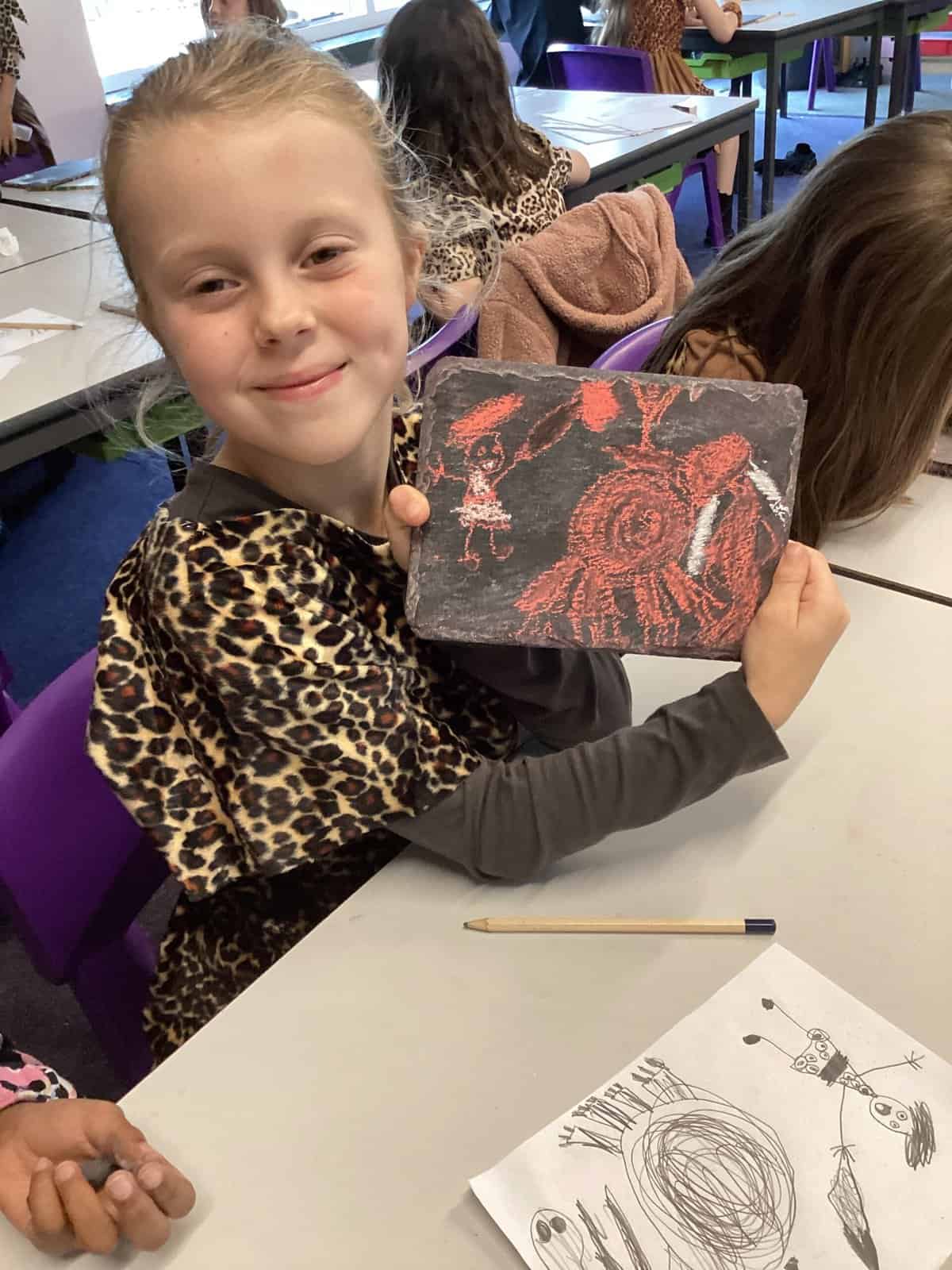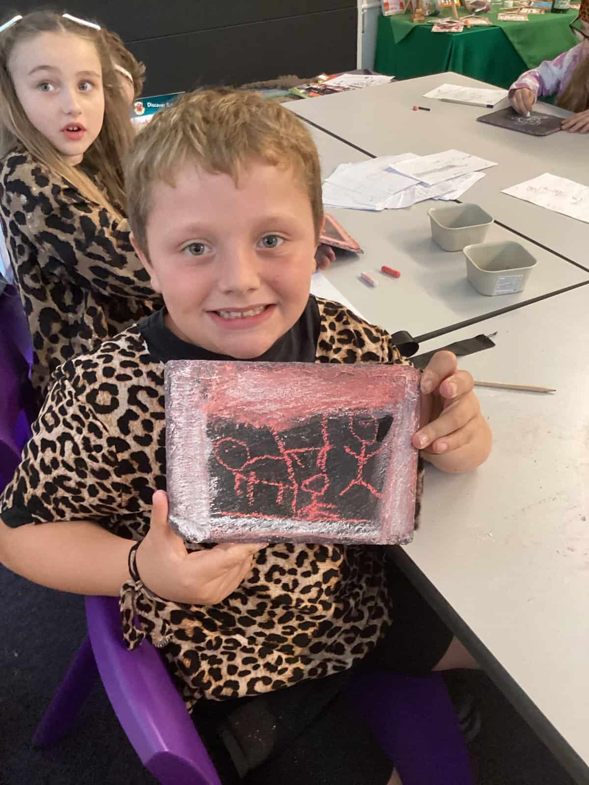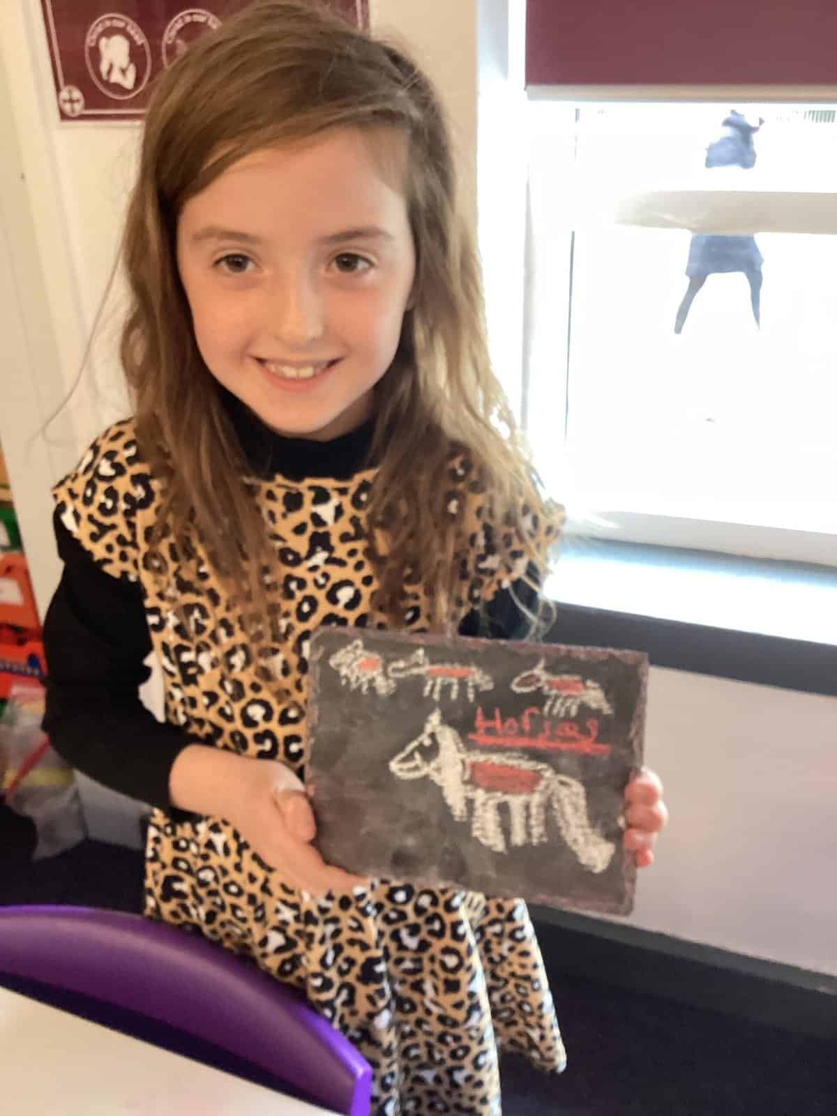 Stevie a person from the Stone Age came to work with us today. We learnt lots of facts about how humans evolved over time. We were able to handle a variety of animal skins and bones that would have been around and think of how we could use them to help us survive. As this historical period is prehistoric we also looked at cave paintings and used chalk and charcoal to create our own. At the end of the day we used some bow and arrows to hunt for our food ! We learnt so much at the same time as having lots of fun. Thank you to all of the grown ups for supporting us with the fabulous costumes.