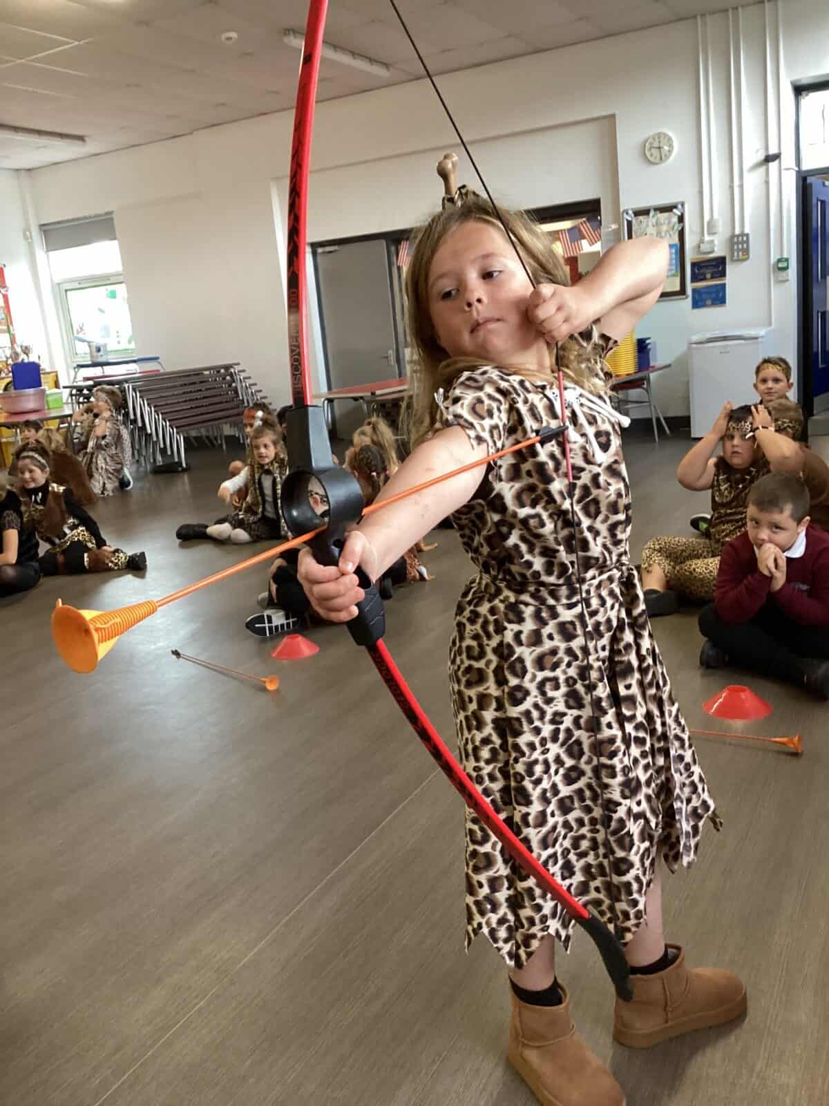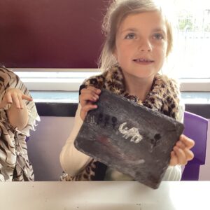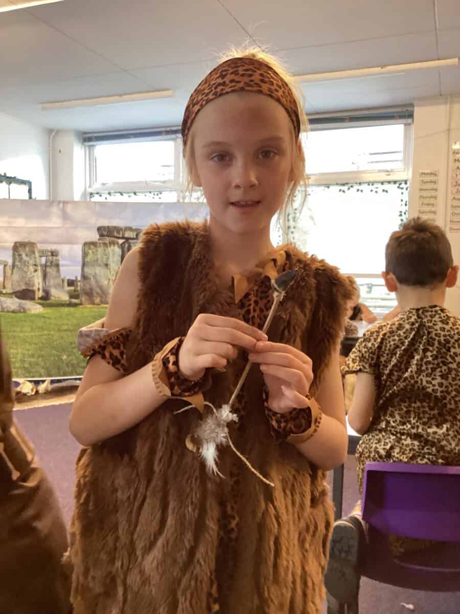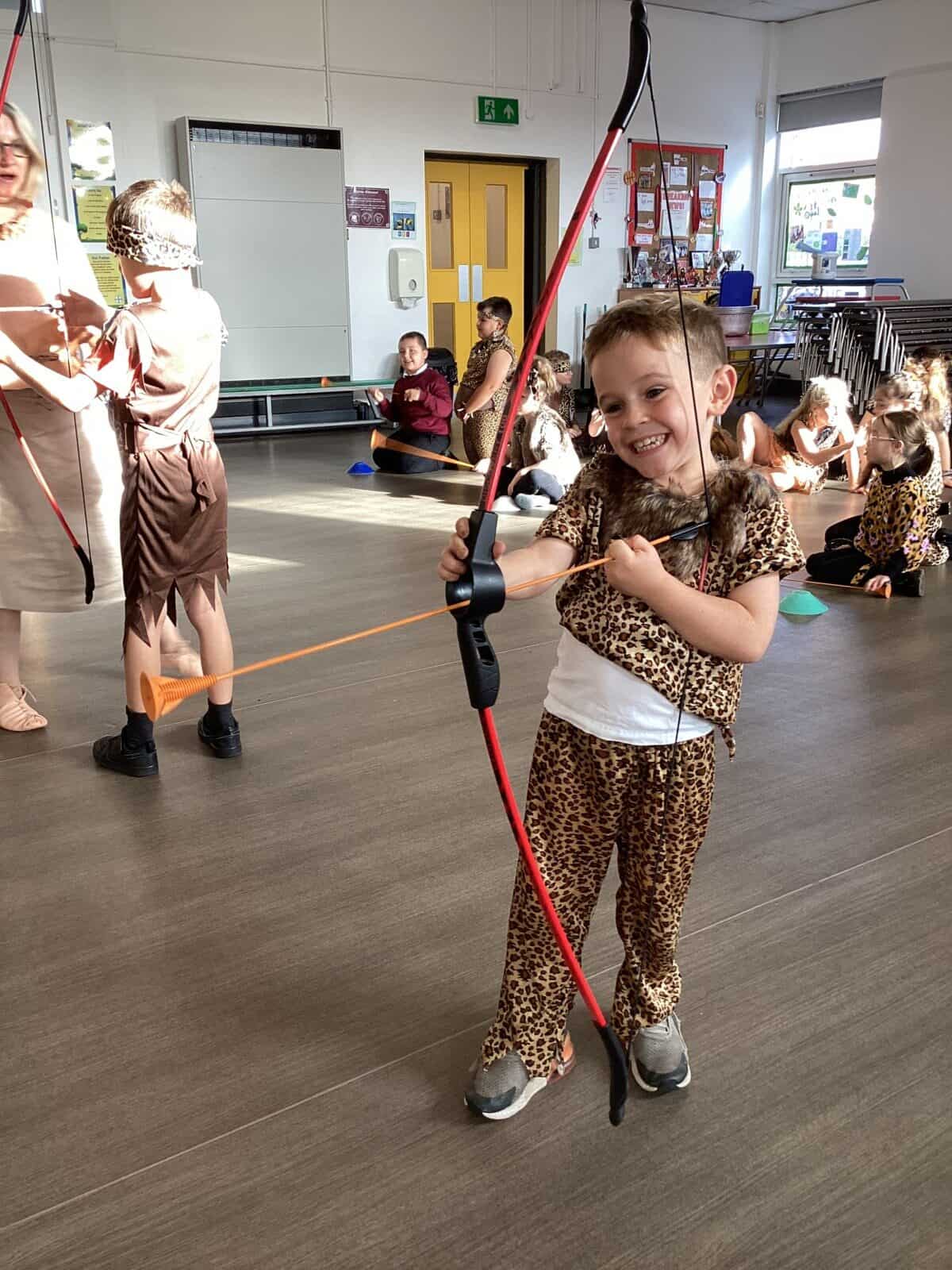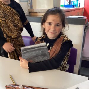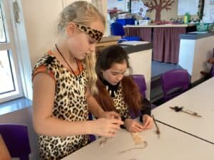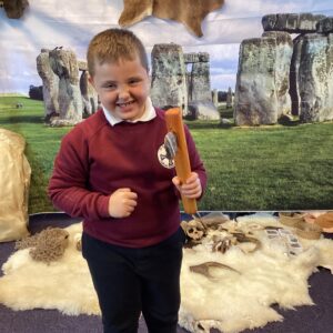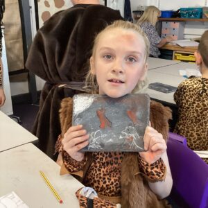 It was Stone Age day today in Year 3. We arrived to find a visitor in our classroom who showed us what life was like in Stone Age times. We learnt how to use a bow and arrow so we could catch animals to eat. Cave paintings showed us what life was like. We tried to create our own cave paintings using chalk and charcoal. Spears were also used to hunt so we learnt how to make our own spears using a stick, feathers string and a spear head. Thank you Jane for such a fun day and well done Year 3 you worked so hard.
