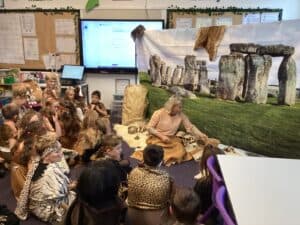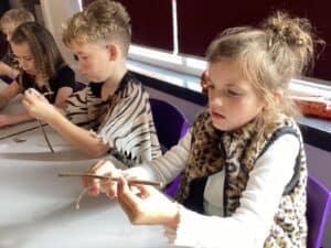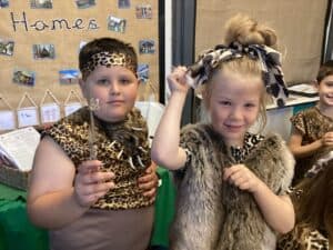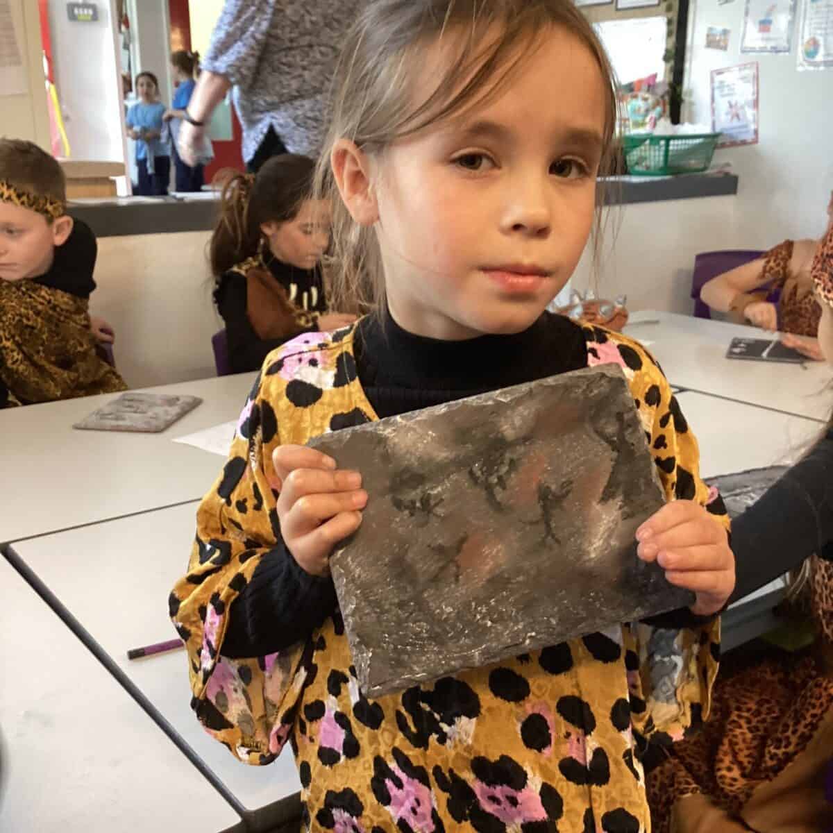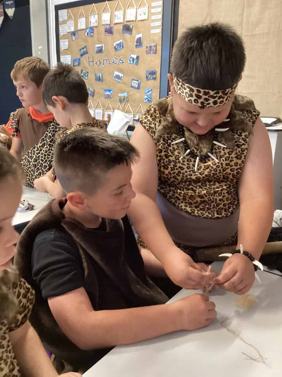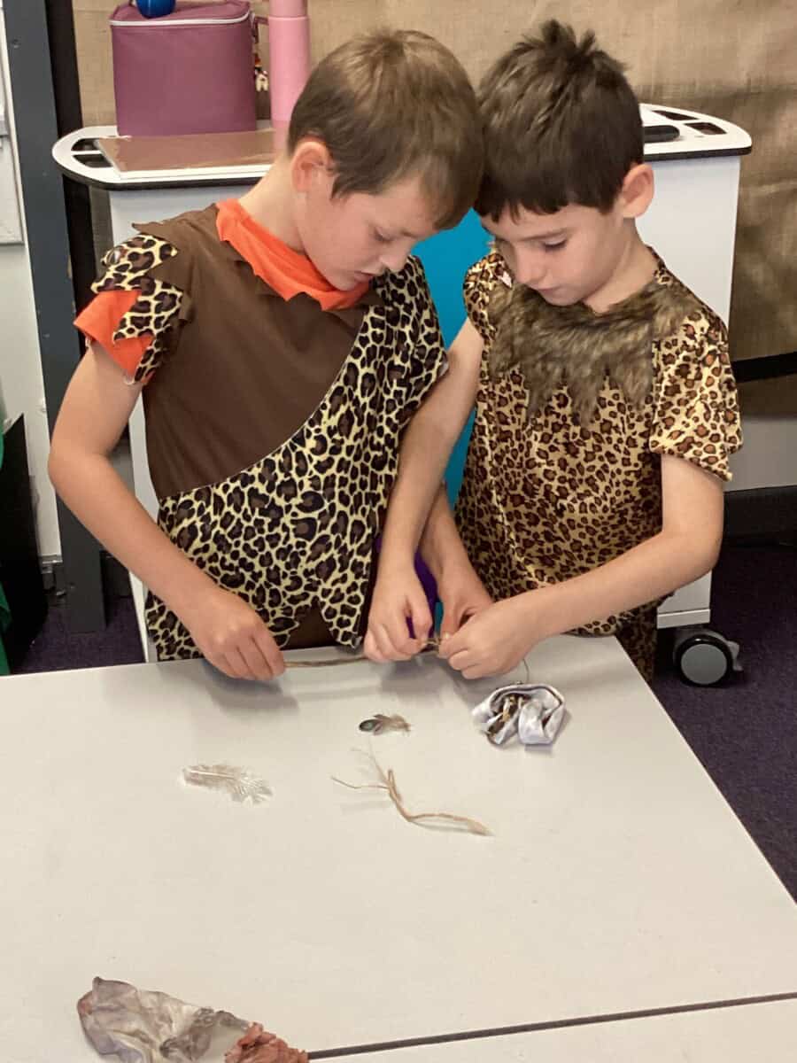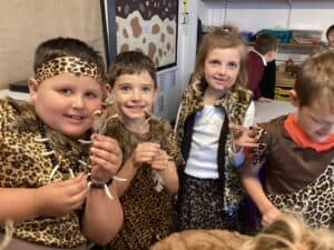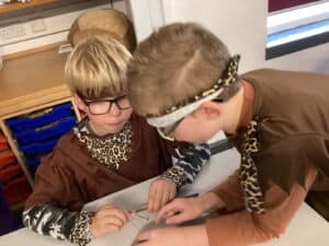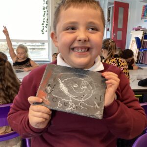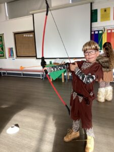 It was Stone Age day today in Year 3. We arrived to find a visitor in our classroom who showed us what life was like in Stone Age times. We learnt how to use a bow and arrow so we could catch animals to eat. Cave paintings showed us what life was like. We tried to create our own cave paintings using chalk and charcoal. Spears were also used to hunt so we learnt how to make our own spears using a stick, feathers string and a spear head. Thank you Jane for such a fun day and well done Year 3 you worked so hard.